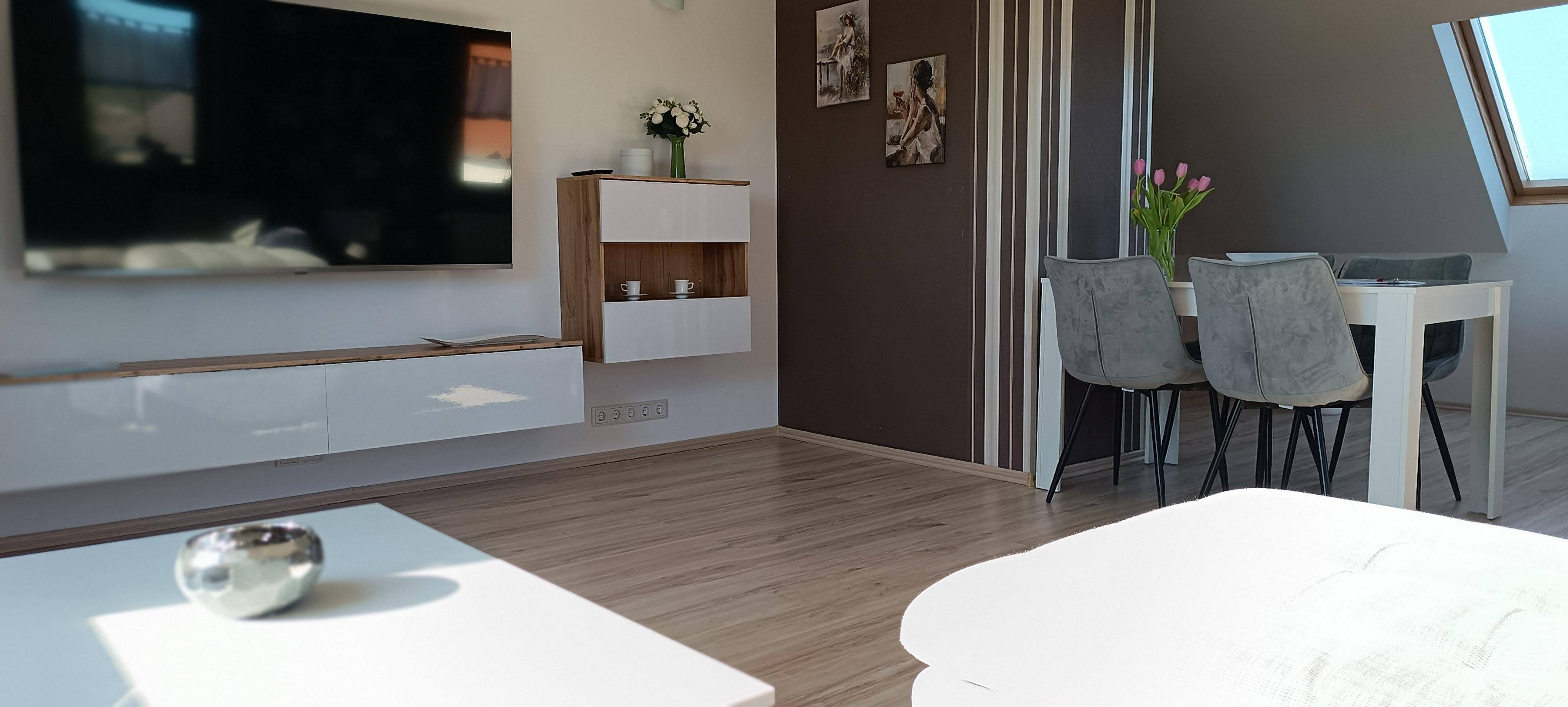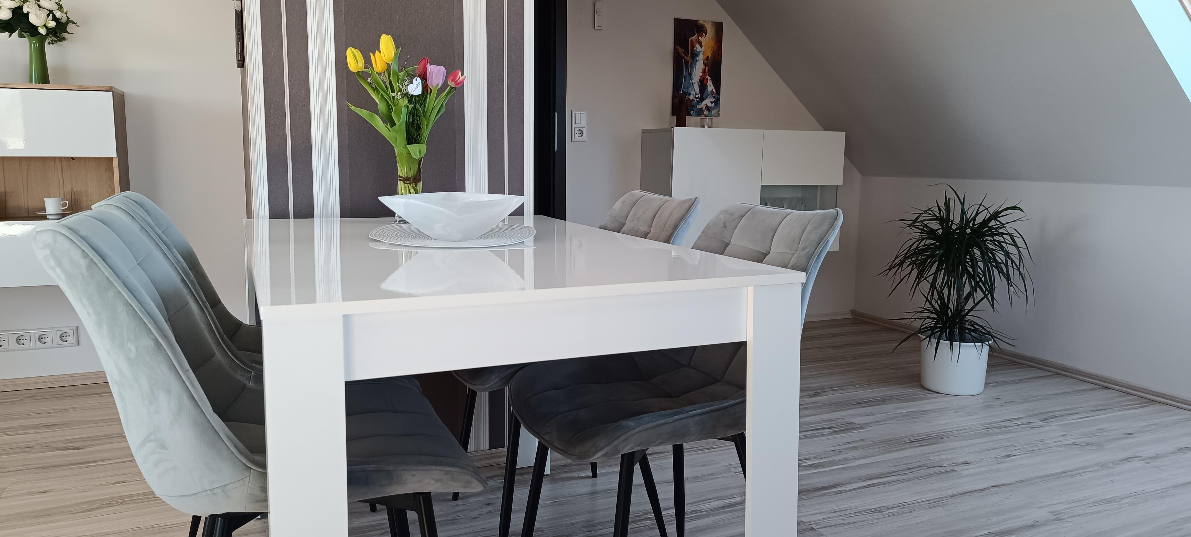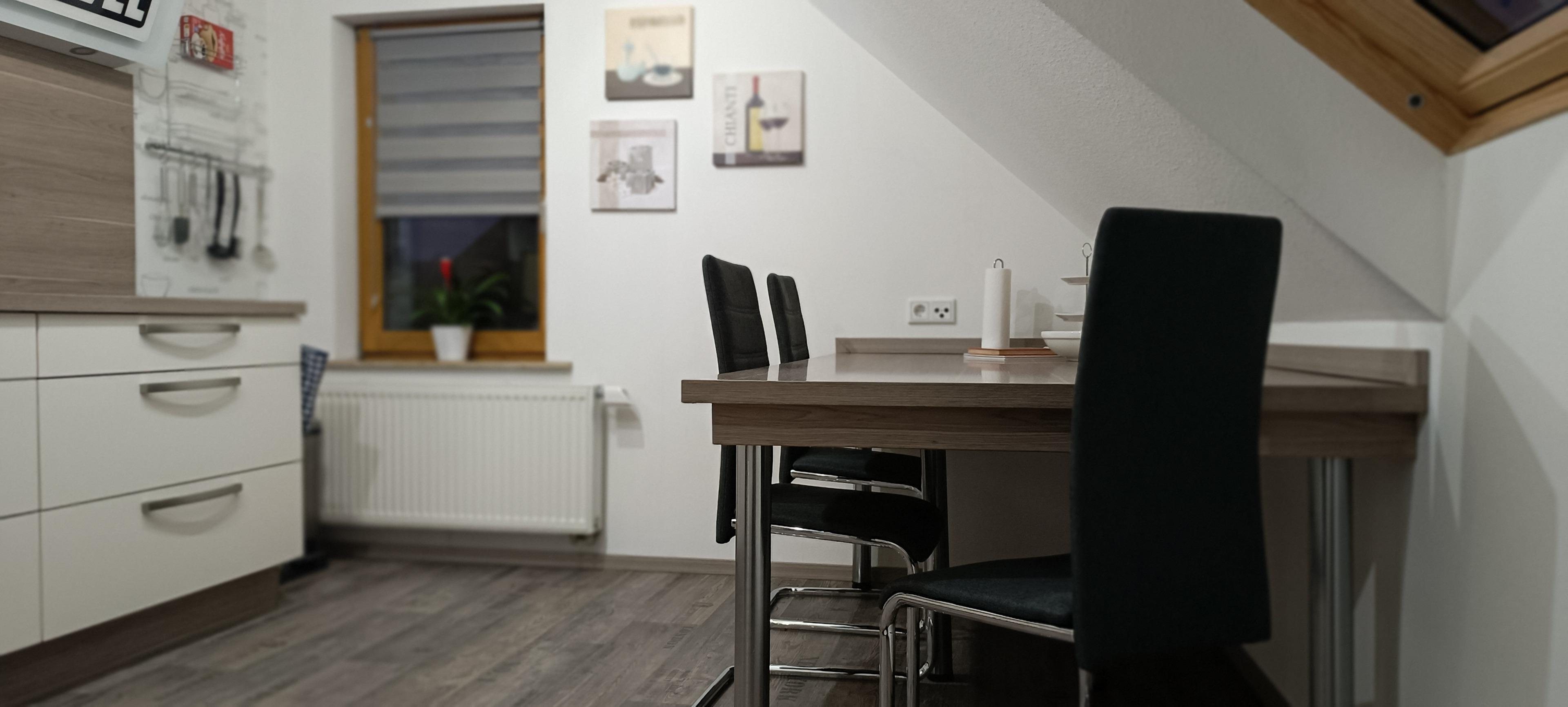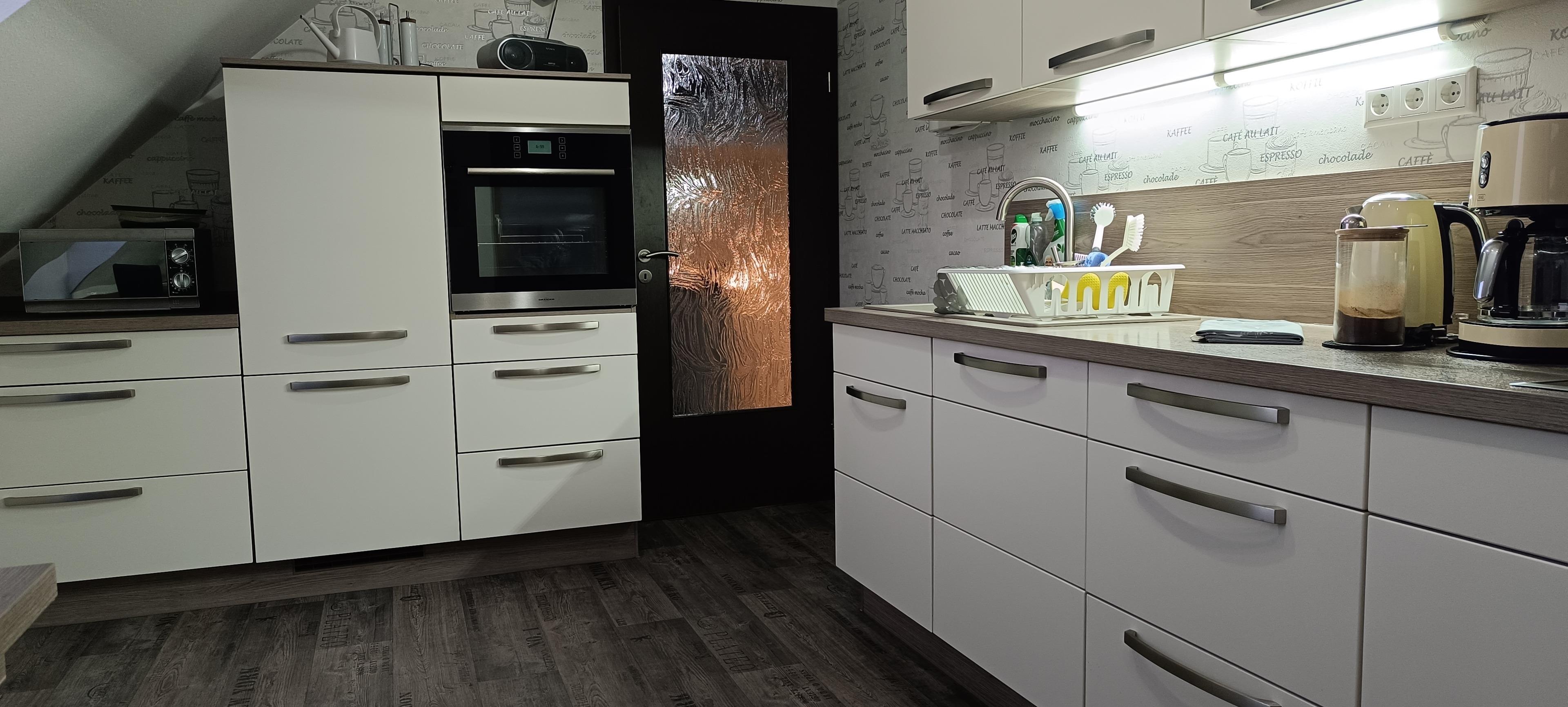Unsere Ferienwohnung mit Klimaanlage liegt direkt am Werratalradweg und befindet sich im Dachgeschoss unseres Wohnhauses. Sie ist für bis zu 4 Erwachsene geeignet. Die Wohnungen ist mit viel Liebe eingerichtet und hat eine Größe von ca 80m.² Die Ferienwohnung verfügt über eine vollausgestattete Einbauküche ( Elektroherd, Backofen, Dunstabzugshaube, Kühlschrank, Geschirrspüler, Kaffeemaschine, Toaster, Wasserkocher, Mikrowelle), einen Wohnraum mit einem Eßplatz für 4 Personen einer Couch mit einer Schlafgelegenheiten für 1 Person. Es gibt ein Schlafzimmer mit Doppelbett und ein weiteres Zimmer mit einem Einzelbett. In der gesamten Wohnung stehen 3 Flachbildfernseher und WLAN zur Verfügung. Das Bad ist mit einer Toilette, einer Dusche und einer Badewanne ausgestattet. Bettwäsche, Geschirrtücher, Handtücher und Badetücher sind vorhanden. Die Endreinigung ist inklusive.
