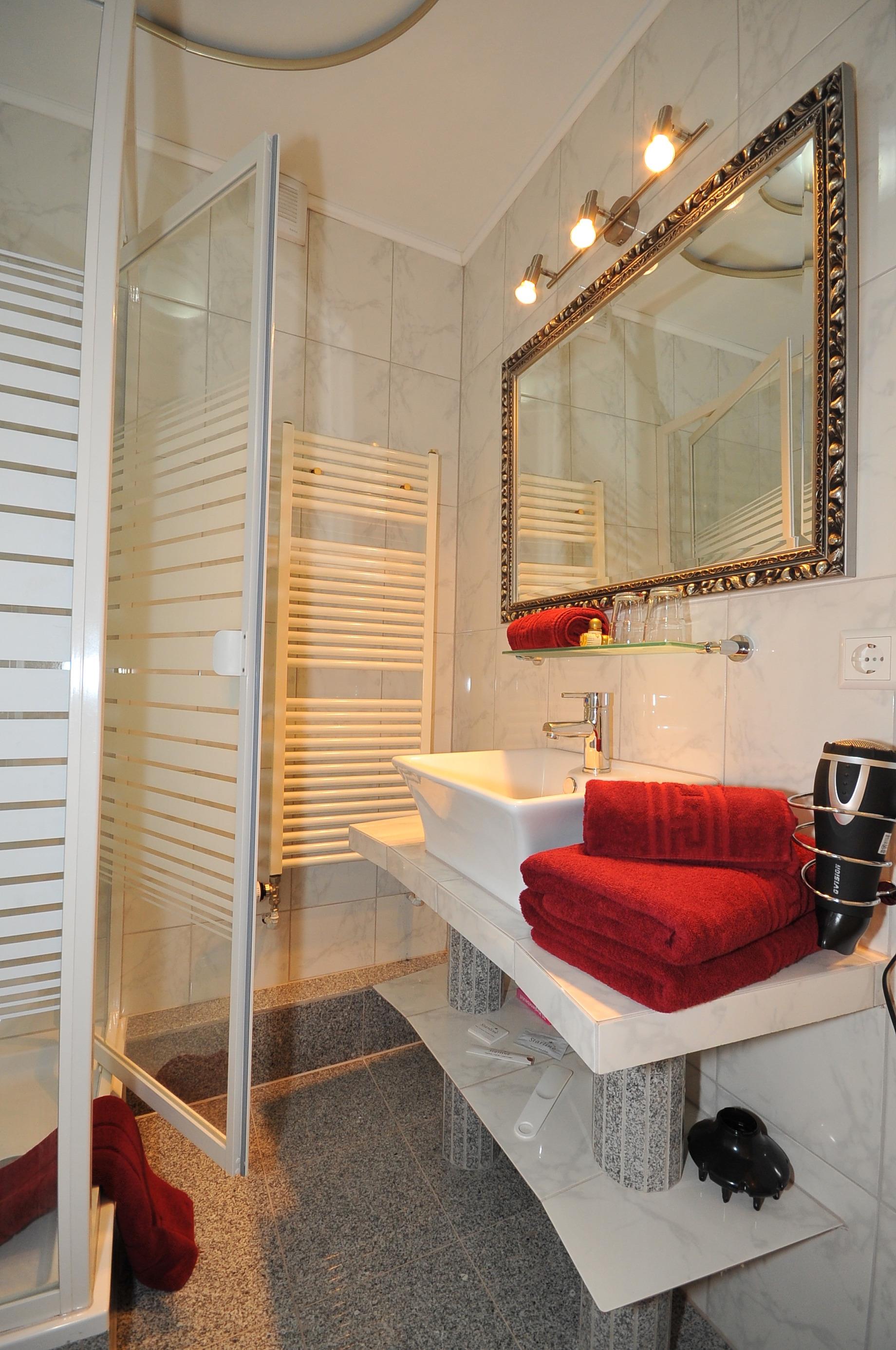 Komfortfaciliteter på badeværelset (hårtørrer, shampoo, hårbalsam, håndsæbe og brusegel)
