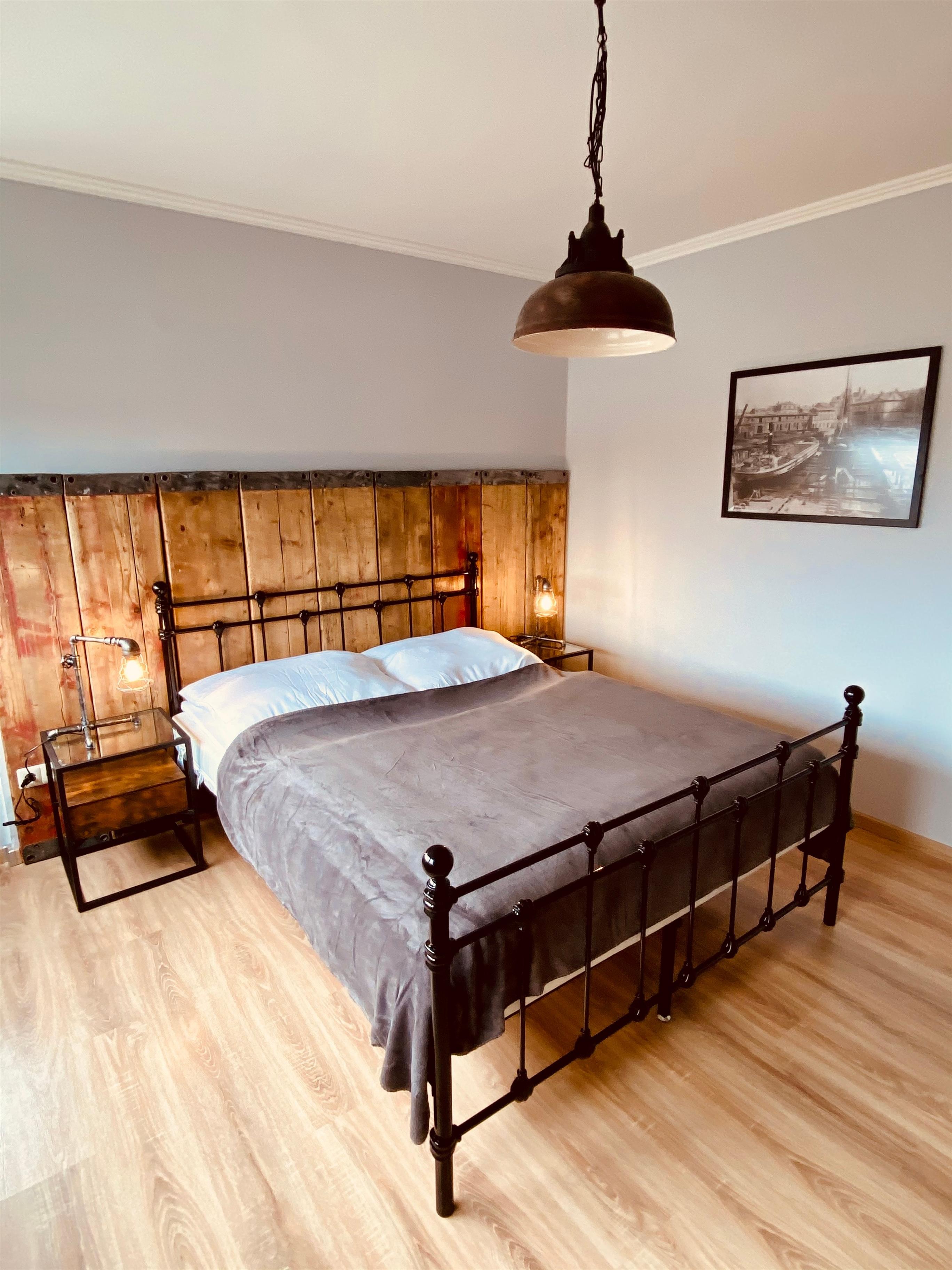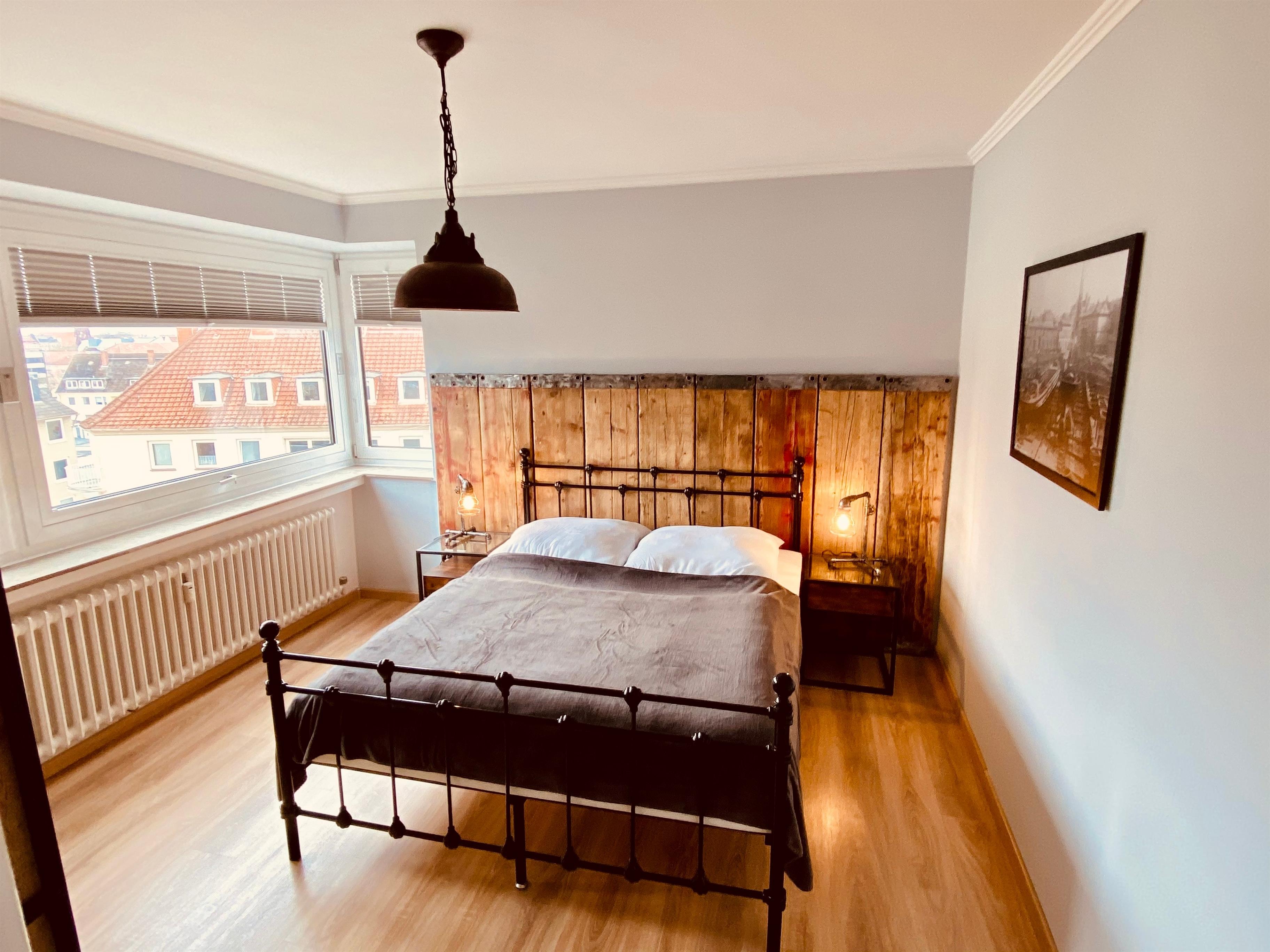 Drei Schlafzimmer bieten bis zu 6 Gästen eine außergewöhnliche Werft-Liegezeit in der Seestadt.