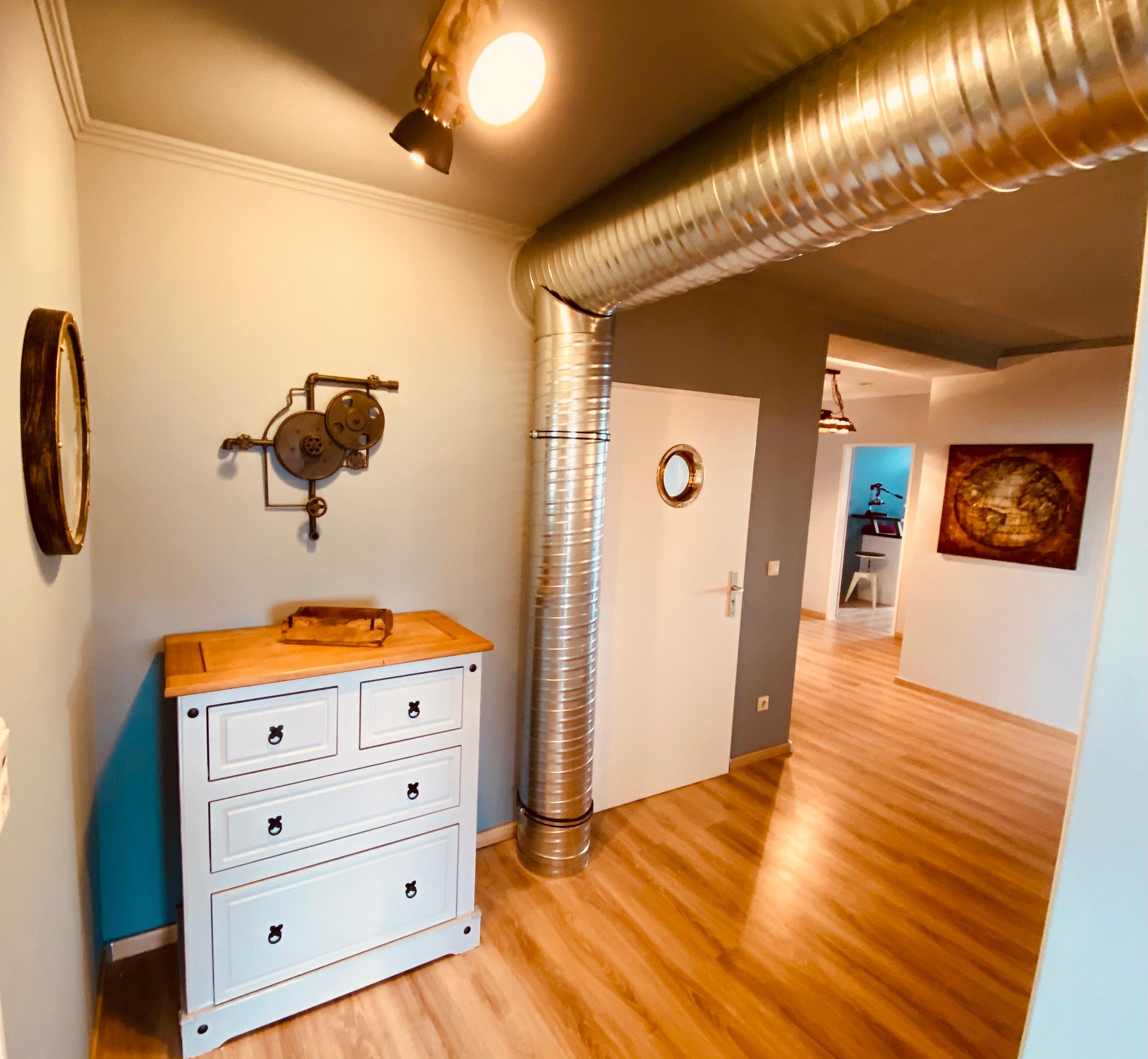 In unserer Themenwohnung RIVER DOCKS erleben Sie alte Bremerhavener Schiffbautradition aus dem 19. Jahrhundert. Natürlich mit dem gewohnt geschmackvollen COAST HOUSE Komfort. Die Ferienwohnung befindet sich im 5. Stock (von 7) der Tecklenborg Apartmentanlage auf dem ehemaligen Gelände der berühmten Tecklenborg Werft.