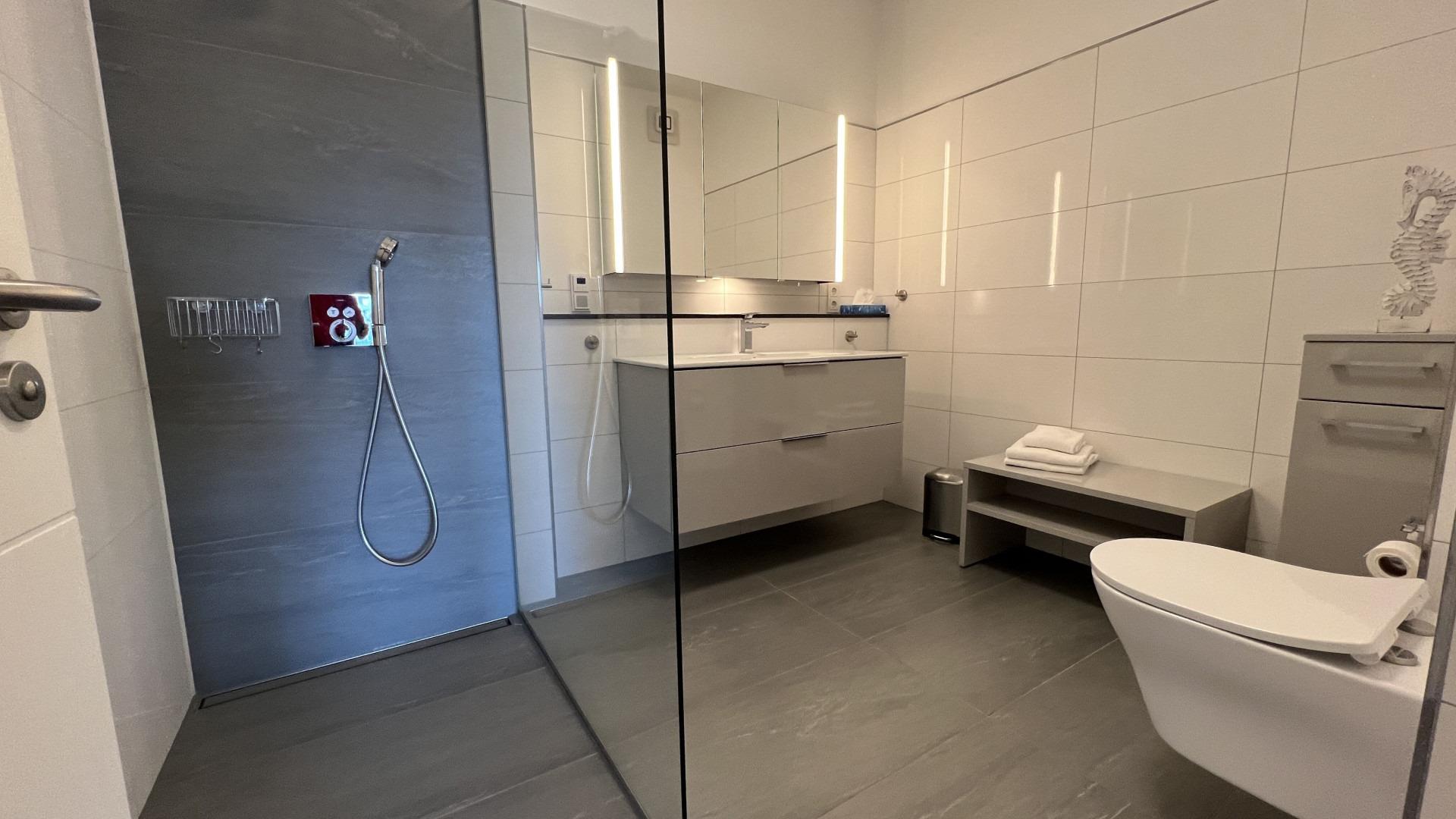 Die Wohnung verfügt über einen kostenpflichtigen Tiefgaragenstellplatz. Der Parkplatz hat eine Überbreite und ist für SUVs geeignet, die Einfahrthöhe beträgt 2 m.