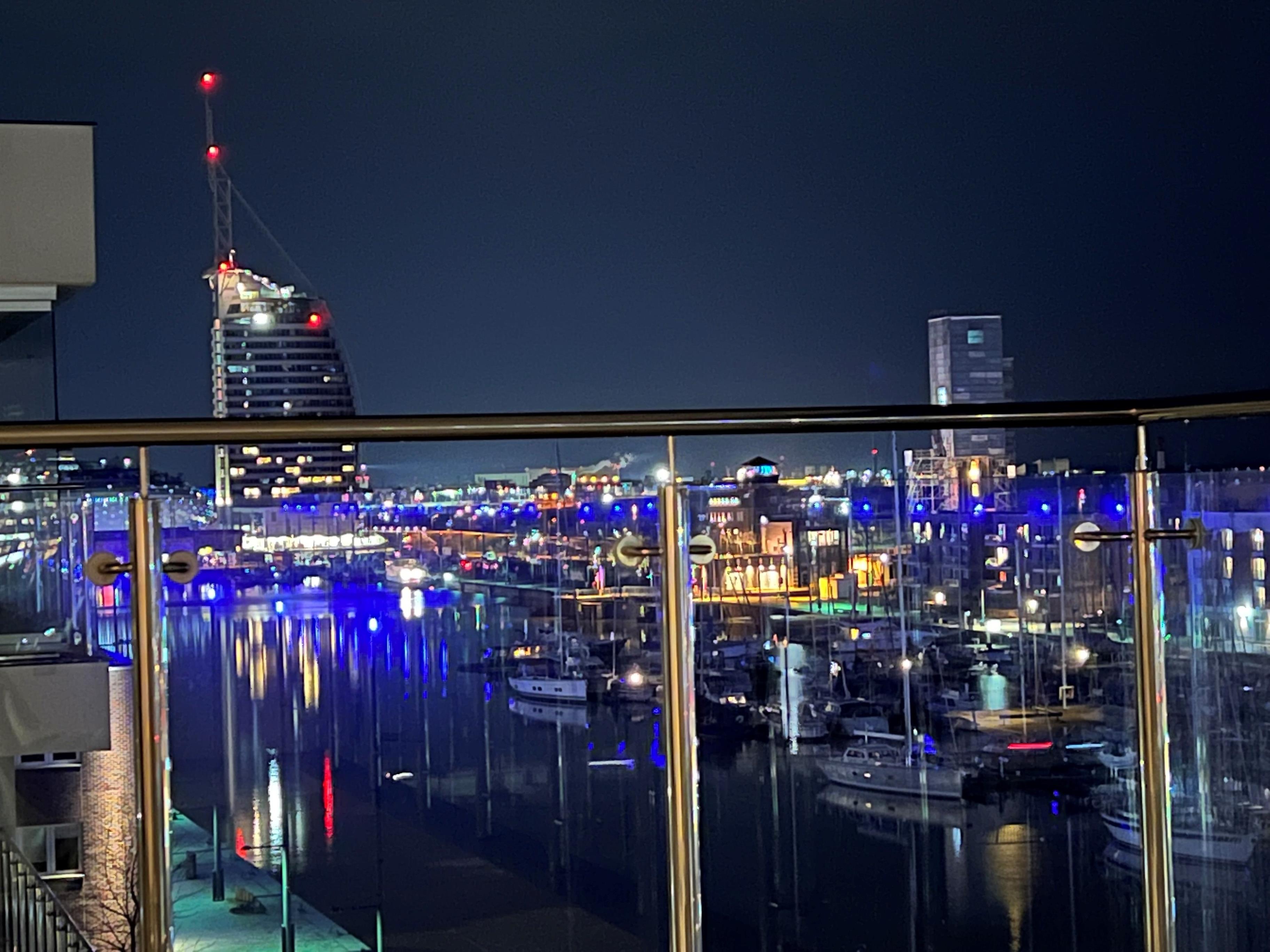 Beobachten Sie das Treiben im Yachthafen, die vorbeifahrenden Ozeanriesen und den spektakulären Blick auf die Havenwelten. Der Hafen und das Klimahaus sind abends beinahe magisch beleuchtet. Genießen Sie vom 30 m2 großen Sonnendeck (umlaufende Balkon-Terrasse) den Sonnenuntergang und den Ausblick auf die riesigen Kreuzfahrtschiffe am nahegelegenen Terminal.