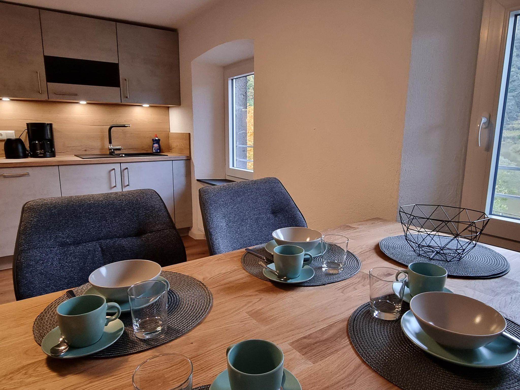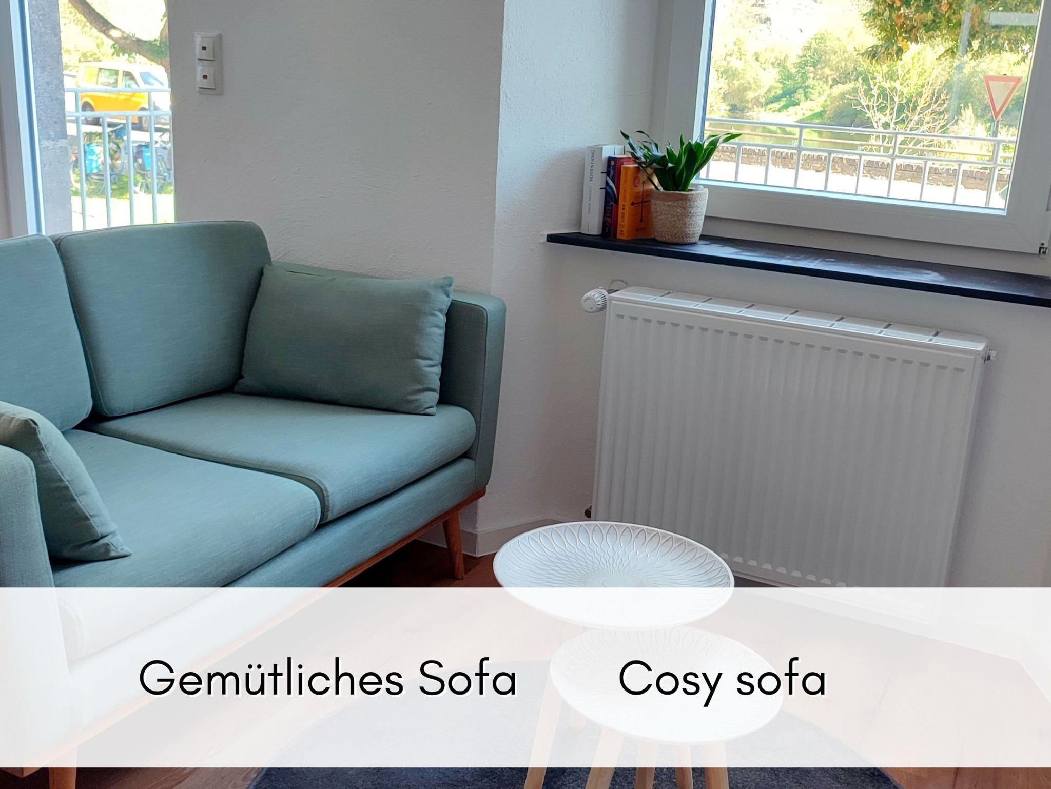 Das Juwel dieses über 200 Jahre alten Anwesens ist zweifelsohne die warme und einladende Atmosphäre, die sich harmonisch mit modernem Komfort und Annehmlichkeiten verbindet. Bei Betreten der Ferienwohnung werden Sie von dem gemütlichen Wohnzimmer empfangen, welches sich nahtlos in eine voll ausgestattete Küche integriert. Hier können Sie kulinarische Köstlichkeiten zubereiten, während Sie die Gesellschaft Ihrer Lieben genießen, die es sich in der gemütlichen Sitzecke bequem gemacht haben.