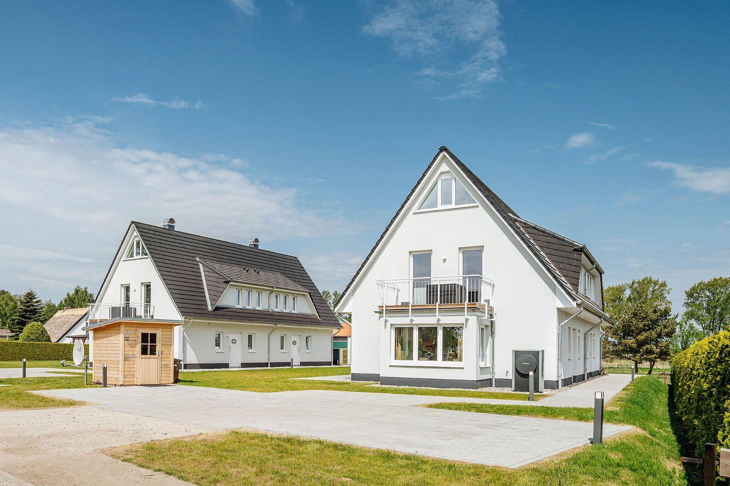 Der Bodden und eine Pferdekoppel sind in Sichtweite, der Strand von Zingst ist nur 5 Kilometer entfernt. Die modern eingerichtete und gut ausgestattete Doppelhaushälfte, Baujahr 2023, liegt direkt am Nationalpark Vorpommersche Boddenlandschaft. Das Herz des Hauses ist ein sehr großzügiger Wohnraum mit Essbereich und Leseecke, mit Sat-TV und einer komplett ausgestatteten Einbauküche. Von hier geht`s direkt auf die Terrasse mit Gartenmöbeln und Sonnenschirm. Drei von vier Schlafzimmer sind mit Flachbildfernseher ausgestattet. Ein Kinderreisebett und ein Hochstuhl stehen für die kleinsten Gäste zur Verfügung. Die zwei Bäder haben Fußbodenheizung und bodengleiche Duschen. Das obere Bad ist zusätzlich mit einer Badewanne ausgestattet. Zwei Schlafzimmer im ersten Stock haben Zugang zum großen Balkon mit Tisch und Stühlen. Weitere Annehmlichkeiten: kostenloses WLAN (ist in Bereitstellung und teilweise im Haus nutzbar) und Parkplätze am Haus. Für Räder steht ihnen ein abschließbarer Fahrradschuppen zur Verfügung. Das Doppelhaus in Bresewitz ist ein guter Ausgangspunkt für Spaziergänge und Fahrradtouren – auf den gut ausgebauten Radwegen sind Sie ruck, zuck am Strand von Zingst.