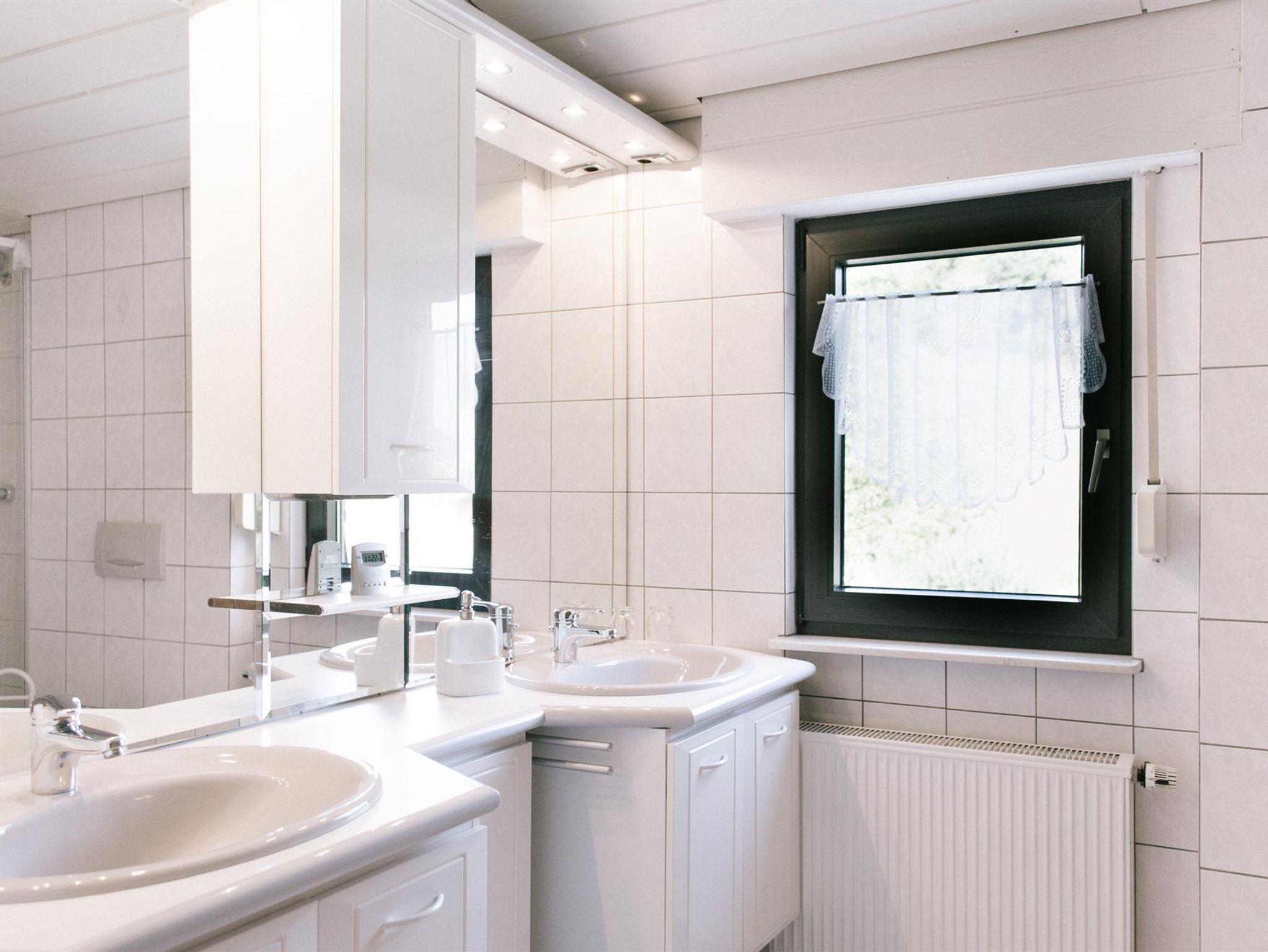 In dem geräumigen Badezimmer finden Sie zwei Waschbecken, Dusche, WC, Badewanne und selbstverständlich einem Fön sowie Handtücher.