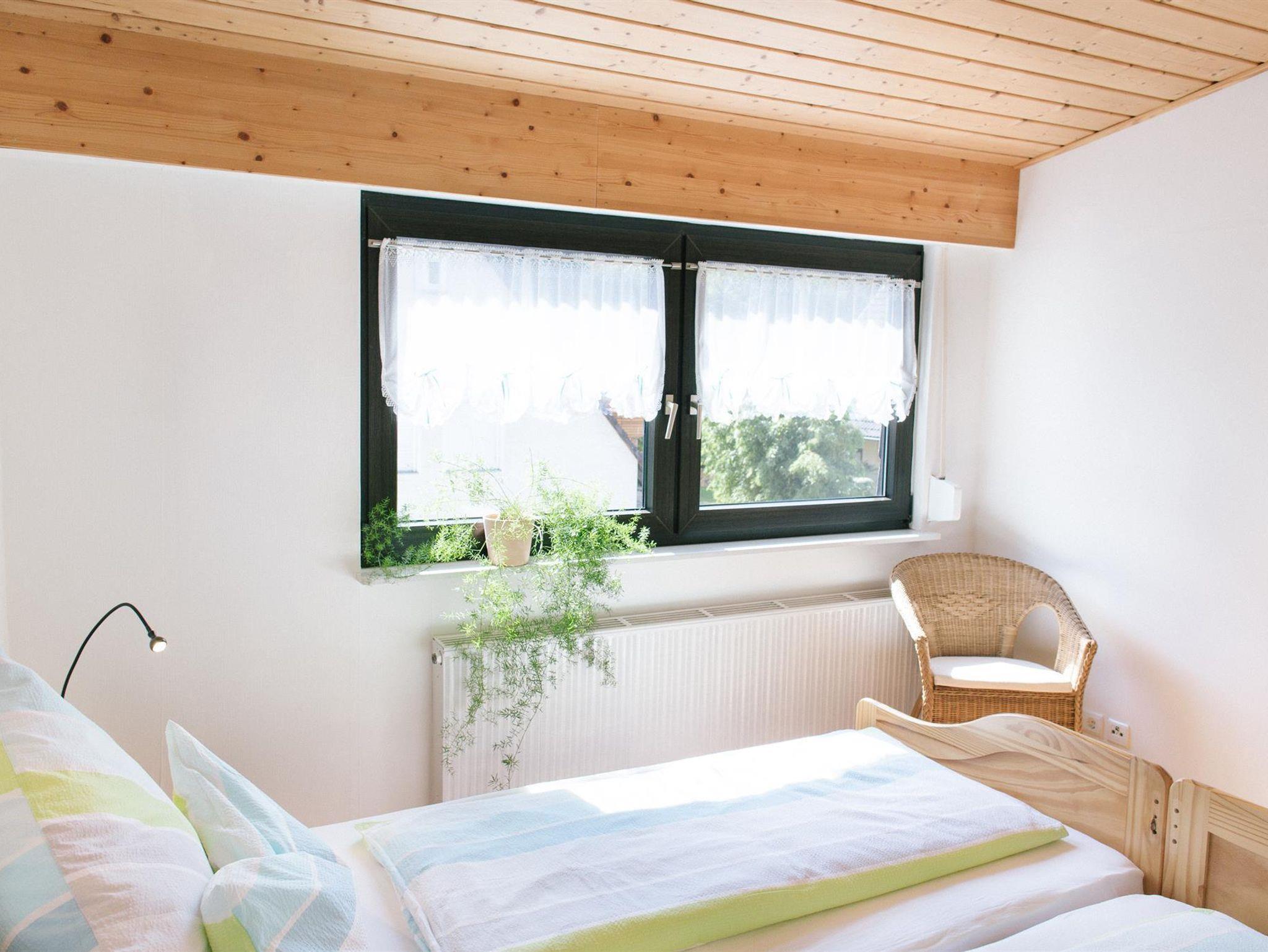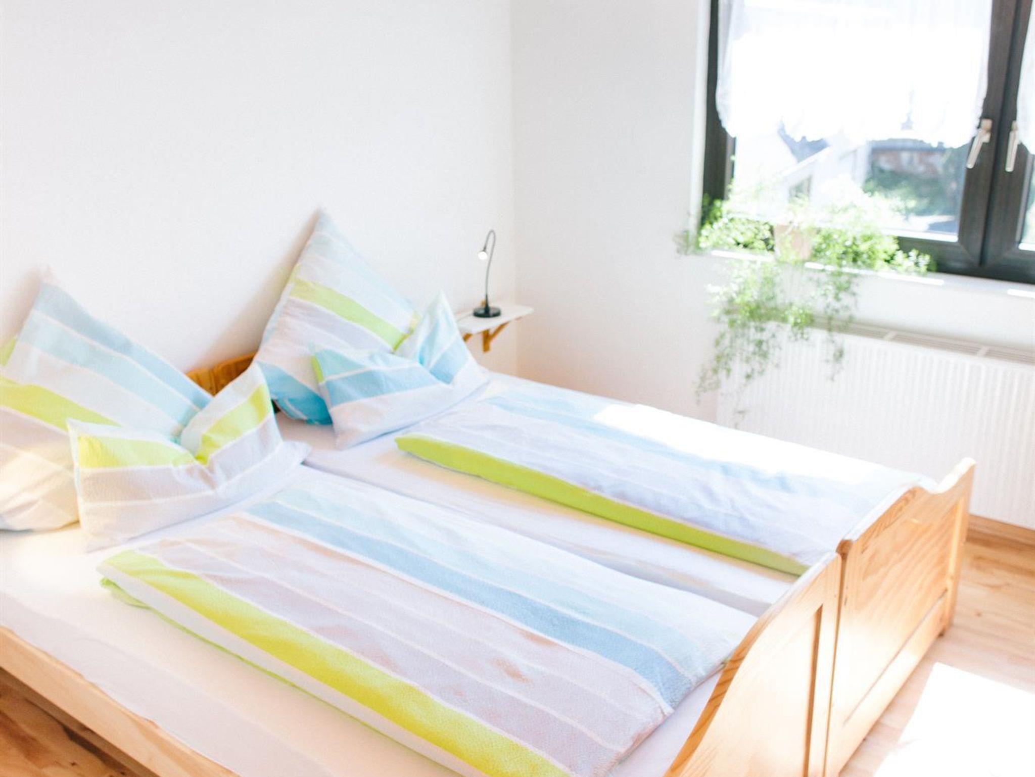 Es gibt ein separates Schlafzimmer mit Doppelbett. Bei Ihrer Anreise sind die Betten bereits bezogen und auf Wunsch erhalten Sie von mir ein zusätzliches Kopfkissen sowie eine Decke.
