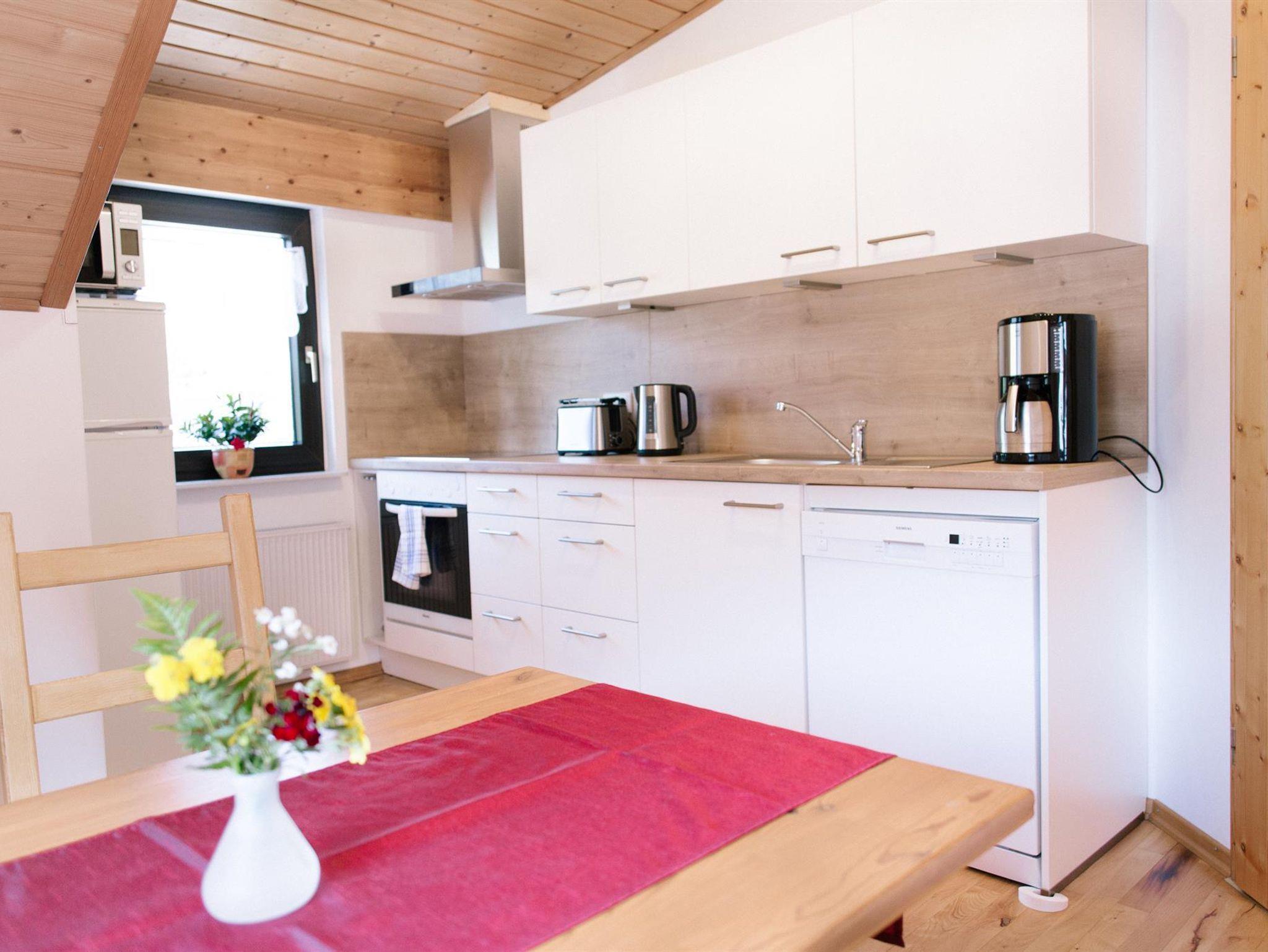 Die Ferienwohnung befindet sich im Dachgeschoss eines Zweifamilienhauses am Ortsrand von Brey. Sie besteht aus einer gut eingerichteten Küche mit Essecke. Es stehen Ihnen Kaffeemaschine, Mikrowelle, Kühl- und Gefrierschrank, Herd mit Backofen, Spülmaschine, Mixer, Wasserkocher, Eierkocher und Toaster zur Verfügung und natürlich ausreichend Geschirr.