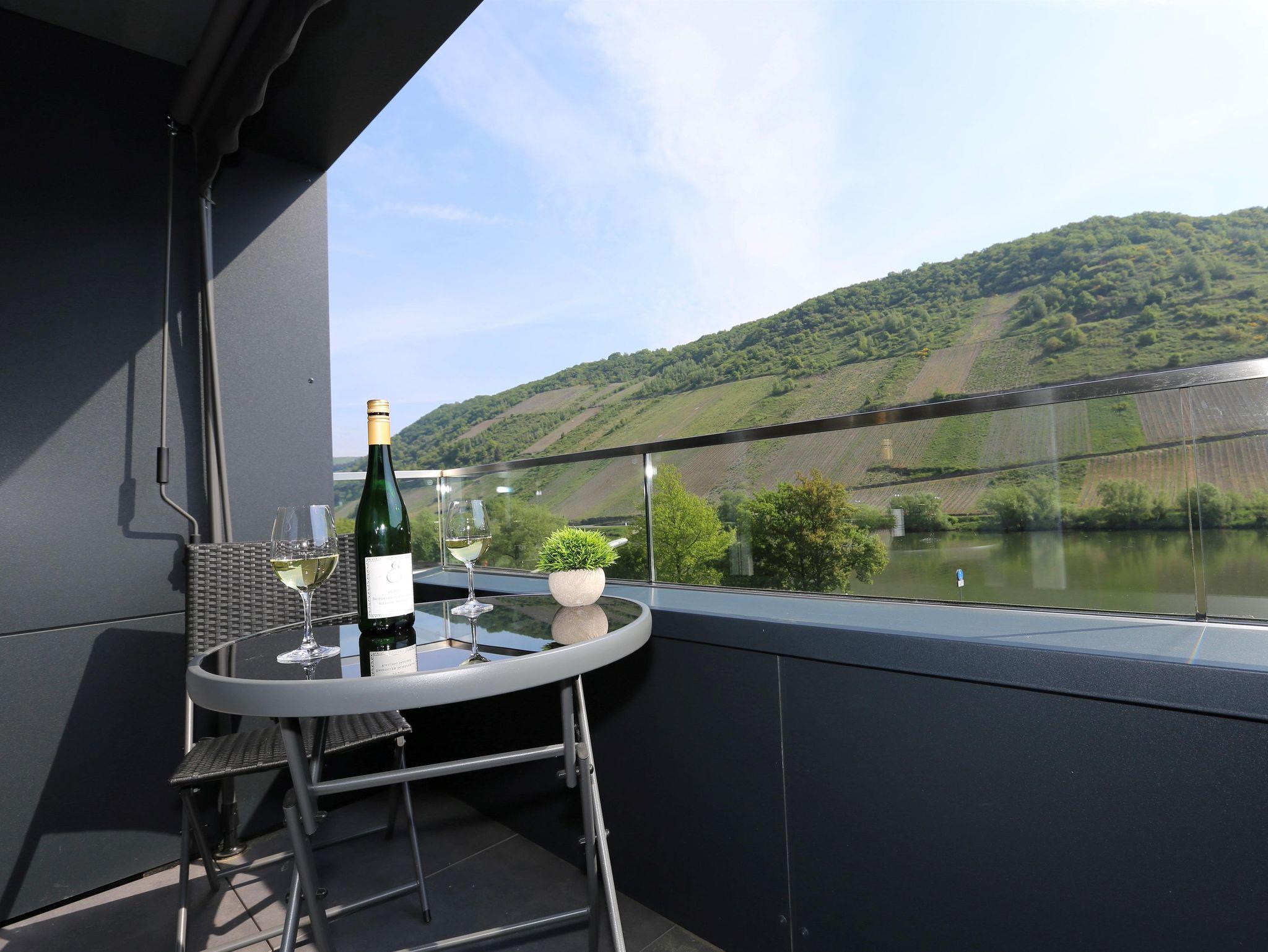 Personen zu essen und zu plaudern. Von allen Wohnungen haben Sie einen atemberaubenden Blick auf Mosel und