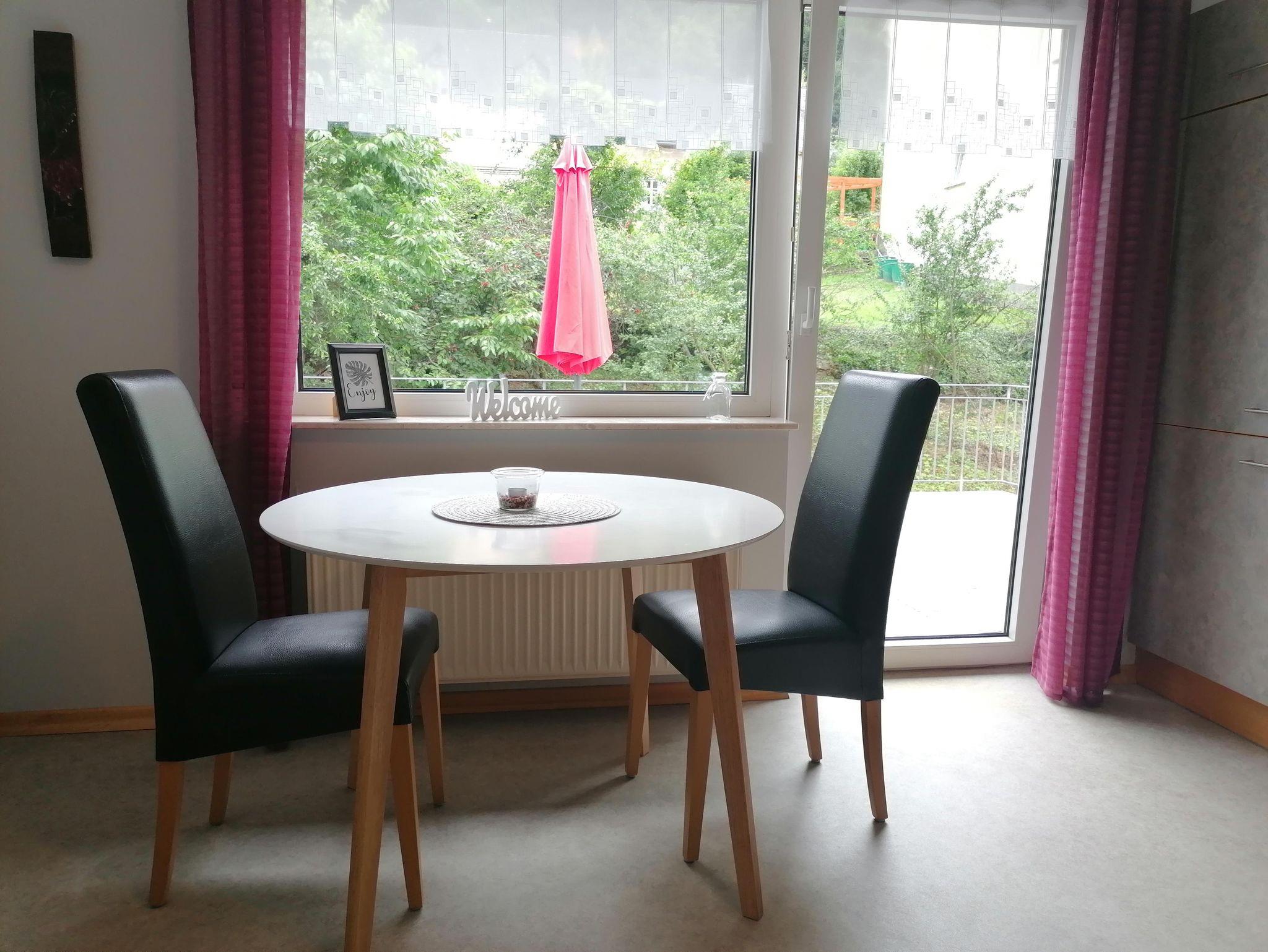 Schöne Ferienwohnung mit einem Wohnraum mit komplett eingerichteter Küchenzeile , SAT-TV, bequemer Schlafcouch, Schlafzimmer mit Bett in Komforthöhe, modernem Bad und großer Sonnenterrasse.