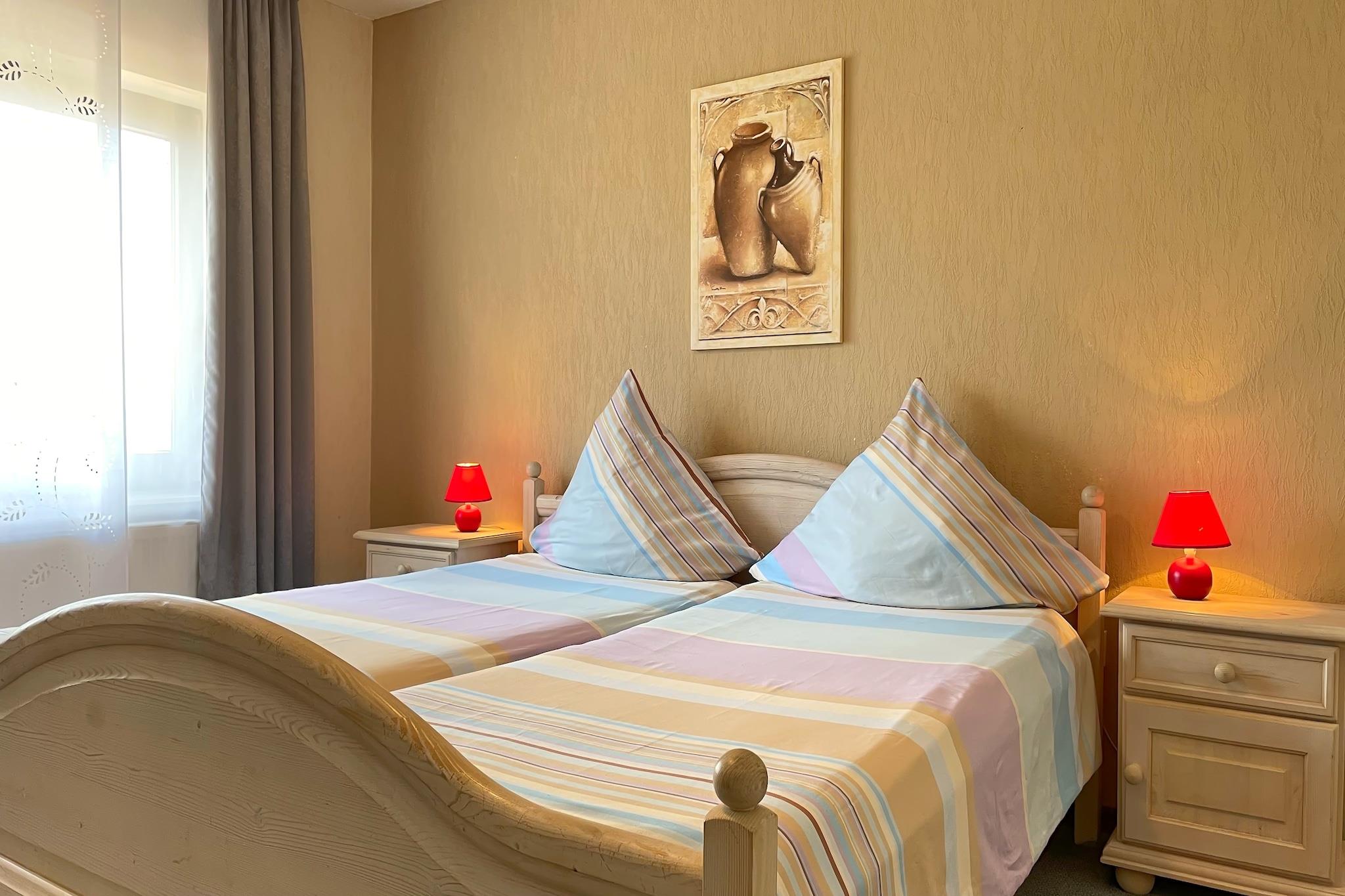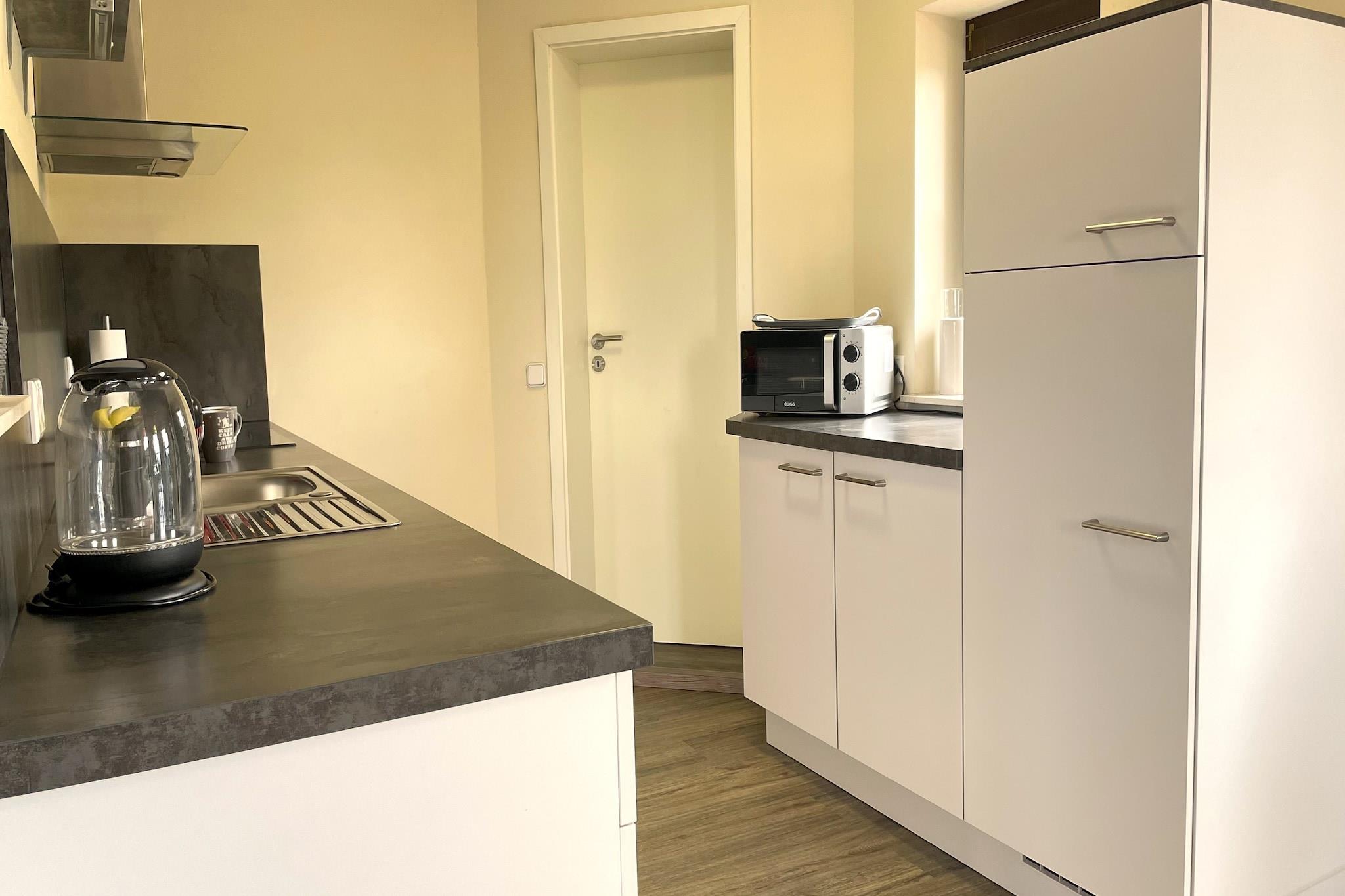 Denne lyse lejlighed i stueetagen i Brilon, i Madfeld-distriktet, tilbyder et fredeligt tilflugtssted for op til seks gæster, omgivet af skove og naturskønne vandrestier. En møbleret have og en nærliggende offentlig legeplads (50 m) gør lejligheden ideel til familier. Beliggenheden er perfekt til at udforske de vigtigste attraktioner i Hochsauerland-regionen: vandretur til de imponerende Bruchhauser Steine-klippeformationer, slentre gennem den blomstrende rosenlandsby Assinghausen, eller oplev spændingen i Fort Fun Adventure Land og Erlebnisberg Kappe. Nyd panoramaudsigten fra Willingen Skywalk og slap af om sommeren ved søerne Diemelsee eller Hillebachsee. Skisportsstederne Willingen og Winterberg ligger kun 20 minutters kørsel væk og tilbyder vintersjov. Lejligheden er komfortabel og tilbyder privatliv. Overetagen er beboet af en diskret ejer, der med glæde hjælper dig. Uanset om du søger eventyr eller rolige øjeblikke i naturen, er denne indkvartering en indbydende base i Sauerland.