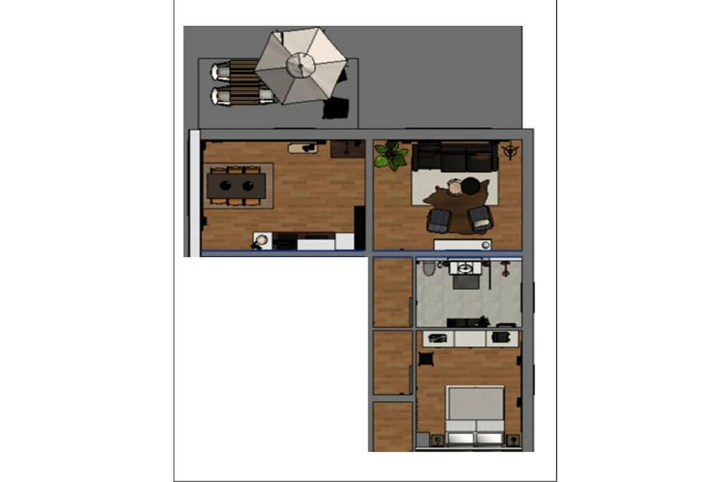 Stueetage: (Stue(, , dobbeltsovesofa, Fjernsyn), Køkken(, spisebord, kakkelovn, kogeplade, elkedel, brødrister, kaffemaskine, ovn, opvaskemaskine , køleskab, fryser, ), soveværelse(, , dobbeltseng, Fjernsyn), badeværelse(, toilet, bruser, håndvask)) Mellemetage: (loungerum(sauna)) , Internetadgang, tørretumbler, vaskemaskine, terrasse(, havemøbler), parkering, tørreskab