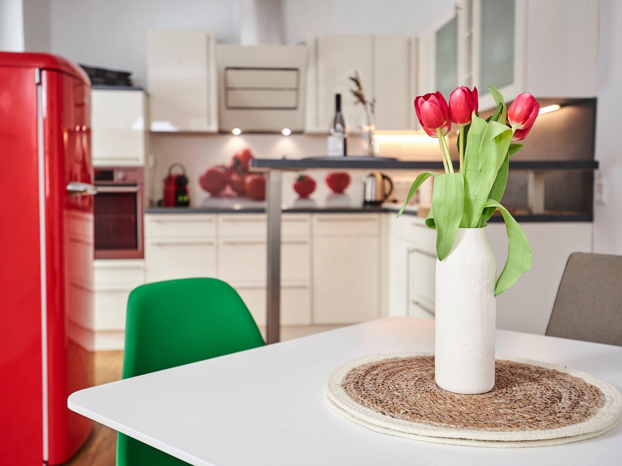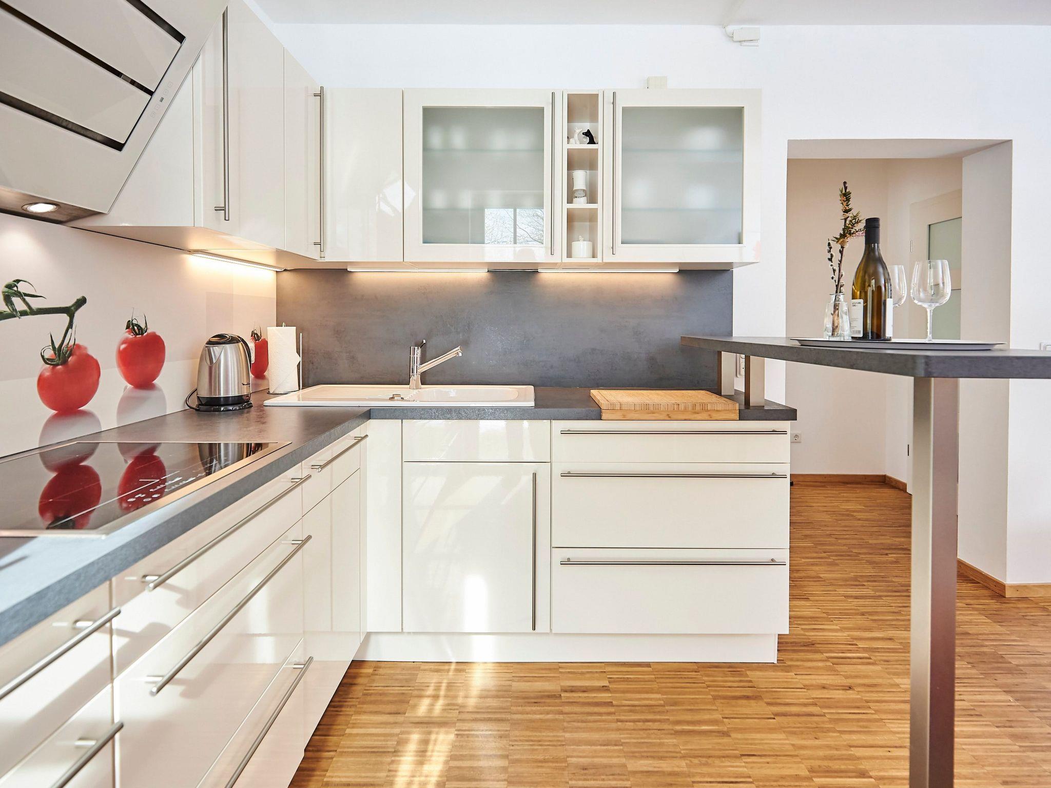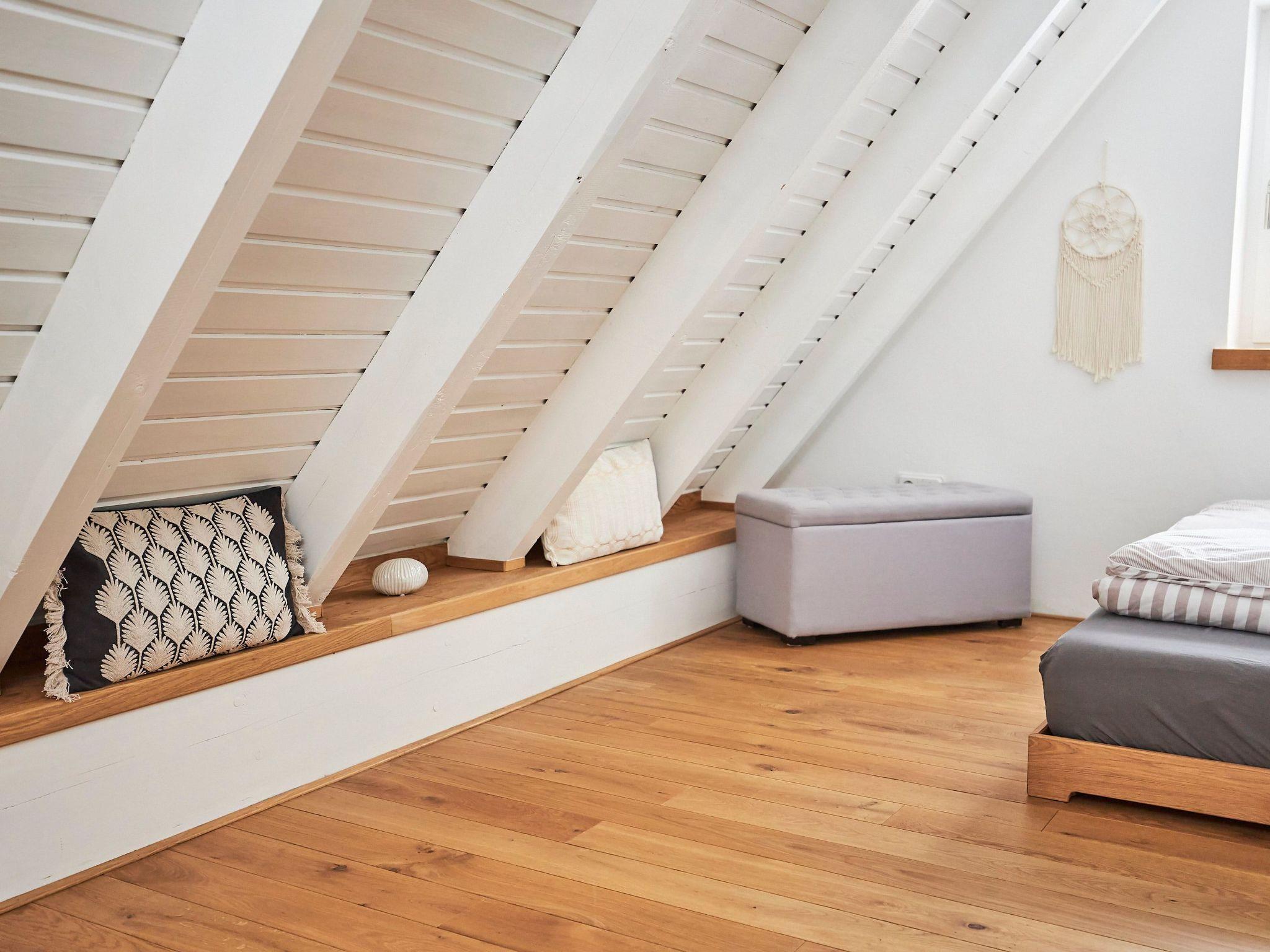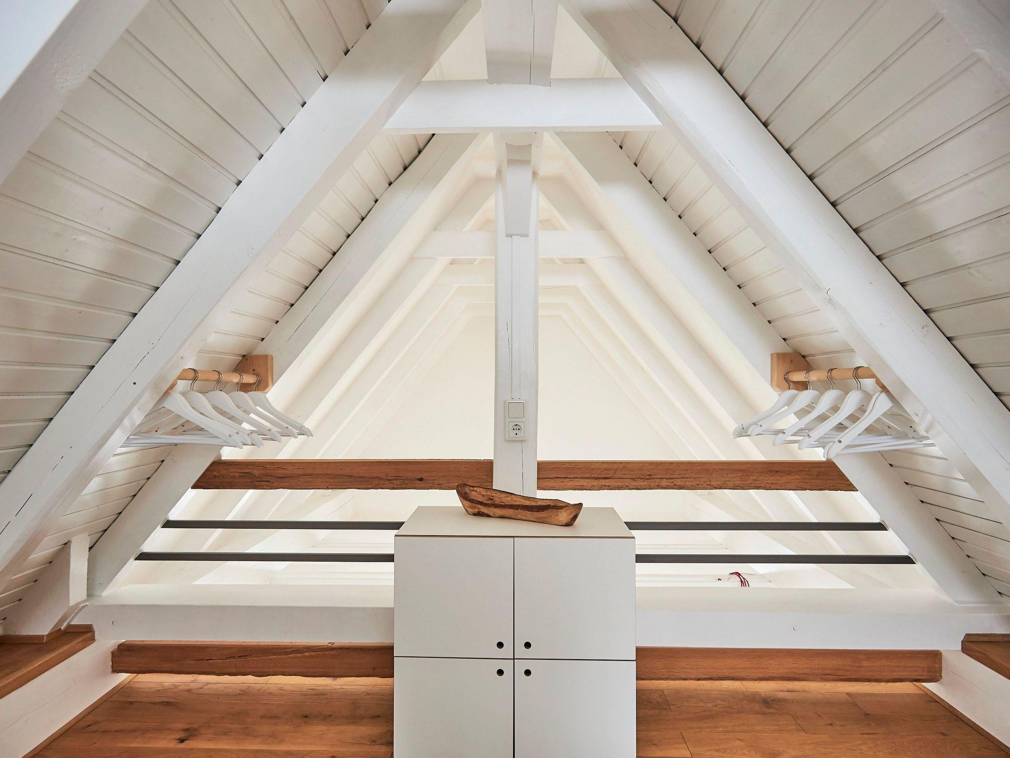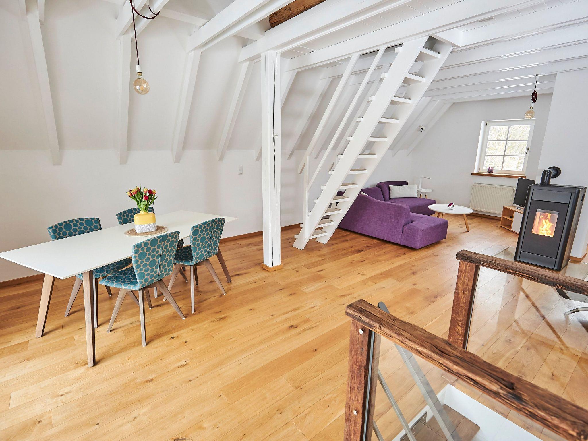 The accommodation: Our bright and modern house offers you a relaxing time on 3 levels. Scandinavian design in a modern style. On the ground floor there is a fully equipped kitchen where you can prepare your delicious meals. You will also find the bathroom downstairs with a modern, floor-level shower. You can also conveniently use the washing machine and tumble dryer in our laundry room. A nice highlight on the ground floor is the large terrace with a view of pure nature. You can also barbecue here. On the first floor there is an open-plan living area, which is very spacious and bright. The dining table seats up to 6 people. You can relax on our cosy "Brühl" couch, read, enjoy the fire in our pellet stove or watch the TV programme. You can simply relax and take an afternoon nap on our comfortable lounger. Another highlight is our balcony on the 1st floor, where you can enjoy the most beautiful sunsets. Our small "chicken staircase" leads upstairs to the open sleeping area, where up to 3-4 people can sleep peacefully and relaxed. Another sleeping option is available on the 1st floor on our sofa bed. A relaxing and enjoyable time awaits you. As a feel-good programme, we spoil you at the weekend with our bread roll service, with which you start the day with crispy bread rolls on Saturday and Sunday, so please contact us with any questions or requests.