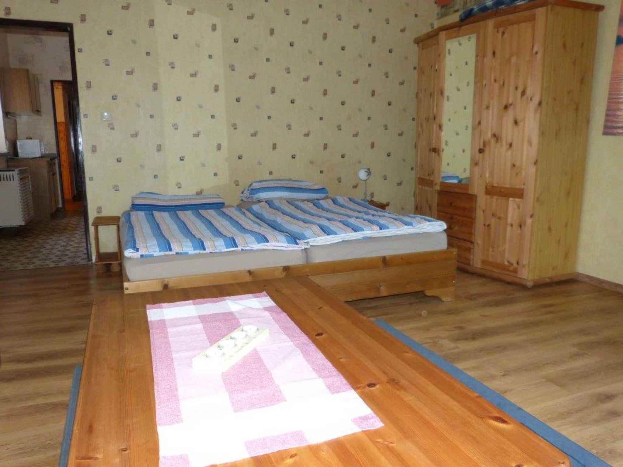 Omas Wohnung ist eine Ferienwohnung ohne Treppen, hat eine Wohnküche von 18qm, einen Wohnschlafraum von 26qm mit 2 Betten, ein zweites Schlafzimmer mit 3 Betten und eine überdachte Terrasse am Wohnzimmer. Die gesamte Nutzfläche beträgt dann mit Eingangsflur, Bad (Badewanne) und WC ca. 70 qm + Terrasse.