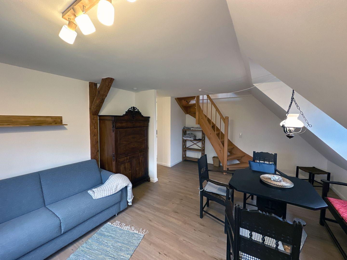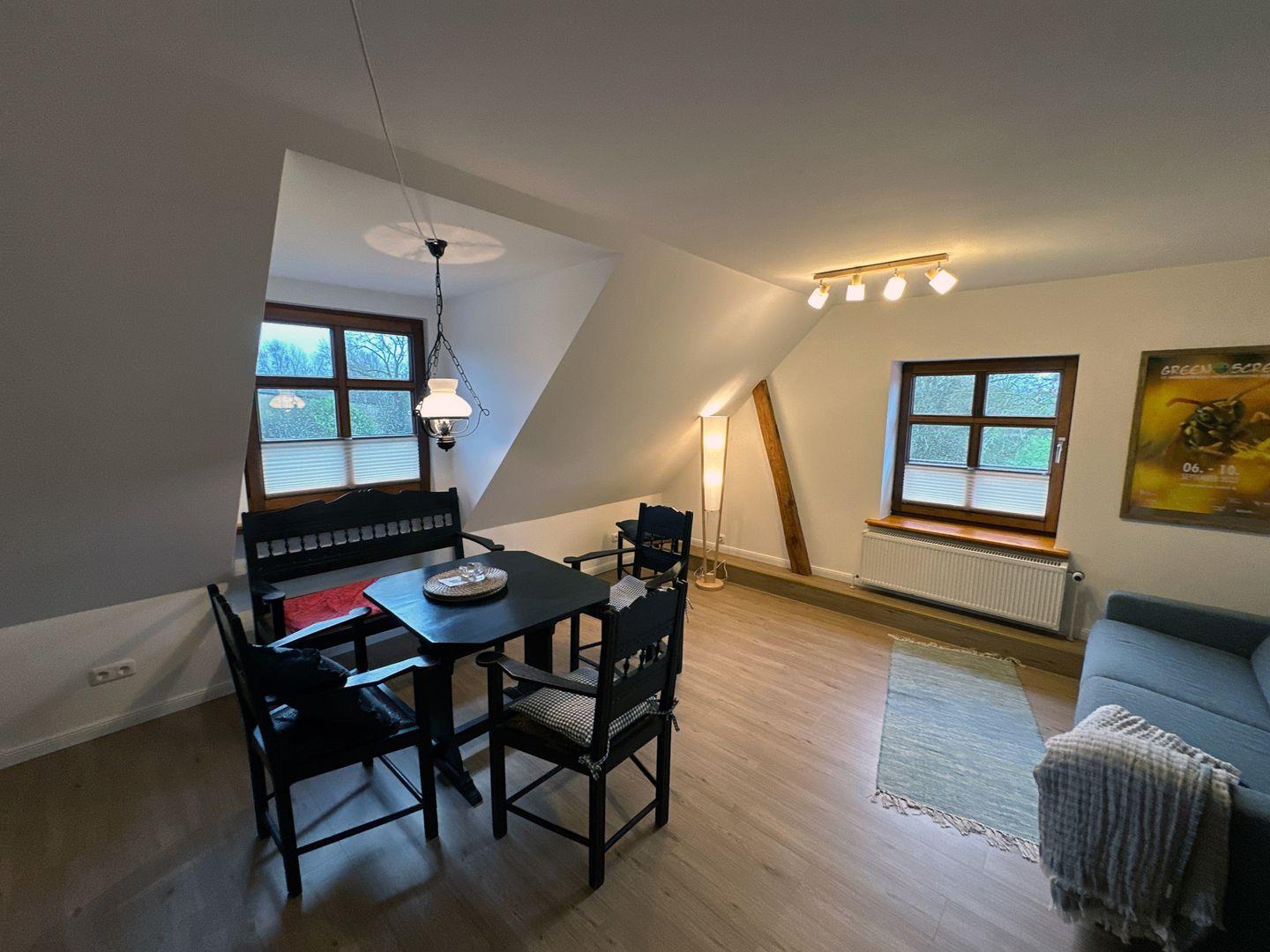Willkommen in unserer charmanten Ferienwohnung Bienenstock auf dem Lassen Hof in Brodersby an der Schlei. Unsere renovierte Wohnung für zwei bis fünf Personen bietet Ihnen eine ruhige Atmosphäre, ideal für eine Auszeit vom Alltag. Der offene Wohn- und Essbereich verfügt über eine gut ausgestattete Küchenzeile und ein hochwertiges Schlafsofa für zwei Personen. Das separate Schlafzimmer ist mit einem Etagenbett (je 90x200 cm) ausgestattet. Das Badezimmer mit Fenster bietet sowohl eine Badewanne als auch eine Dusche und ein WC. Der Schlafbereich ist separat per Treppe im gemütlichen Loft gelegen. Auf Anfrage können Zustellbetten für zwei weitere Personen bereitgestellt werden.