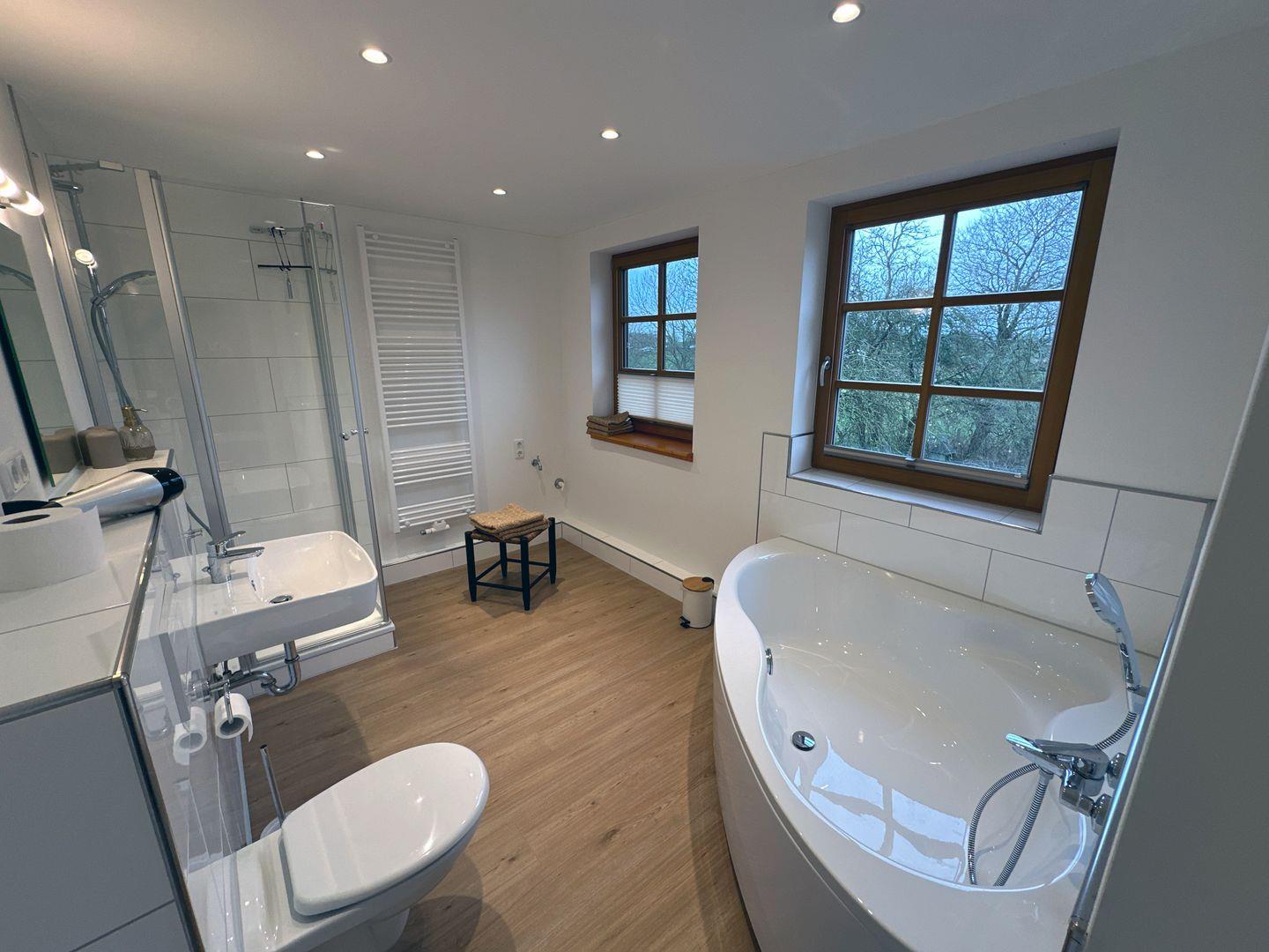 Ferienwohnung Bienenstock auf dem Lassen Hof in Brodersby-Goltoft! Diese charmante, 50 m² große Ferienwohnung bietet Platz für bis zu 5 Personen und ist ideal für Familien. Genießen Sie entspannte Tage in der komfortablen Unterkunft mit offener Küche, Essbereich und Sofaecke. Die Wohnung verfügt über ein modernes Badezimmer mit Dusche und Badewanne. Der Schlafbereich ist separat per Treppe im gemütlichen Loft. WLAN und ein Parkplatz sind ebenfalls vorhanden. Entdecken Sie die Schlei-Region!
