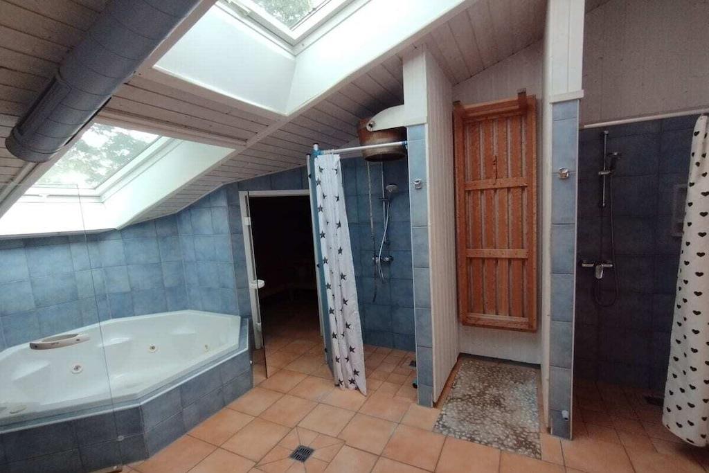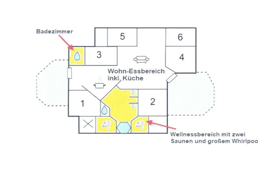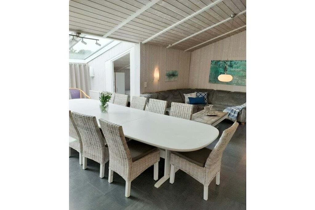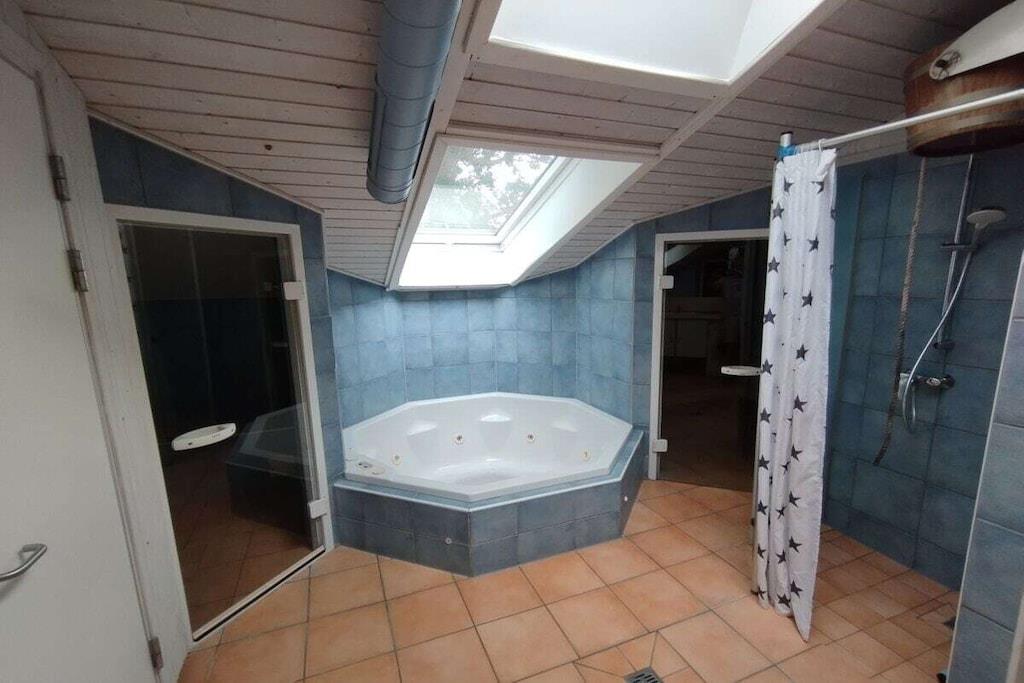 Vores store hus Strandpark 23 er ideelt til 8 voksne og 4 børn, selvom selv "voksne" kan finde behagelig plads til at sove i alkoven med dør. Huset kan anbefales på alle tider af året, fordi det har spabad, sauna og smuk pejs.