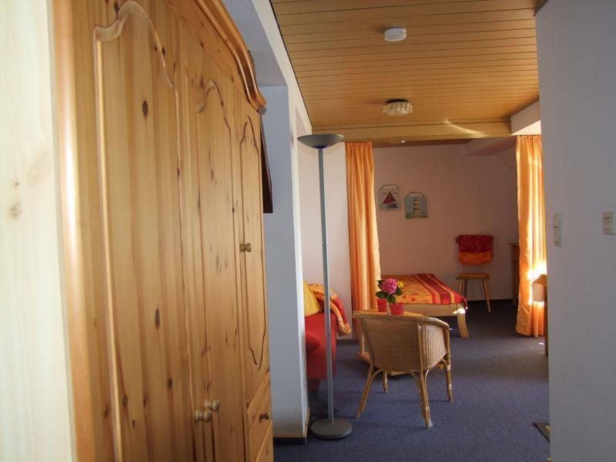 The flat is located together with flat 2 on the upper floor. Living space: approx. 50 square metres. Combined living/bedroom with satellite TV and seating as well as a double bed. Bedroom with a double bed and baby cot. Kitchenette with cooking facilities, additional coffee machine, kettle, toaster, crockery and high chair. Bathroom with shower and WC.