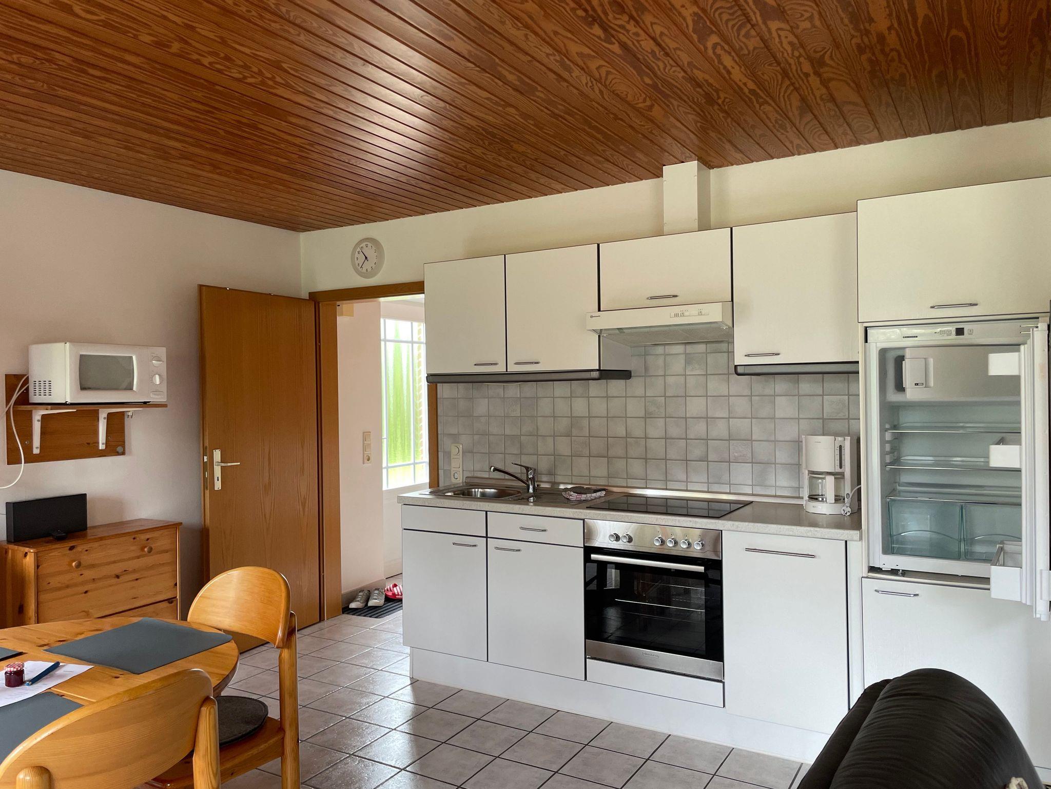 Das Wohnzimmer ist mit einer gemütlichen Sitzgruppe (5er), Fernseher, DVD-Player und Stereo-Anlage ausgestattet. Die integrierte Küche ist komfortabel und großzügig ausgestattet (E-Herd, Kühlschrank, Spülmaschine, Mikrowelle, Kaffeemaschine).