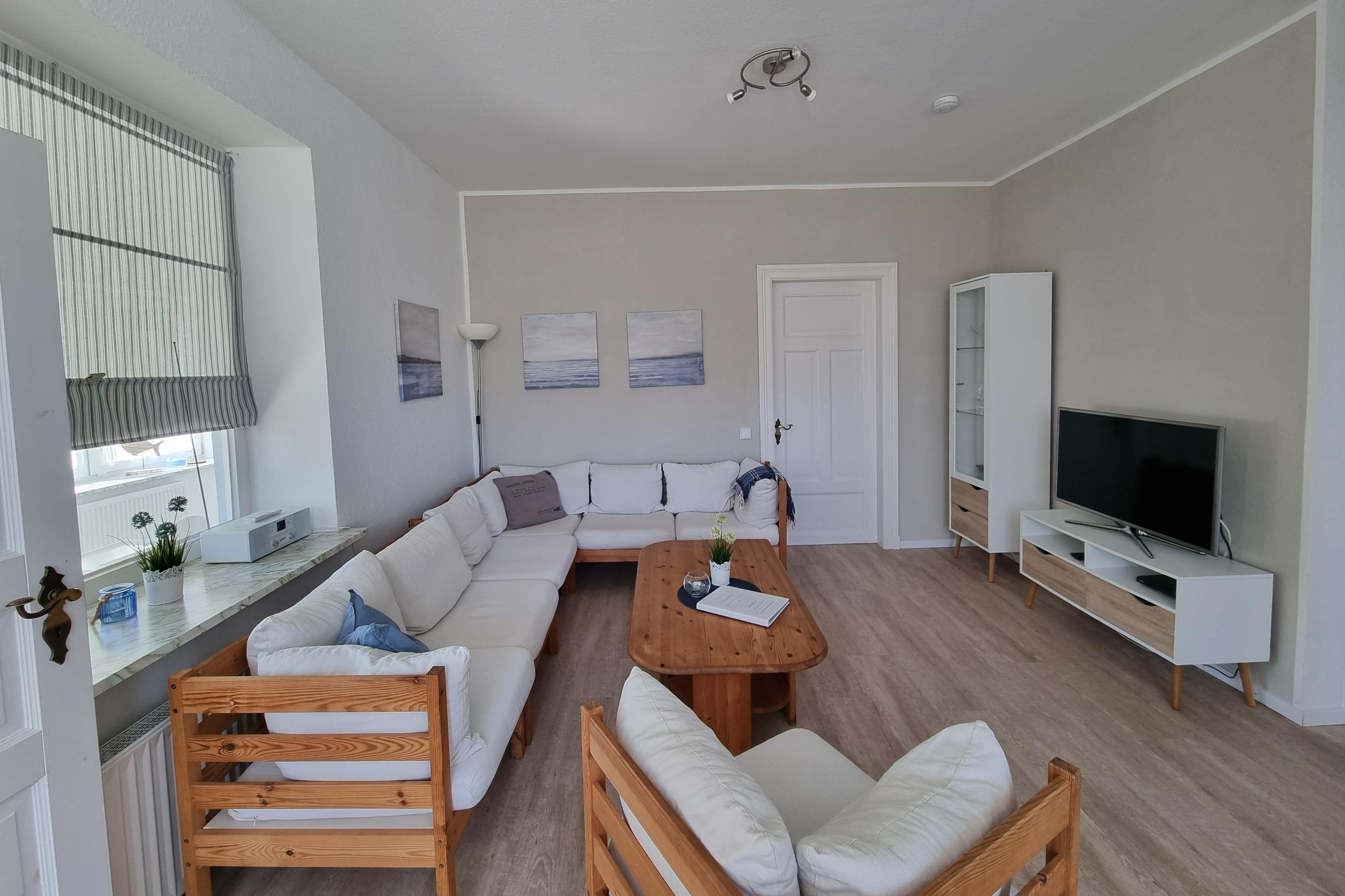 Die 120 m2 große Ferienwohnung Gaarden verfügt über einen großzügigen Wohn- und Essbereich mit voll ausgestatteter Küche. Die drei Schlafzimmer sind jeweils mit einem Doppelbett (2x 2,00 m breit, 1 x 1,80 m breit) eingerichtet. Im Badezimmer mit bodentiefer Dusche befindet sich eine Waschmaschine, außerdem ist ein zusätzliches separates Gäste-WC vorhanden. Die Wohnung ist hell und freundlich eingerichtet und verfügt über einen WLAN Zugang.