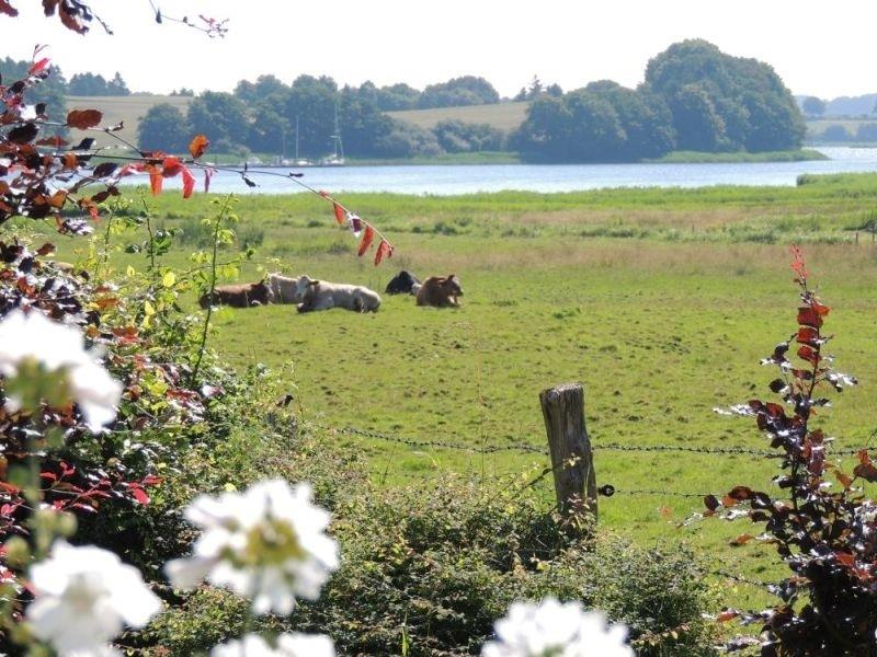 Genießen Sie das individuelle großzügige Ferienhaus, Teil einer historischen Hofanlage, mit großem altem Garten. Es liegt am Dorfausgang nach Missunde und bietet einen herrlichen Panoramablick über die Wiesen - auf denen im Sommer Rinder und ihre Kälber zu bestaunen sind - auf die Schlei.