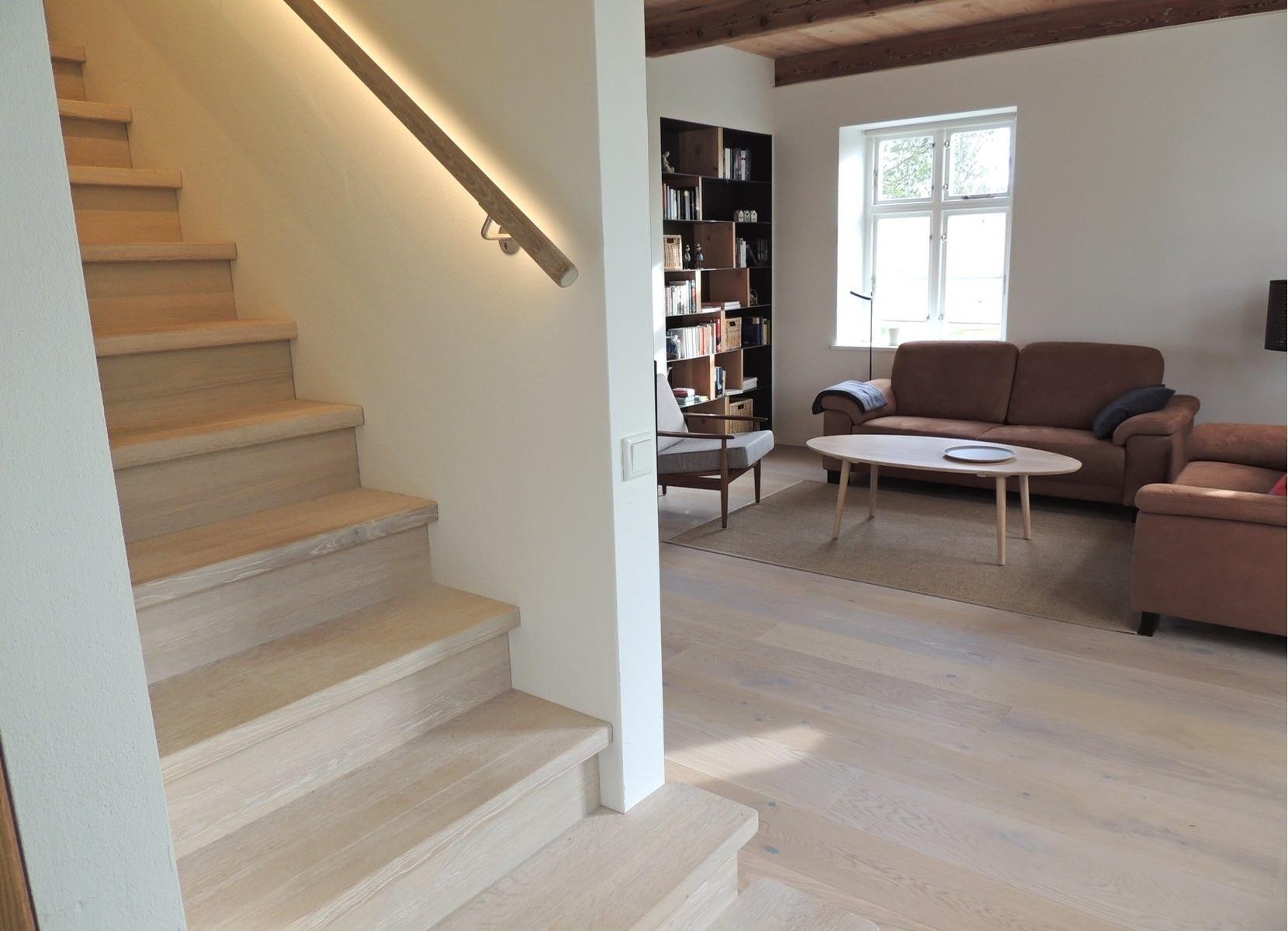 Das Ferienhaus ist Teil einer historischen reetgedeckten Hofanlage und völlig separat mit eigenem Garten bewohnbar. Da lediglich die Außenansicht unter Denkmalschutz steht, wurde innen - bis auf die alten Balken - ein vollständig neues Haus eingezogen, das sich seinen Charme auch in Kombination mit neuen Materialien erhalten hat. So bietet Ihnen das sanierte alte, barrierearm ausgestattete Haus alle Optionen der heutigen Zeit: Fußbodenerwärmung im Fliesenbereich (Bad, Küche), integrierte Wandheizung der Außenwände, Eichholzfußböden, Holzdecken.
