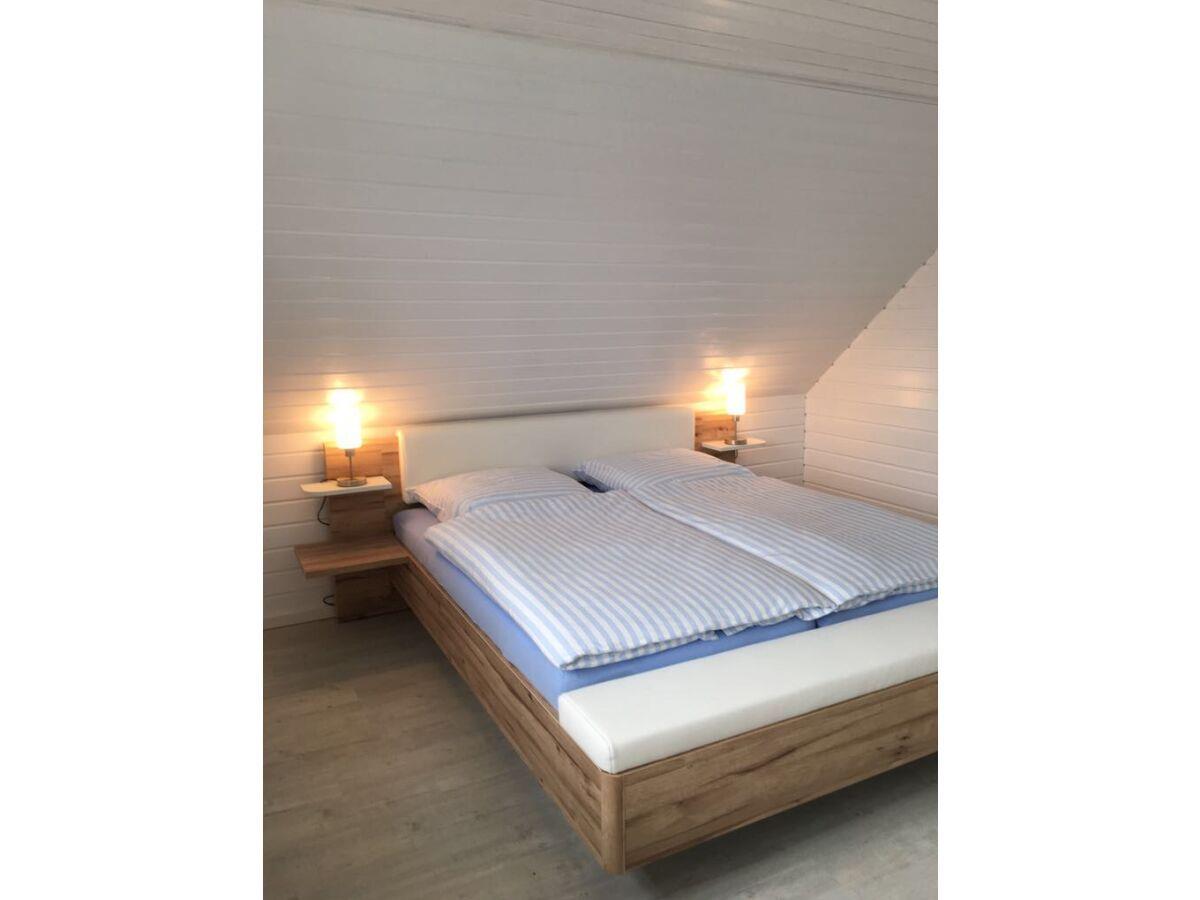 Ferien mit höchstem Komfort verspricht das Luxus Ferienhaus "Traum in Blau". Das ruhig gelegene Haus bietet viel Platz für 4 Personen, gern auch mit Hund. Im Obergeschoss befinden sich zwei geschmackvoll eingerichtete Schlafzimmer. Sie genießen den Ostseeblick mit traumhaften Sonnenaufgängen oder den wunderschönen Ausblick in die herrliche Natur der Ostseehalbinsel Schwansen mit der unverwechselbaren Landschaft aus Feld und Wald. Beide Zimmer sind ausgestattet mit einem stilvollen gemütlichen Doppelbett und Einbauschränken mit viel Platz. Ein modernes WC ist im OG vorhanden.