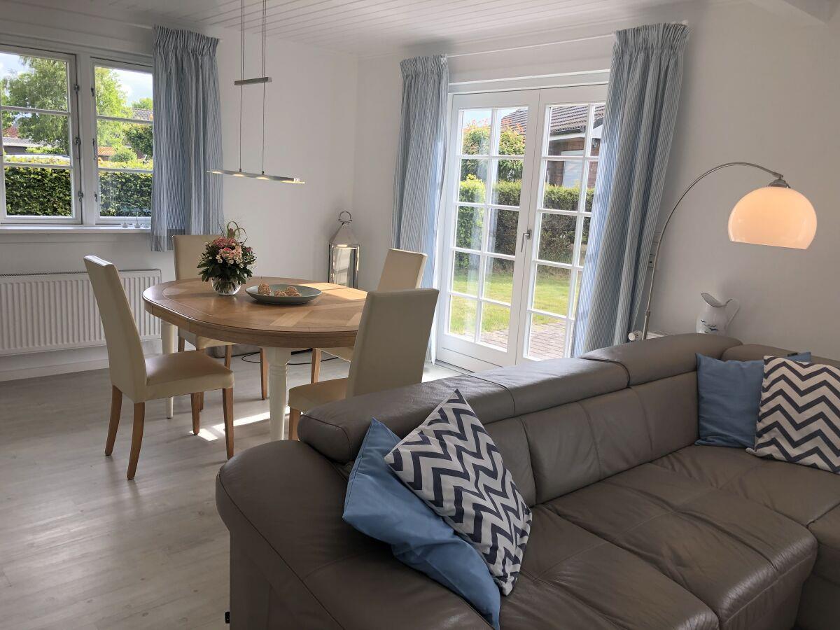 Das hundesicher eingezäunte 515 qm große Grundstück bietet auf einer großen Terrasse mit exklusiven Terrassenmöbeln die Gelegenheit, die Seele baumeln zu lassen. Ein Weber-Grill steht für einen Grillabend, vielleicht mit den leckeren Produkten aus einem der zahlreichen Hofläden der Region, zur Verfügung.