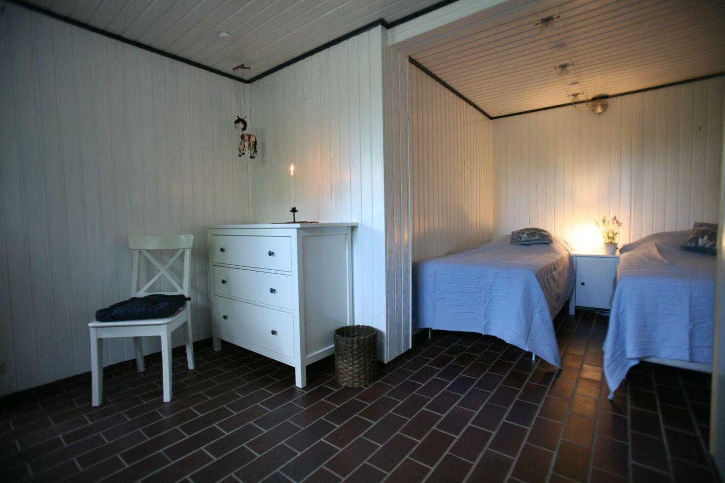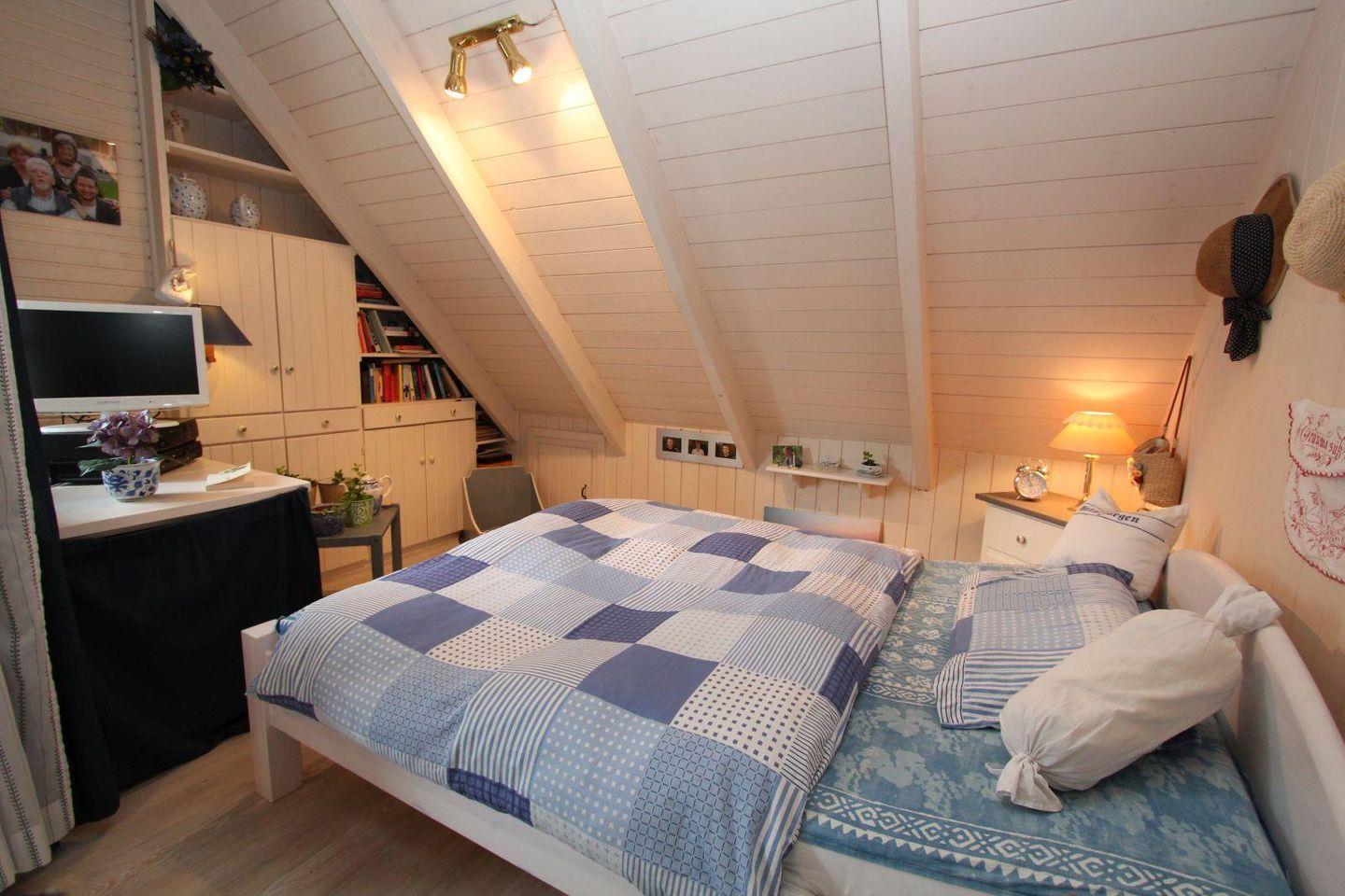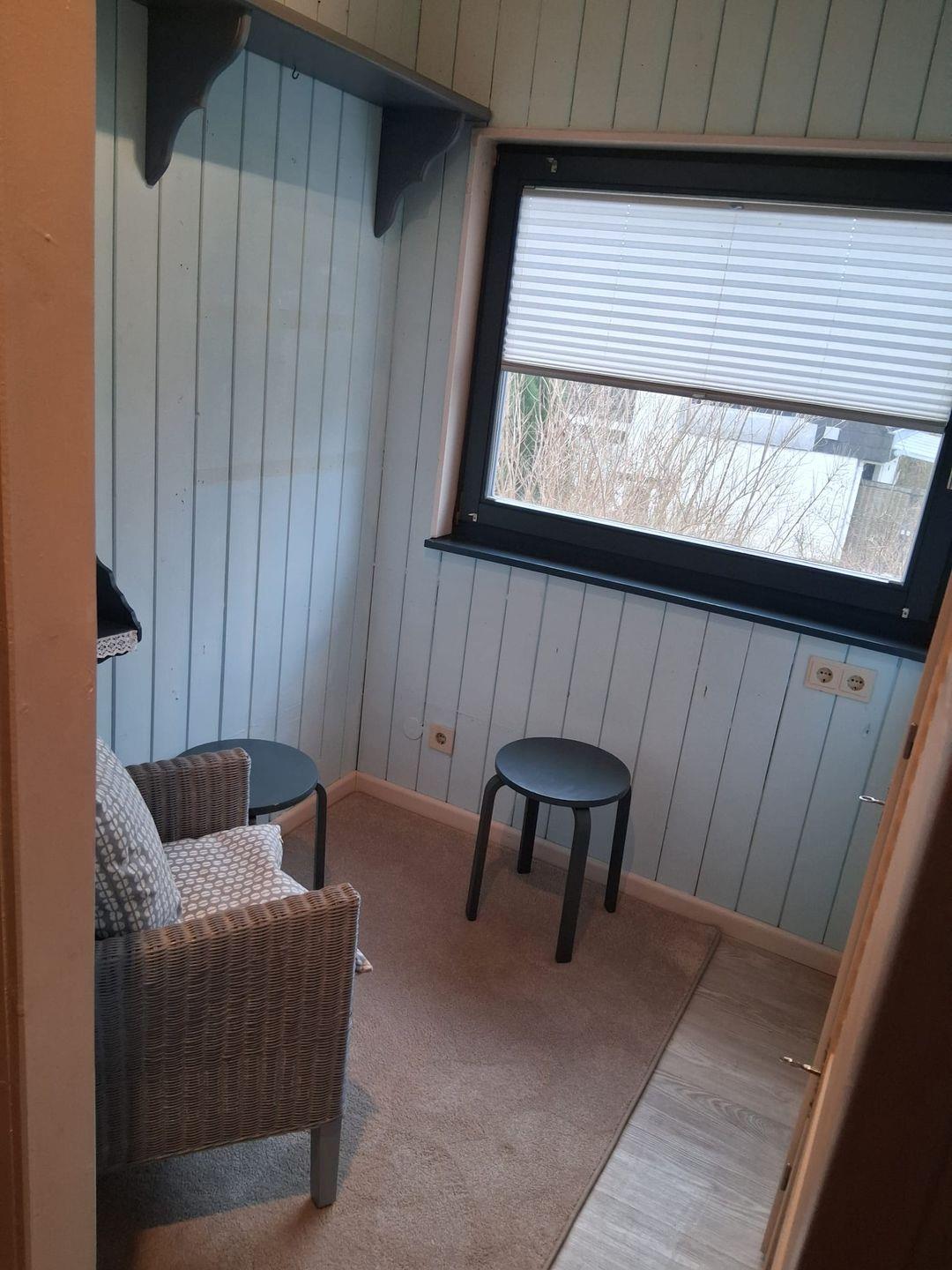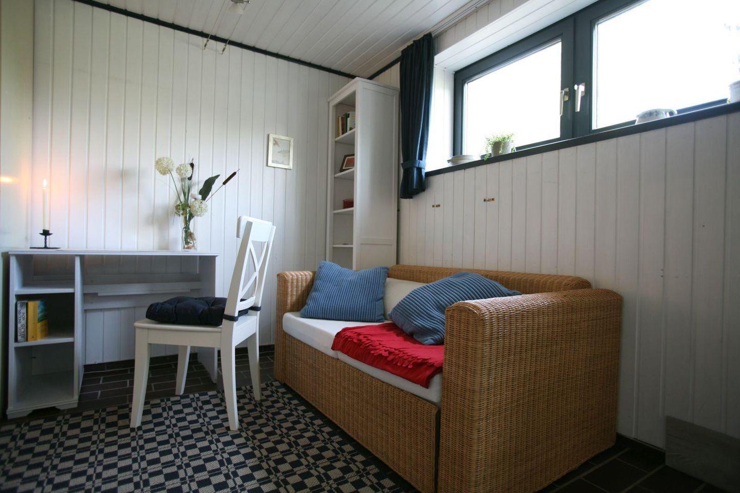 Neben einem Schlafzimmer im Erdgeschoss befinden sich zwei weitere Schlafzimmer im Obergeschoss. Hier hat man Zugang zum Westbalkon, von dem aus man spektakuläre Sonnenuntergänge beobachten kann. Von der großen verglasten Panoramafront im Giebelzimmer hat man freien Blick in den Garten. In diesem Zimmer steht ein Schreibtisch zur Verfügung. Info: Guter Internetempfang durch Breitbandkabel.