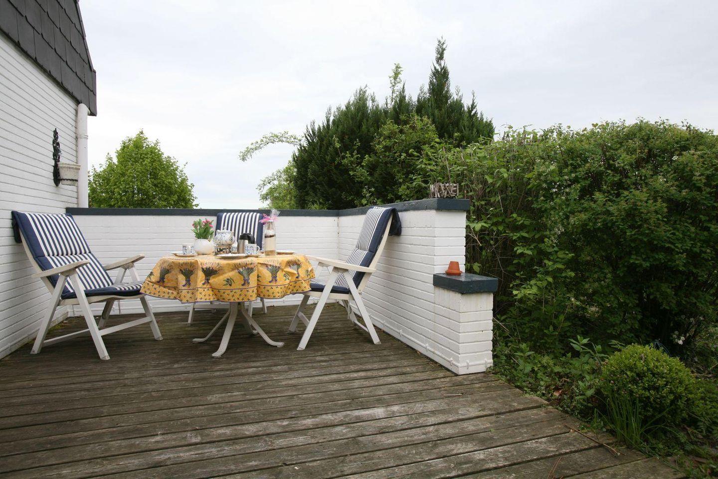 Der rund 1.500 qm große Garten mit seiner Liegewiese lädt zum Sonnenbaden oder Toben ein, Gartenmöbel und Sonnenliegen stehen bereit. Die drei windgeschützten, sonnigen Terrassen sind nach Osten, Süden und Westen ausgerichtet, die größte Terrasse verfügt über eine elektrische Markise. Der Außenbereich ist kaum einsehbar, sehr gepflegt und vollständig eingezäunt; Hunde sind erlaubt. Im Garten steht den Gästen ein offener Schuppen zur Verfügung. Hier können Fahrräder oder Sportzubehör untergestellt werden.