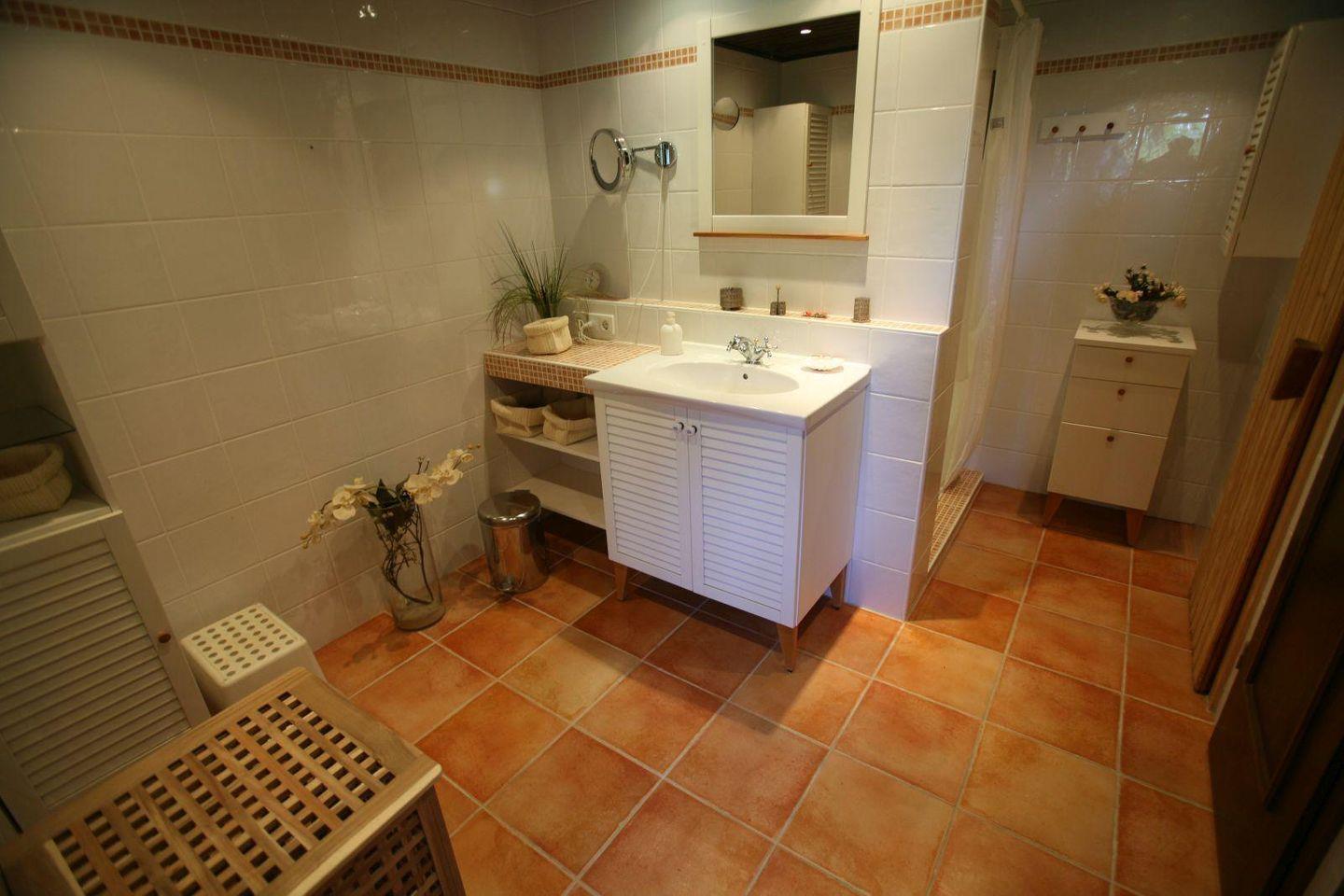 Ein eleganter Terracotta-Boden im Wohn-Essbereich sorgt für eine gute Raumatmosphäre. Im Obergeschoss ist ein pflegeleichter heller Bodenbelag verlegt. Eine Fußbodenheizung verbreitet auch in den Herbst- und Wintermonaten angenehme Wärme.