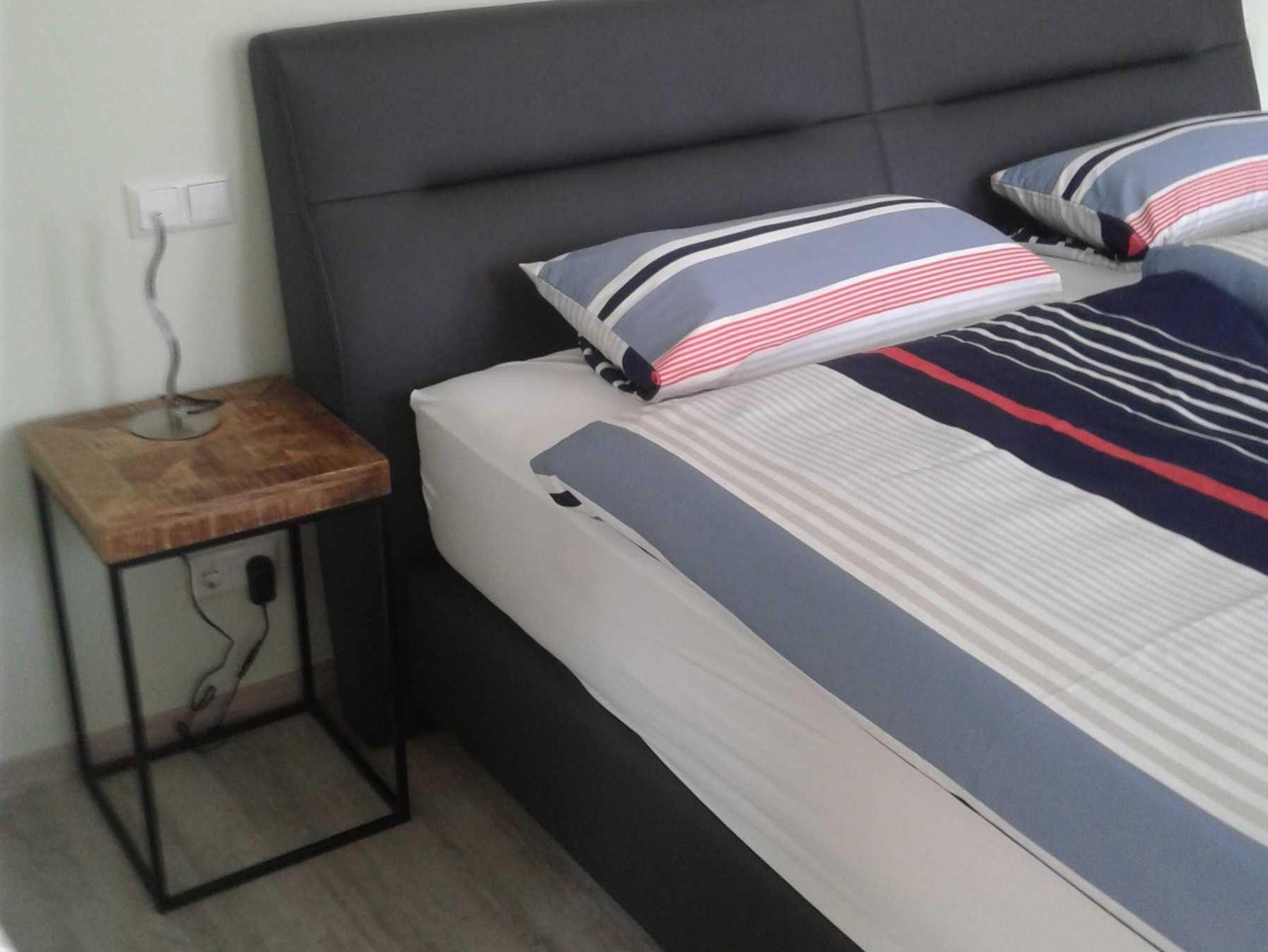 Das Zimmer bietet genug Platz für 2 Erwachsene. Der Eingang zum Zimmer ist mit einer Rampe für Gehbehinderte versehen. Sie ist ausgestattet mit einem Boxspringbett (200x200) und großem Kleiderschrank, und einem Bad mit begehbarer Dusche.