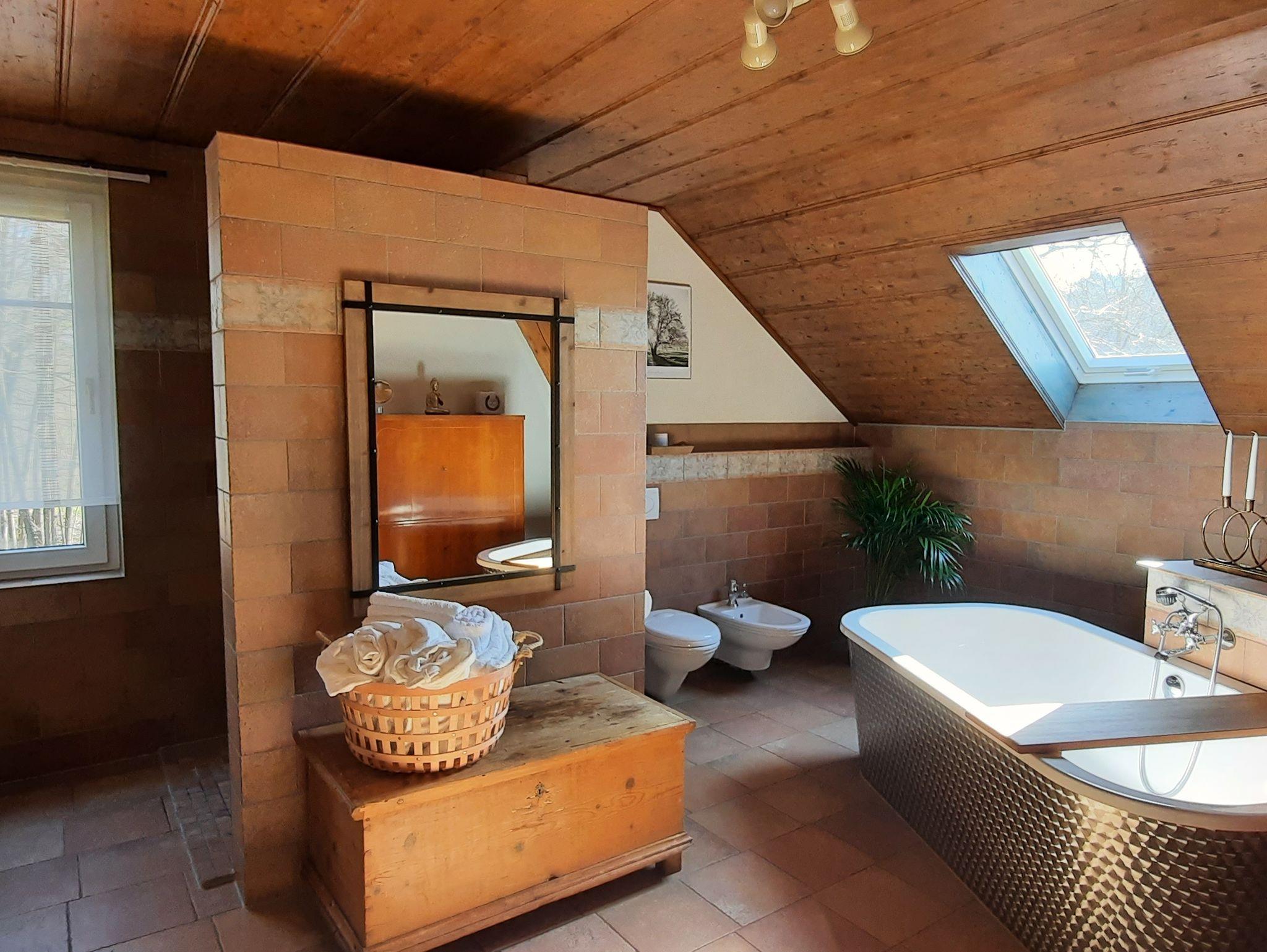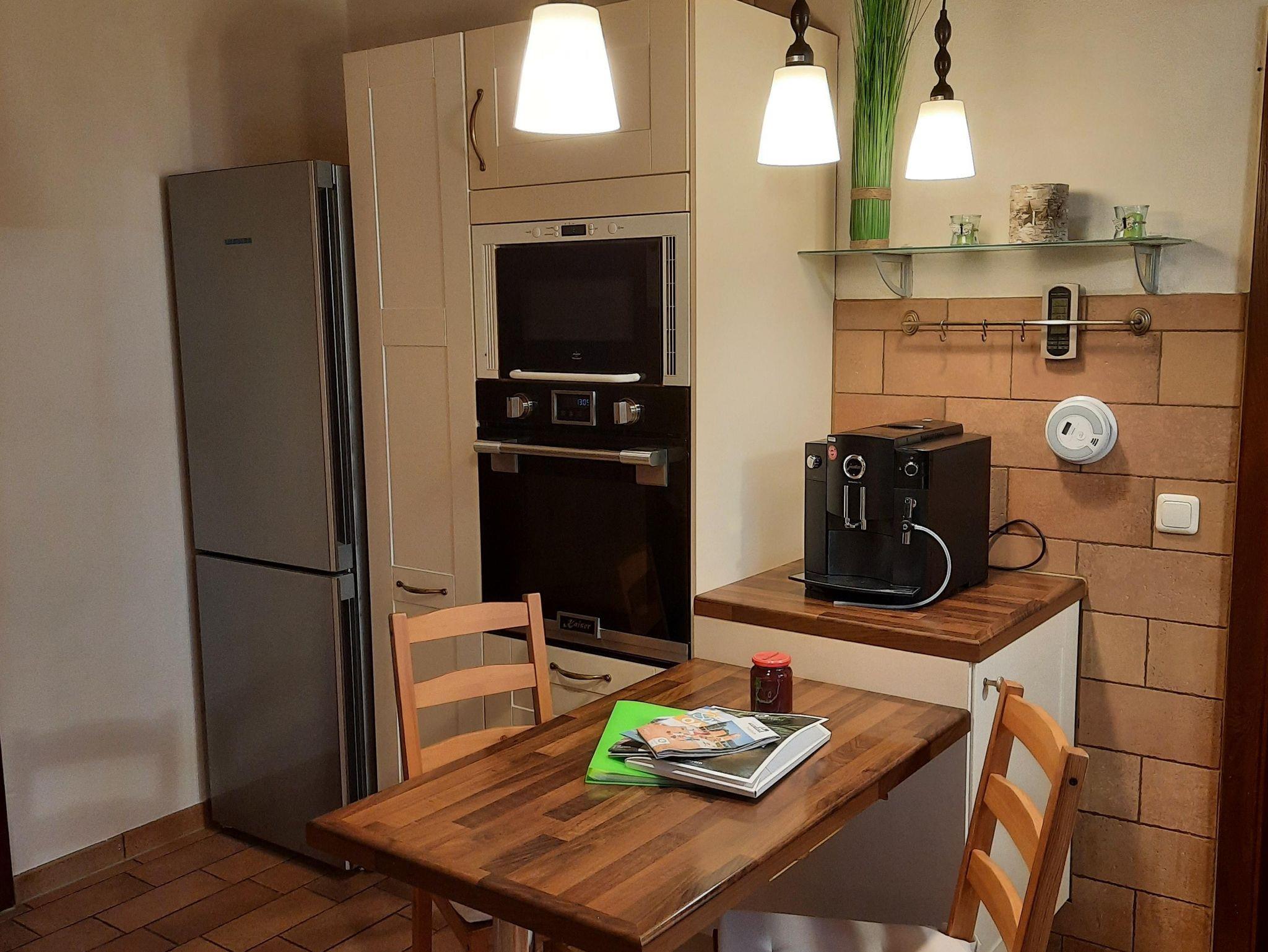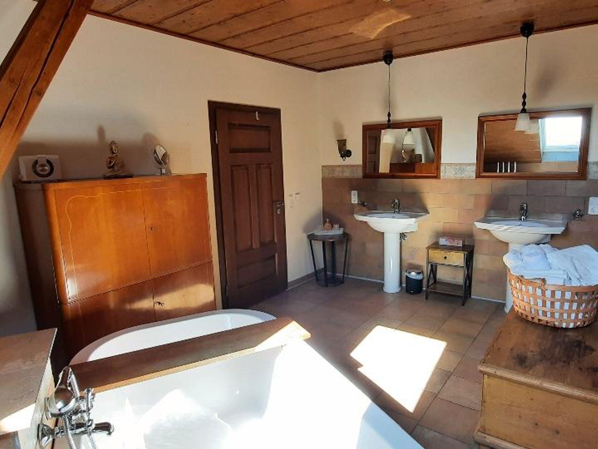 Dieses voll ausgestattete Haus für insgesamt 8 Personen (4 Erwachsene + 4 Kinder) in Alleinlage (Grundstück 3000 m²) mit Zentralheizung im ganzen Haus verfügt u.a. über folgende Besonderheiten: einen Kaffeevollautomaten (der gleich bei Anreise betriebsbereit ist) ein Induktionskochfeld, Holzofen in der Küche, Thermomix, frei stehende Badewanne und ebenerdige Dusche, sowie 2 separate Waschbecken, Fußbodenheizung im Bad, große Terrasse/Veranda mit Rollo, Boxspringbetten (4 separate Schlafzimmer mit Verdunklungsvorhänge, davon 2 Kinderzimmer, mit insgesamt 3 Doppelbetten und 2 Einzelbetten mit Rausfallschutz), 200 m² Wohnraum, Schwedenofen, große Wohnlandschaft im Wohnzimmer, Wäscheservice, Leseecke mit Chillout-Lounge, Kinderspielzeug, Hochstühle, Kindergeschirr und Besteck, Wickelauflage, Kinderklo, Sauna und Hot-Tube Jacuzzi, Ausstattung für Kleinkinder/Babys auf Wunsch, Treppenschutzgitter, etc.