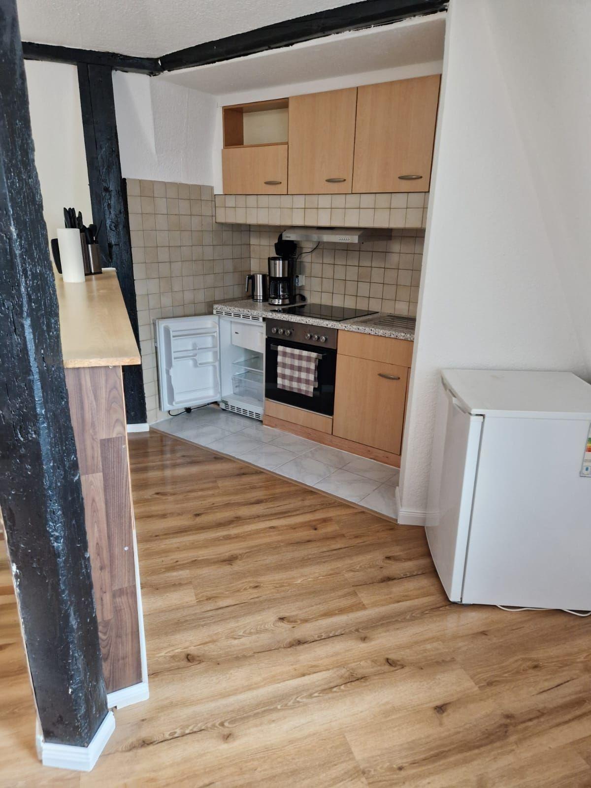 In der Küche befindet sich, ein Ceranherd, Kühlschrank, Kaffeemaschine, Mikrowelle, Wasserkocher und ausreichend Geschirr.
