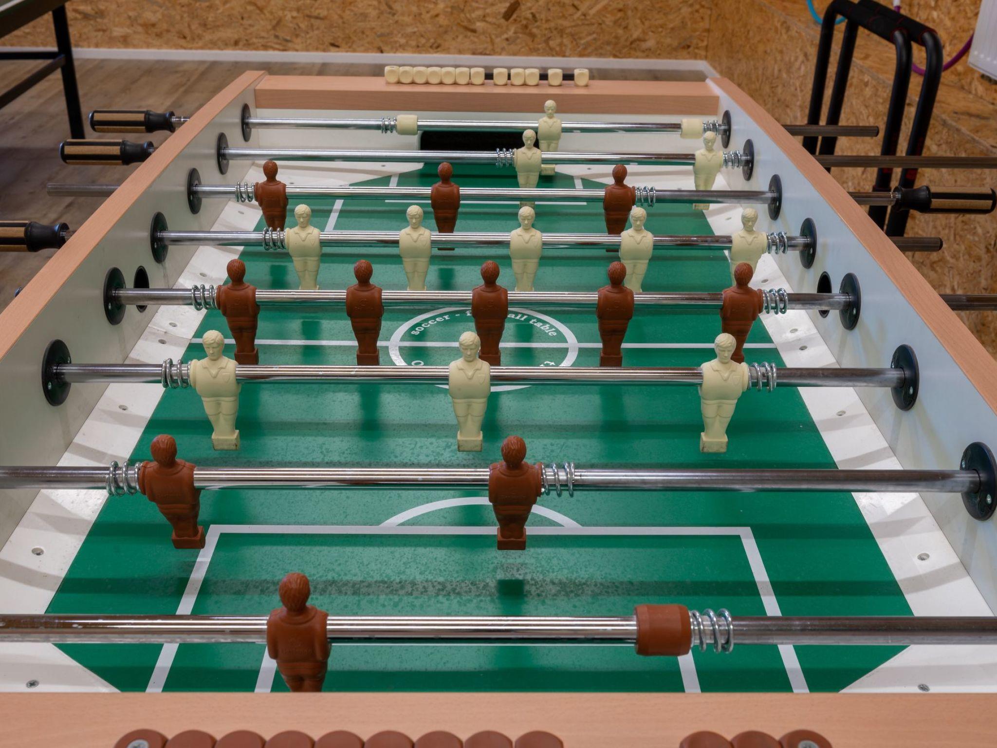 The holiday property also has an outdoor games and leisure room. In the 45 square metre (heated) room, a table tennis table with balls and bats, a table football table, a dartboard and a boxing bag offer sporting variety.