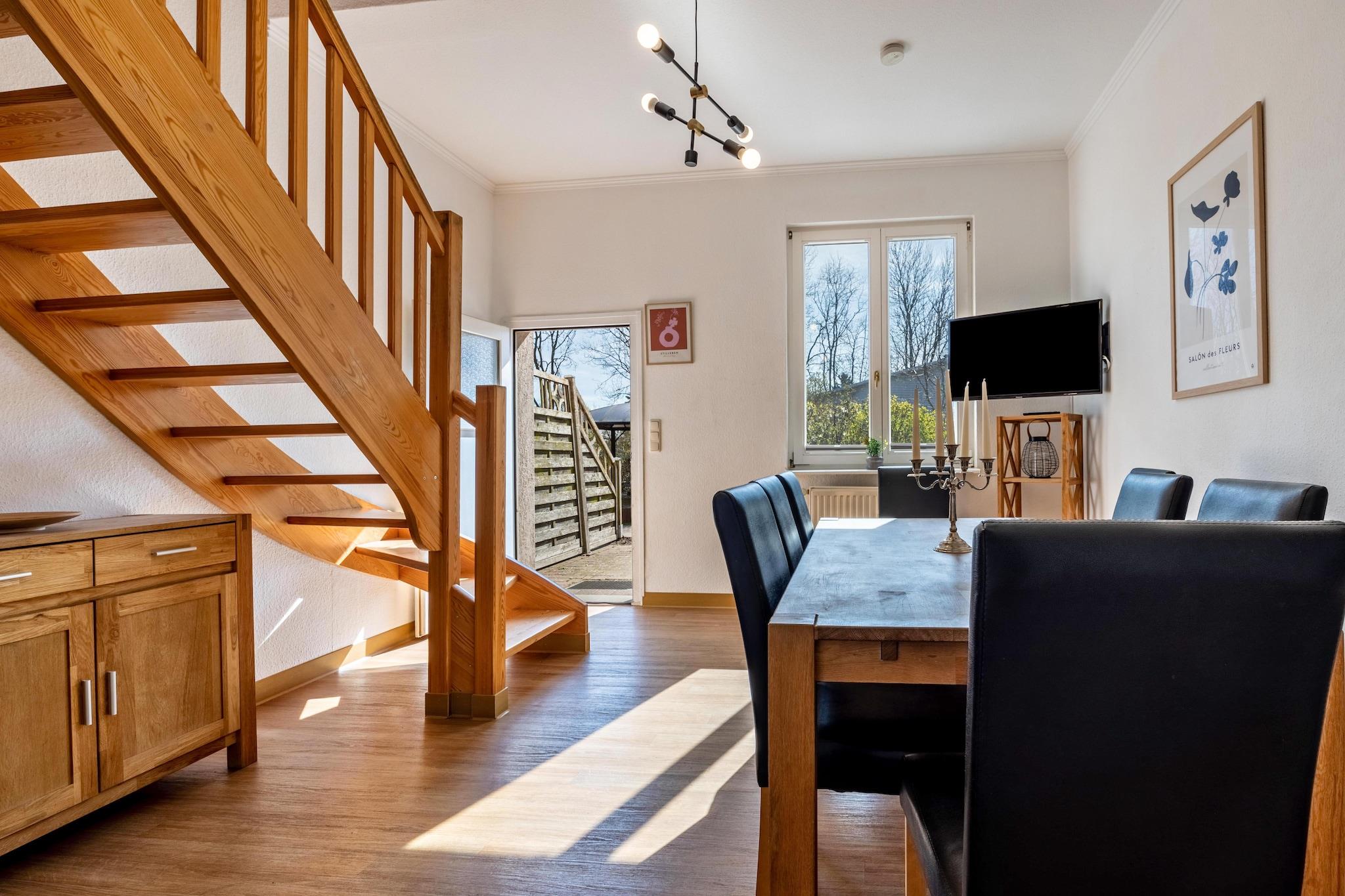 Stueetage: (åbent køkken(kogeplade(Komfur med fire kogeplader, glaskeramisk), elkedel, brødrister, kaffemaskine, ovn, mikrobølgeovn, opvaskemaskine , køle-fryseskab), stue / spisestue(Fjernsyn(fladskærm, parabol), spisebord, sofahjørne), badeværelse(bruser, håndvask, toilet)) På 1. etage: (soveværelse(dobbeltseng(180 x 200 cm)), soveværelse(enkeltseng(90 x 200 cm), enkeltseng(90 x 200 cm)), soveværelse(enkeltseng(90 x 200 cm), enkeltseng(90 x 200 cm)), soveværelse(enkeltseng(90 x 200 cm), enkeltseng(90 x 200 cm))) balkon, varme(gas), terrasse, have(deles med andre gæster), havemøbler, parkering, Håndklæder/sengelinned (ekstra gebyr)