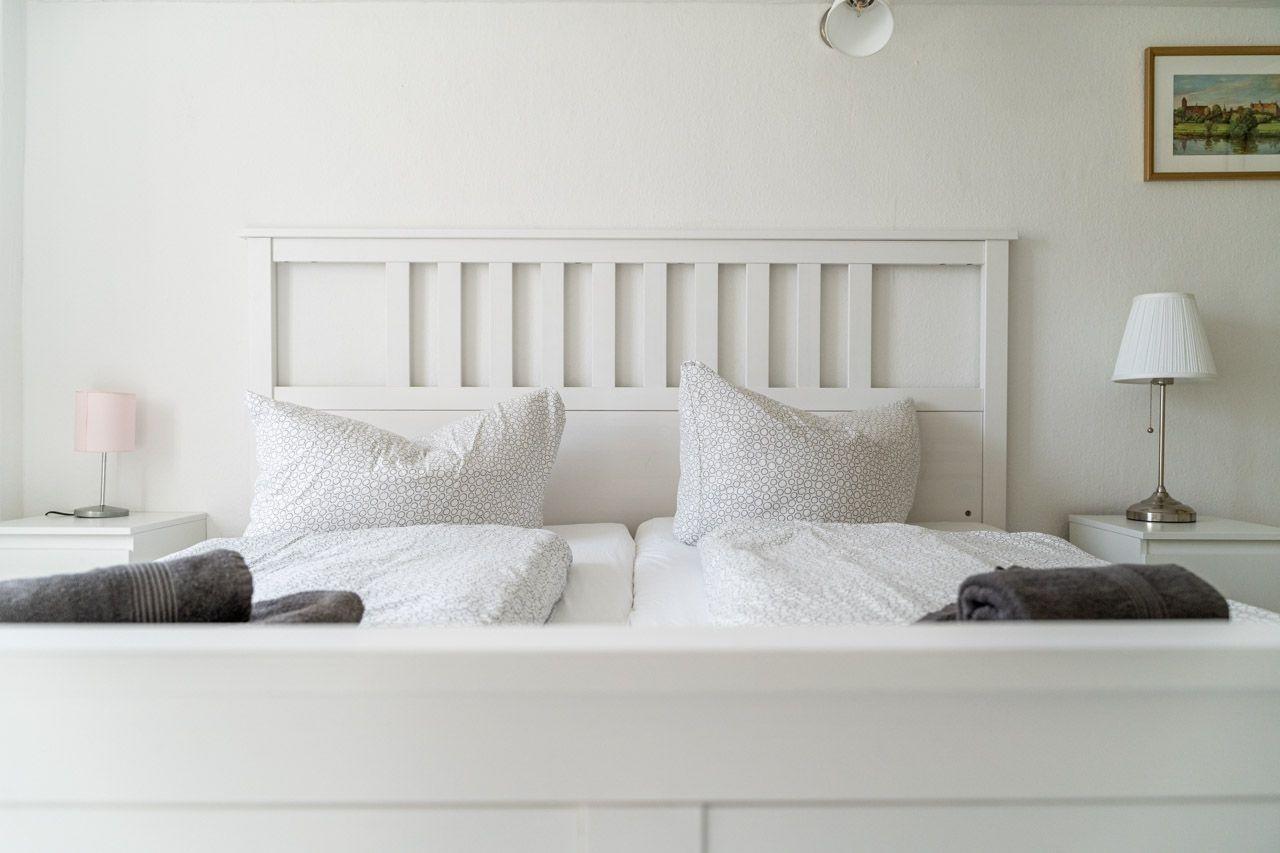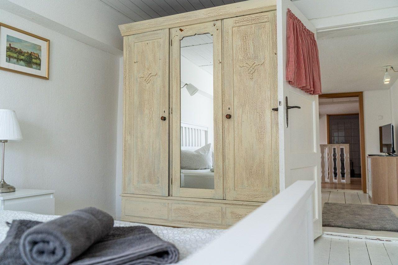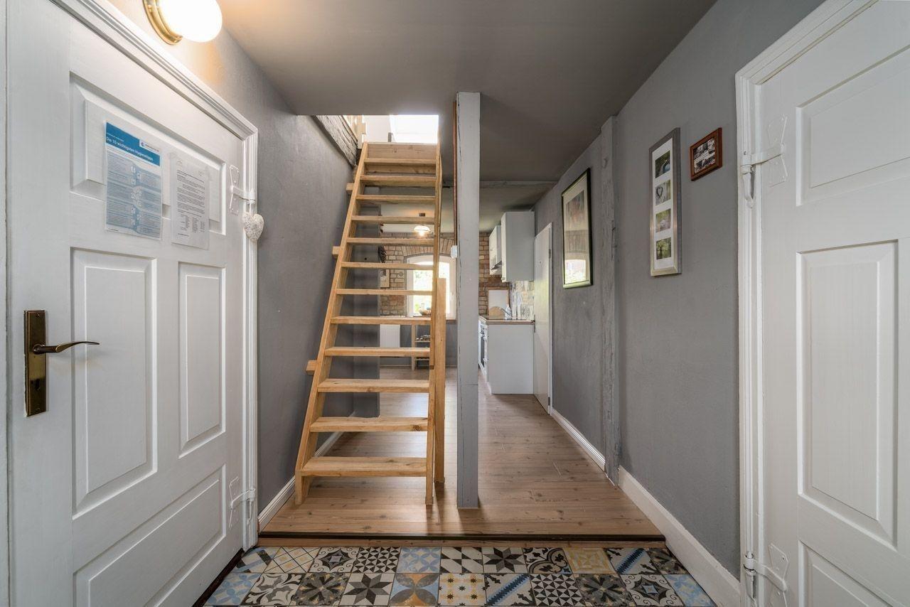 Diese Ferienwohnung bietet eine stilvolle Ausstattung und ausreichend Raum für einen erholsamen Aufenthalt. Im Erdgeschoss befinden sich zwei gemütliche Schlafzimmer mit Doppelbetten sowie ein modernes Badezimmer mit bodengleicher Dusche. Im Obergeschoss lädt ein weiteres Schlafzimmer mit einem Durchgangszimmer zum Entspannen ein. Die offene, voll ausgestattete Küche ist mit einem Geschirrspüler, Elektro-/Gasherd, Backofen, Mikrowelle, Kühlschrank und Gefriermöglichkeit ausgestattet, ergänzt durch eine Kaffeemaschine und einen Toaster. Ein Esstisch bietet Platz für gemeinsame Mahlzeiten. Für Familien steht ein Kinderhochstuhl sowie ein Kindertoilettensitz bereit. Der Wohnbereich mit Sofa und Sessel, ein Kamin und der TV sorgen für einen gemütlichen Abend. Die Wohnung ist allergikergeeignet und verfügt über WLAN, einen Parkplatz sowie notwendige Reinigungsmittel. Rauchmelder und Treppenschutz gewährleisten Sicherheit in der Unterkunft.