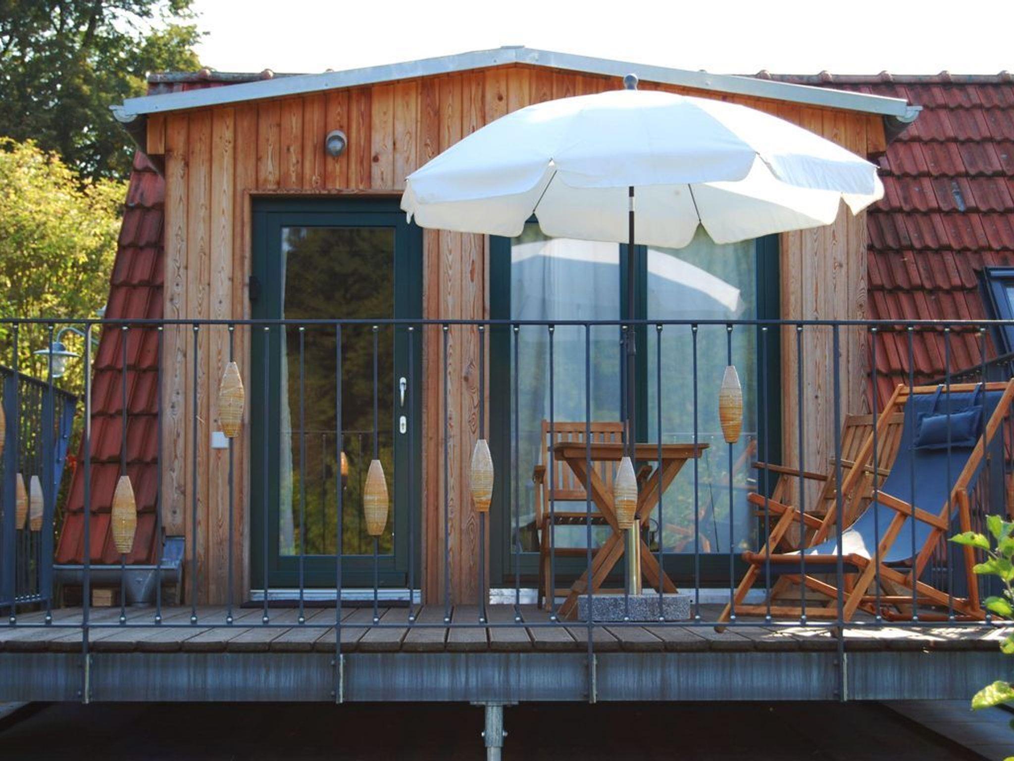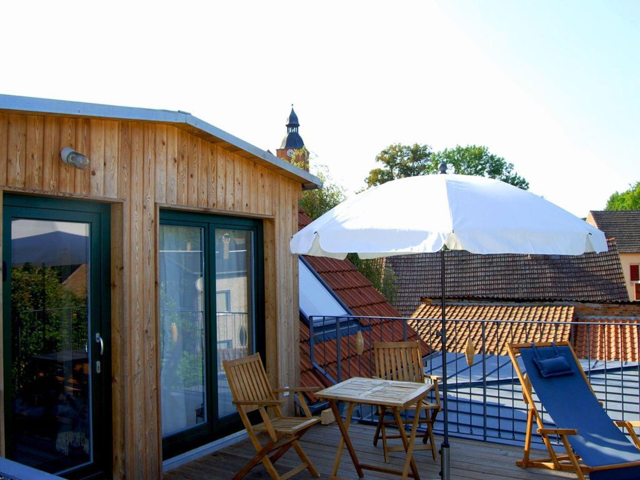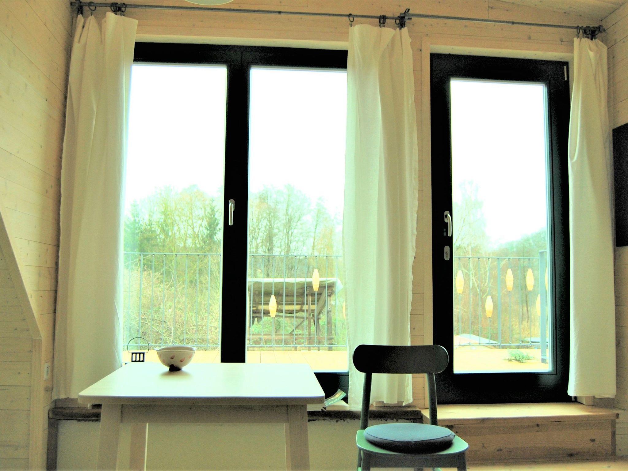 Die lichte Ferienwohnung unterm Dach ist ein kombinierter Schlaf- und Wohnraum mit integriertem Küchenbereich. Sie ist für 2 Personen ausgelegt, kann aber nach Absprache für eine 3. Person mit einem Schlafsessel aufgebettet werden (15 EUR/Nacht). Küchenaustattung und Möbel, auch für die großzügige Terrasse, sind ausreichend vorhanden. Vom kleinen Essplatz, aber auch vom Bett aus, haben Sie einen wunderbaren Blick in den Garten. Ein Internetzugang ist möglich. Fernseher kann auf Anfrage ebenfalls gestellt werden. Bettwäsche und Handtücher sind inklusive. Die Wohnung verfügt über ein kleines Bad mit Dusche und eigenem Fenster. Der PKW-Stellplatz am Haus kann genutzt werden. Wenn es etwas kühler wird und Sie möchten, dass die Heizung eingeschaltet wird kommen 5 Euro /Ü Heizungskosten dazu.
