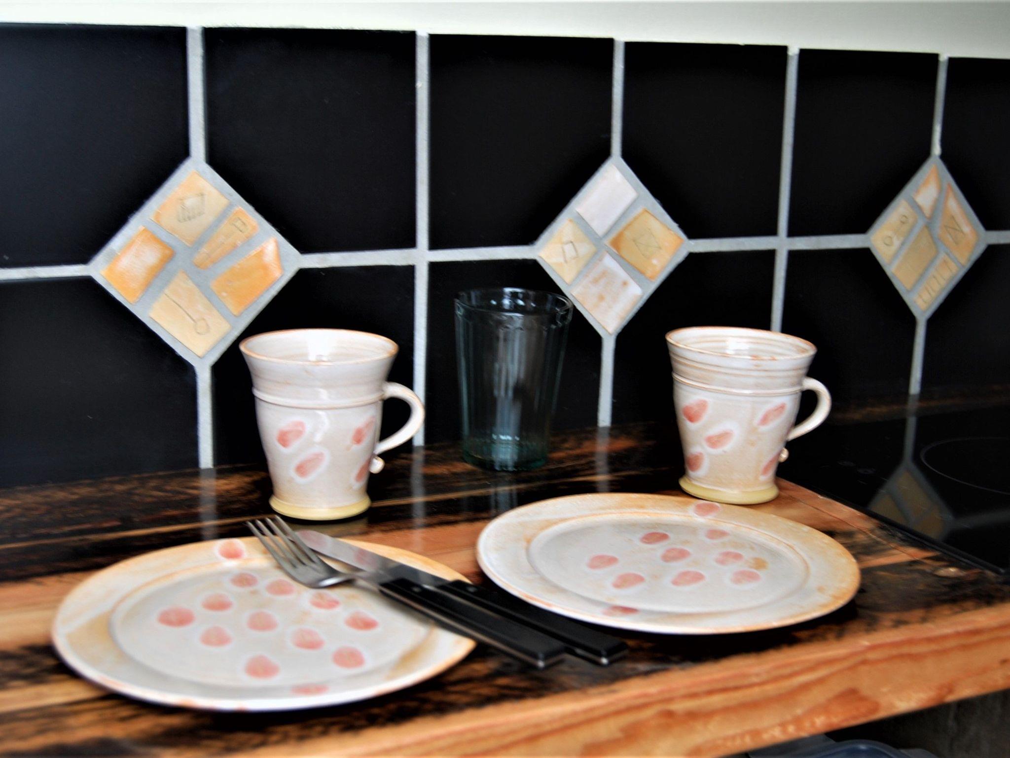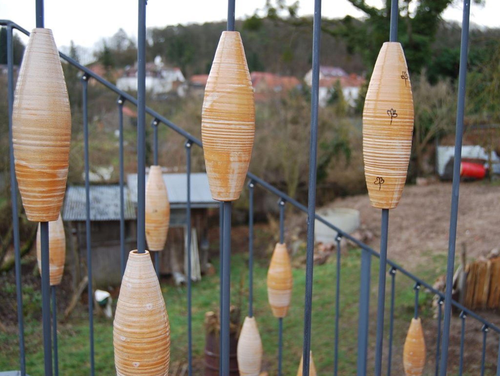 Die schöne, gemütliche Ferienwohnung befindet sich nur wenige Schritte vom Zentrum des Städtchen Buckow entfernt, inmitten der Märkischen Schweiz. In dieser landschaftlich reizvollen Gegend gibt es Wanderwege entlang der Seen und durch Schluchten, die in der Märkischen Schweiz Kehlen genannt werden. Für den Umbau der Dachetage zur Ferienwohnung in dem Backsteinhaus, wurden spezielle Vintage-Elemente in die Gestaltung eingebunden. Das Gebäude samt Dachetage ist nachhaltig und ökologisch mit Lehmputz, Lehmfarben und Recyclingbaustoffen ausgebaut worden. Die Energieversorgung für Heizung und Warmwasser erfolgt ökologisch durch eine zentrale Stückholzvergaserheizung. Die Ferienwohnung liegt sehr ruhig im hinteren Gartenbereich des Grundstückes mit freiem Blick auf die Berge der Märkischen Schweiz sowie in den Garten. Über eine separate, künstlerisch gestaltete Außentreppe gelangt man auf die großzügige Terrasse der Dachgeschosswohnung. Gartenmöbel sind ausreichend vorhanden. Von der Terrasse aus gelangt man direkt in die Ferienwohnung. Diese ist durch eine Gaube mit großen Fenstern hell und geräumig. Im Küchenbereich findet sich alles, was zum Kochen benötigt wird. Das Geschirr kommt aus dem hauseigenen Keramikatelier Christine Pfundt. Das Atelier der Gastgeberin befindet sich im Gebäudeensemble und kann besichtigt werden. Es werden auch Kurse angeboten. Nach vorheriger Anmeldung kann ein Drehkurs auf der Töpferscheibe besucht werden. Die Buchung eines Kurses sollte rechtzeitig vor Anreise erfolgen. Von der Ferienwohnung aus sind in wenigen Minuten Einkaufsmöglichkeiten, Cafés und Restaurants, ein Kino und der Stadtpark zu erreichen. In der warmen Jahreszeit gibt es mehrere Bademöglichkeiten im Ort. Wander- und Radwege sind ganz in der Nähe. Der Europaradweg R1 führt sogar in unmittelbarer Nähe am Haus vorbei.