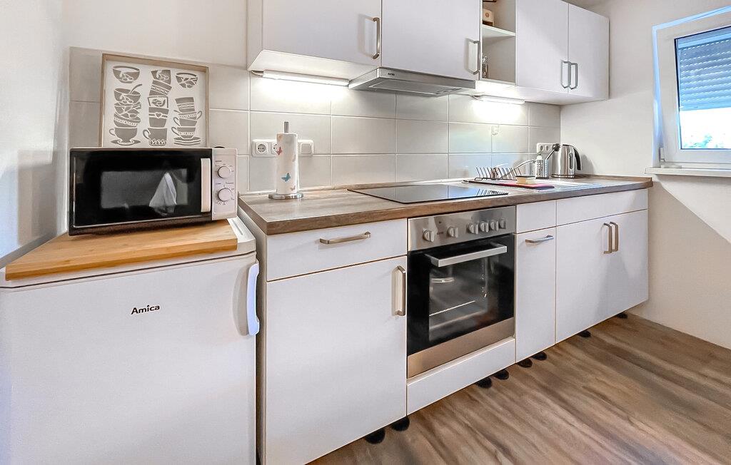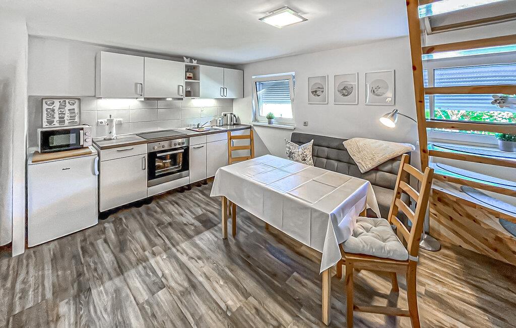 Det ikke-ryger feriehus i to etager er fritliggende på ejerens 1.400 kvm store boligejendom i en rolig beliggenhed i udkanten af by og skov. Efter at det tidligere udhus i 2016 blev ombygget til sommerhus, er den udvendige facade endnu ikke helt færdig, men indretningen og indretningen er meget tiltalende.Der er stue/alrum i stueetagen med åbent tekøkken ( polstret bænk, spisebord, fladskærms-tv, el-komfur med ovn, køleskab med fryser, mikroovn, diverse køkkenmaskiner), badeværelse med bruseniche, toilet og hårtørrer samt opbevaringsrum. På loftet (adgang via en pladsbesparende trappe) er der soveværelse med dobbeltseng og fladskærms-tv og endnu et soveværelse med enkeltseng. Til kølige dage er den eneste opvarmningsmulighed i stueetagen en kakkelovn (brænde er gratis for første gang, derefter 5 EUR pr. kasse). På udearealet er der møbleret udendørs siddeplads, endnu en lille og overdækket siddeplads foran indgangspartiet, grill, sikker opbevaring/læ for medbragte cykler og parkeringsplads. Slutrengøring, sengelinned, håndklæder samt vand- og elforbrug er allerede inkluderet i den samlede pris. Mobiltelefonmodtagelsen i byen er dårlig, men boligen har begrænset Wi-Fi-modtagelse fra værtens nabohus. Små hunde op til en maksimal skulderhøjde på 40 cm er tilladt i denne ejendom. Buddenhagen er en smuk landsby og også en forstad til Wolgast (ca. 11 km), porten til øen Usedom. Stedet ligger i et omfattende skovområde, som er ideelt til vandreture og svampeplukning. I Sansernes Skov er der flere naturoplevelser og læringsstier for store og små om emnet skove og deres beboere. De bedste betingelser for naturferier på udkig efter fred og ro. Østersøen (badebyen Trassenheide) ligger cirka 20 km væk Takket være den nærliggende togstation Usedomer Bäderbahn (ca. 700 m) kan du komme til øen og dermed alle Usedoms Østersø-resorts på en afslappet måde og uafhængigt af ferie. Trafik.