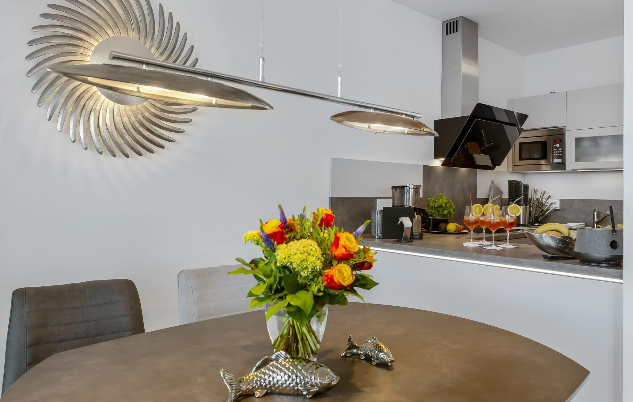 BUHNE 17 har en uhindret beliggenhed lige ud til Østersøen og Weidefelder-stranden. Der er kun omkring 20 meter i luftlinje til vandet og giver en skøn feriefølelse. Men havnepromenaden med charmerende butikker og den nordiske minigolfbane kan også nås på få minutter til fods.