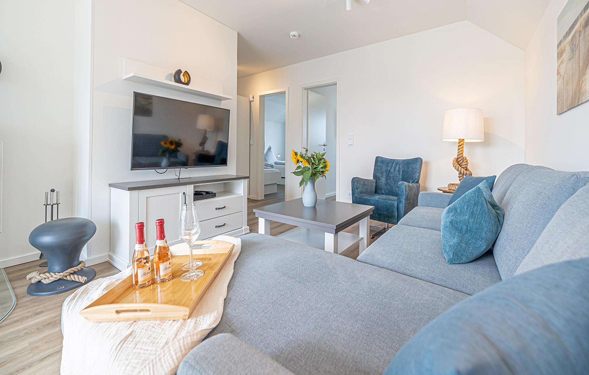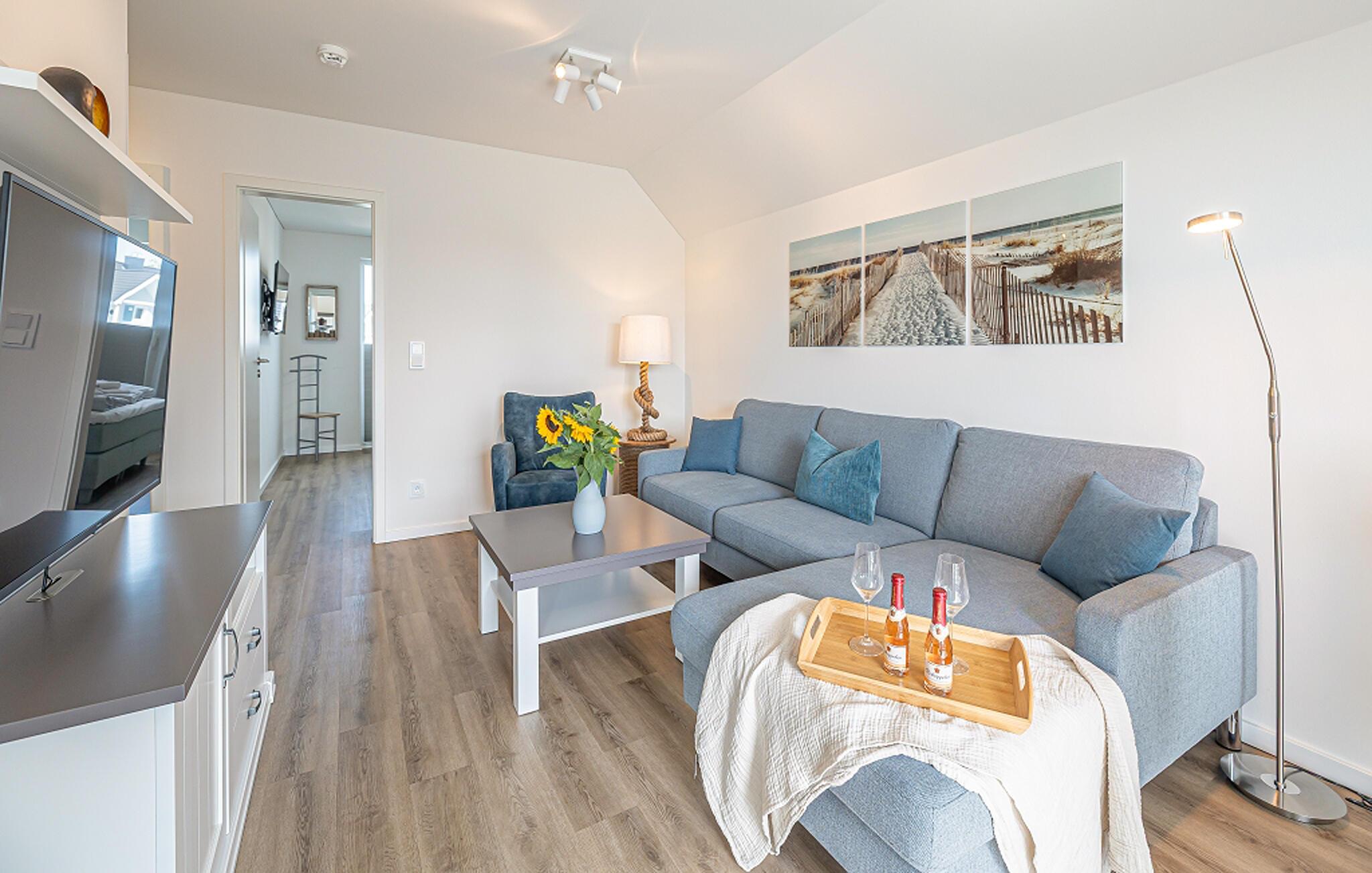 I denne ferielejlighed kan I slappe af og tage den perfekte pause fra hverdagen. Boligen har plads til op til fire personer i to stilfuldt indrettede soveværelser. Det ene har en komfortabel boxmadras som dobbeltseng, det andet har to enkeltsenge. Oplev en dyb og afslappende søvn her, og vågn op frisk til at nyde endnu en dag ved havet.