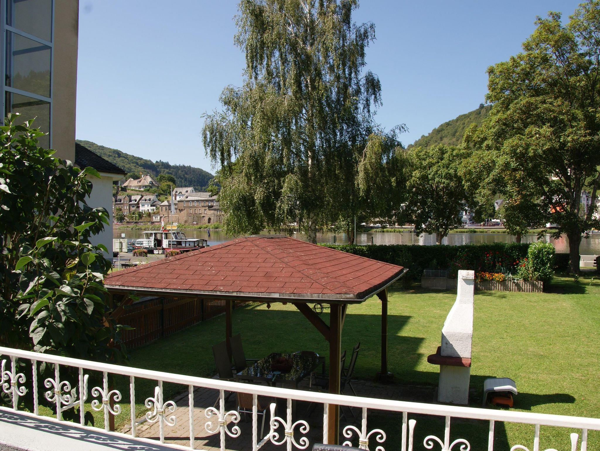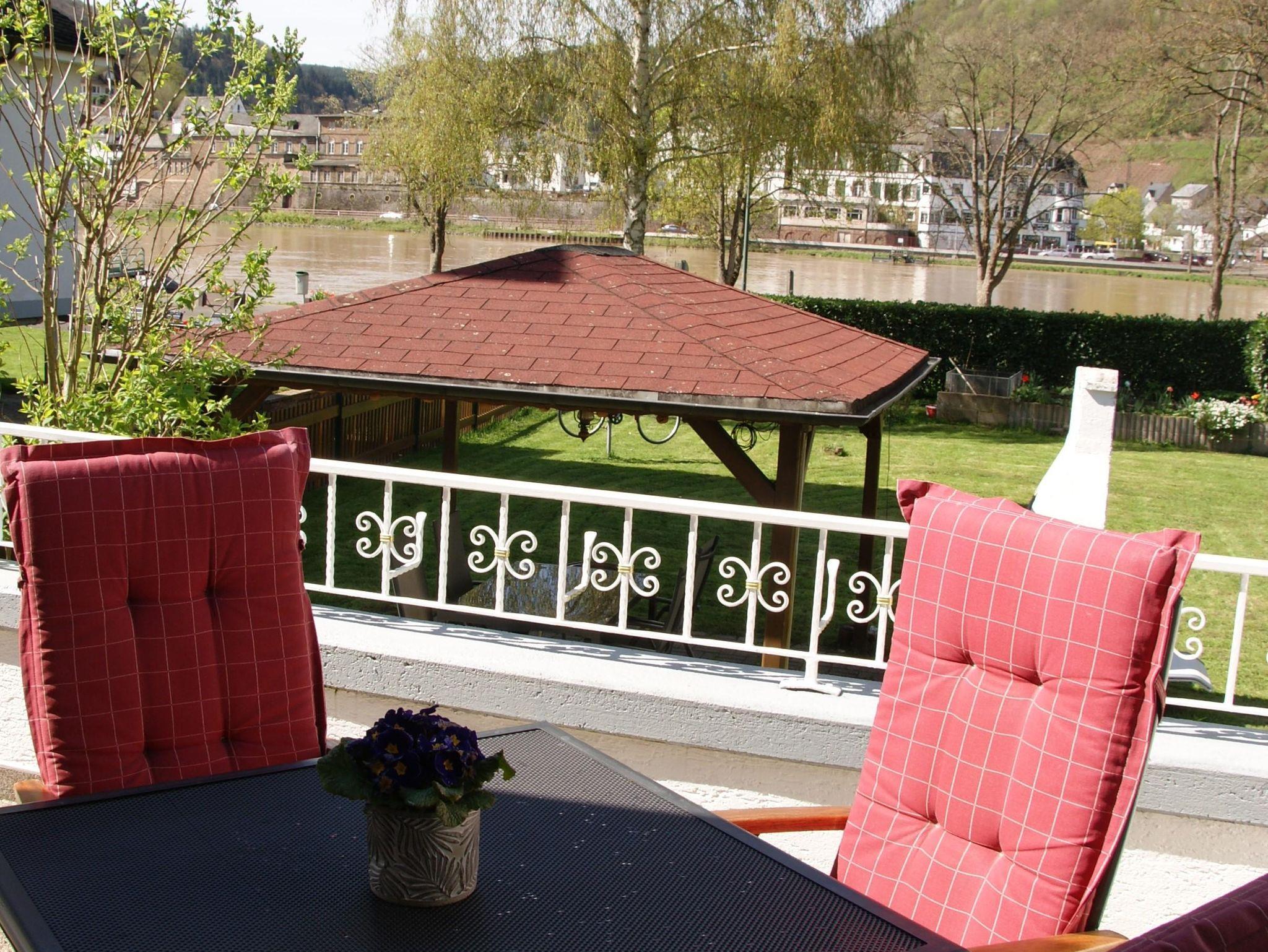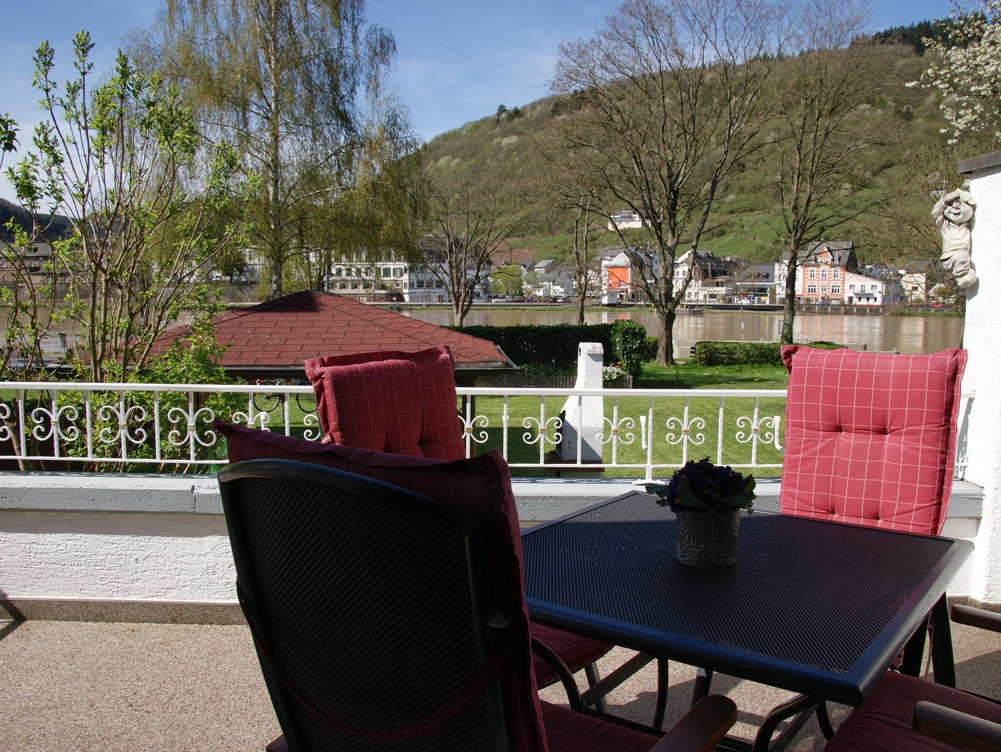 Unsere renovierte und modernisierte Ferienwohnung im Landhausstil mit einer großen Sonnenterrasse ist an der ruhigen und zum flanieren einladenden Uferpromenade gelegen. Sie haben uneingeschränkten Blick auf die Mosel. Sie dient Ihnen als Ausgangspunkt für Ausflüge mit dem Auto, Motorrad, Fahrrad oder zu Fuß auf unseren zahlreichen Wanderwegen. Es steht für Sie direkt am Haus ein privater, kostenloser Parkplatz, sowie eine Gargage zur Unterbringung der mitgebrachten Fahrräder zur Verfügung.