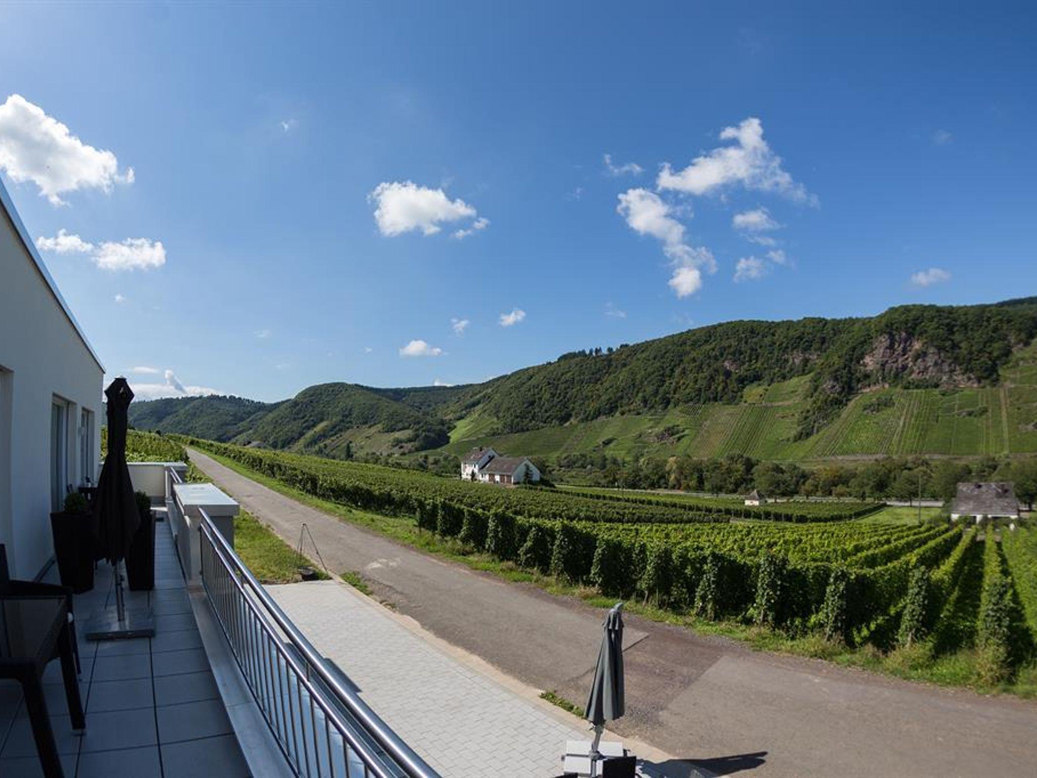 Liebevoll u. komfortabel eingerichtete **** Fewo (40 m²) für 2 bis 3 Personen mit neuer Einbauküche mit Geschirrspülmaschine, Backofen, Kaffeemaschine, Flachbild TV u. Stereoanlage. Offene Holztreppe nach oben ins Schlafzimmer, DU/WC mit Fön. Balkon mit unverbautem Mosel- und Weinbergsblick.