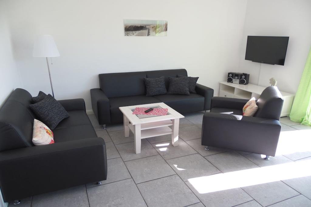 Das Ferienhaus erstreckt sich über zwei Etagen. Im Erdgeschoss befindet sich ein behinderten geeignetes Badezimmer mit rollstuhlbefahrbarer Dusche und WC. Ebenfalls ist das Einzelschlafzimmer im EG. Ein großzügiger Wohn-u. Essbereich mit direktem Ausgang auf die sonnige Terrasse und Garten hat den größten Anteil in der unteren Etage. Sehr schön ist die separate Küche mit Nebeneingangstür zum Carport. Gepäck und Einkäufe können so trockenen Fußes ins Haus gebracht werden. Im Dachgeschoß befinden sich 3 weitere Schlafzimmer und ein Badezimmer mit Dusche und Badewanne, sowie ein Abstellraum für Ihre Koffer. Die Schlafzimmer sind allesamt mit gemütlichen Doppelbetten ausgestattet. Ein Schlafzimmer hat zusätzlich einen Fernseher mit Flachbildschirm.