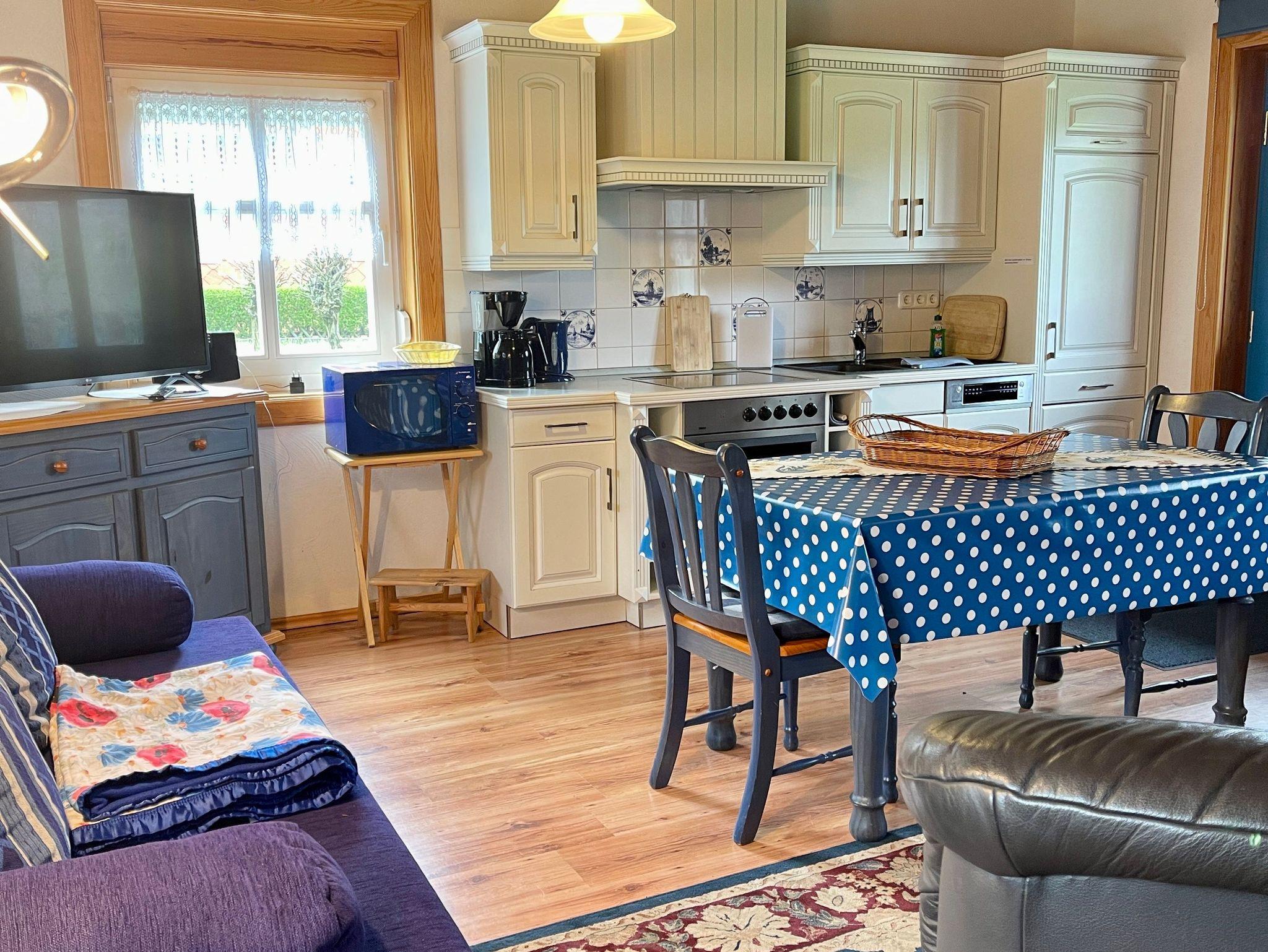 Reetgedecktes Bohlenhaus, Ferienwohnung Eisvogel