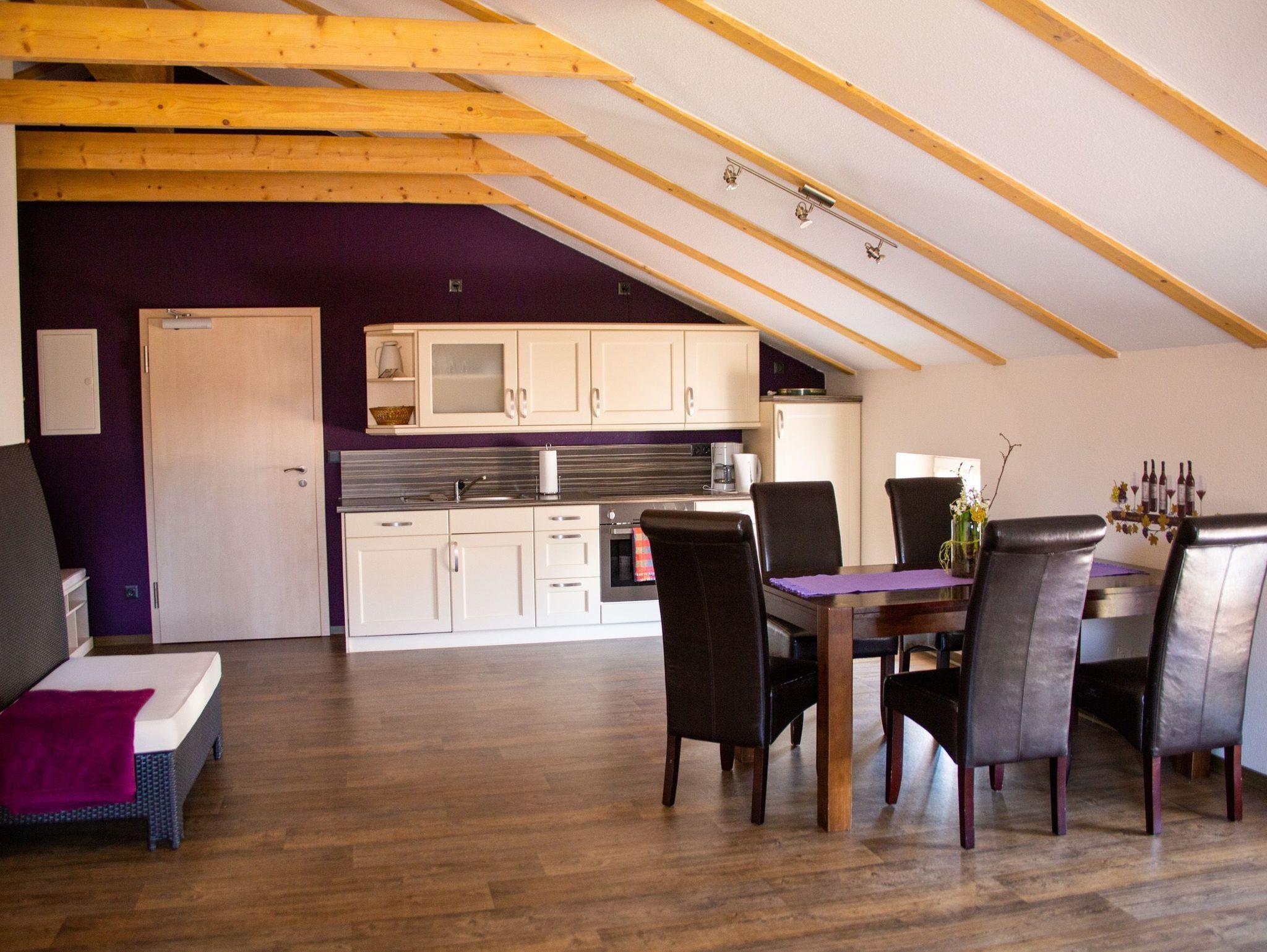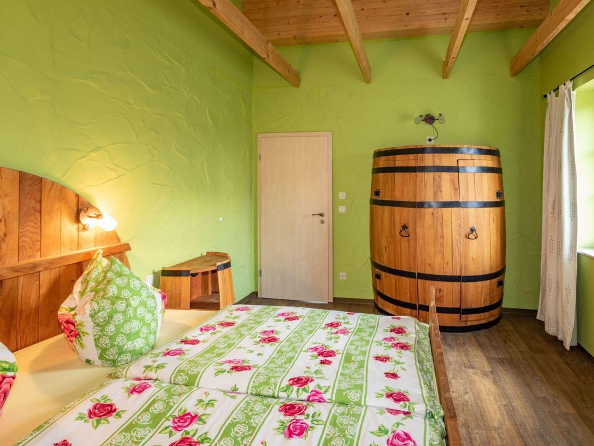 Unter dem Motto Schlafen im Weinfass können die Gäste in zwei kreativ gestalteten Ferienwohnungen in Fass-Betten schlafen und die Garderobe in Fass-Schränken unterbringen. Die Ferienwohnungen verfügen über ein bzw. zwei Schlafräume, einen Wohnraum mit Küchenzeile und Essplatz und ein Bad mit DU/WC. Terrassen mit Gartenmöbeln und Grill stehen den Gästen zur Verfügung. Das Angebot wird durch eine Fasssauna und ein Fassgartenhaus abgerundet. Parkplätze befinden sich direkt am Haus. Kahnfährhäfen und Gastronomie ist fußläufig erreichbar.