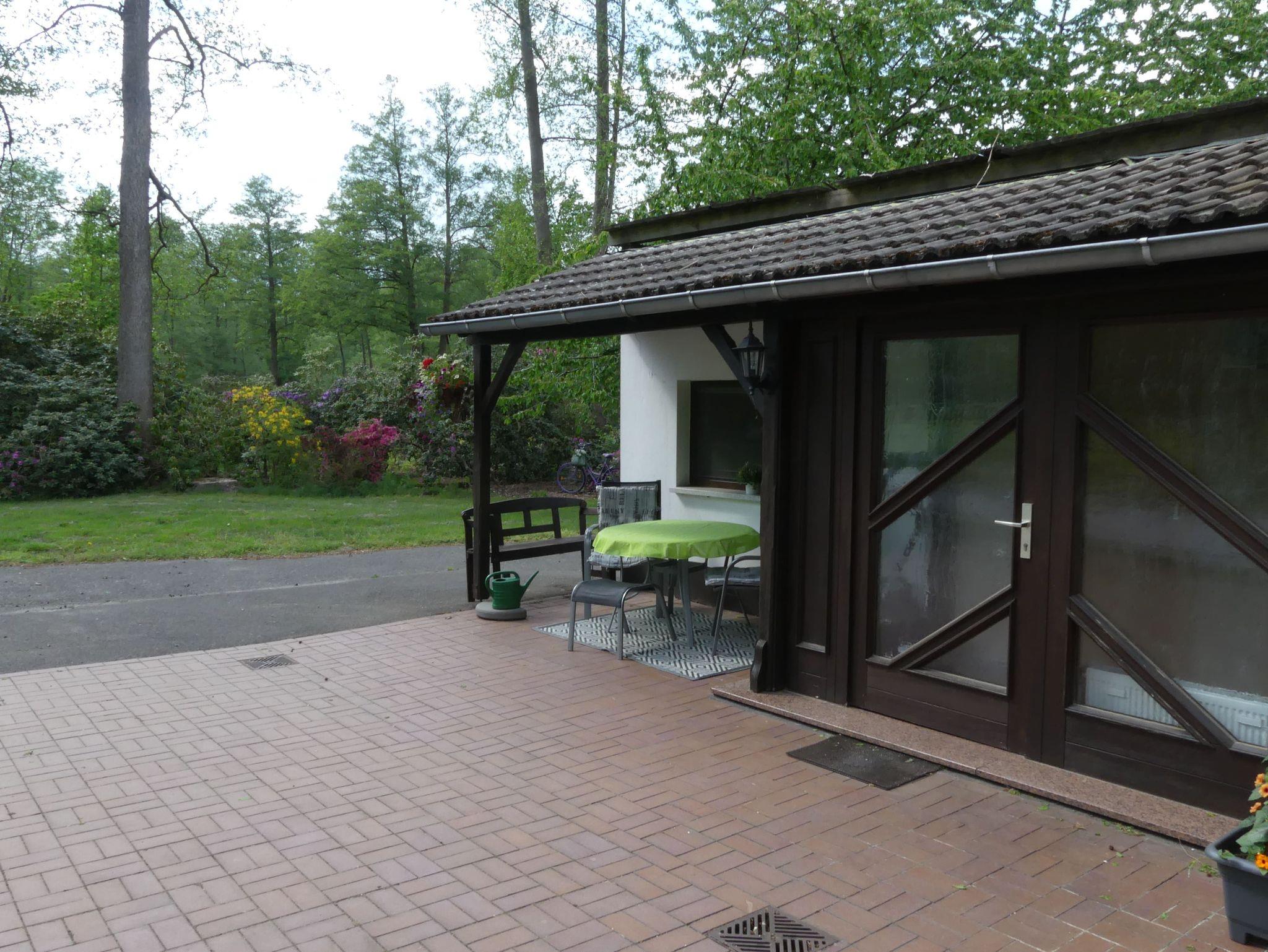 Das Anwesen verfügt über große Grünflächen mit Wasserläufen, Altbaumbeständen, Teichen, Rhododendronpark und eigener Bootsanlegestelle. Die Ferienwohnung hat eine separate Zufahrt mit Parkmöglichkeit direkt am Haus.