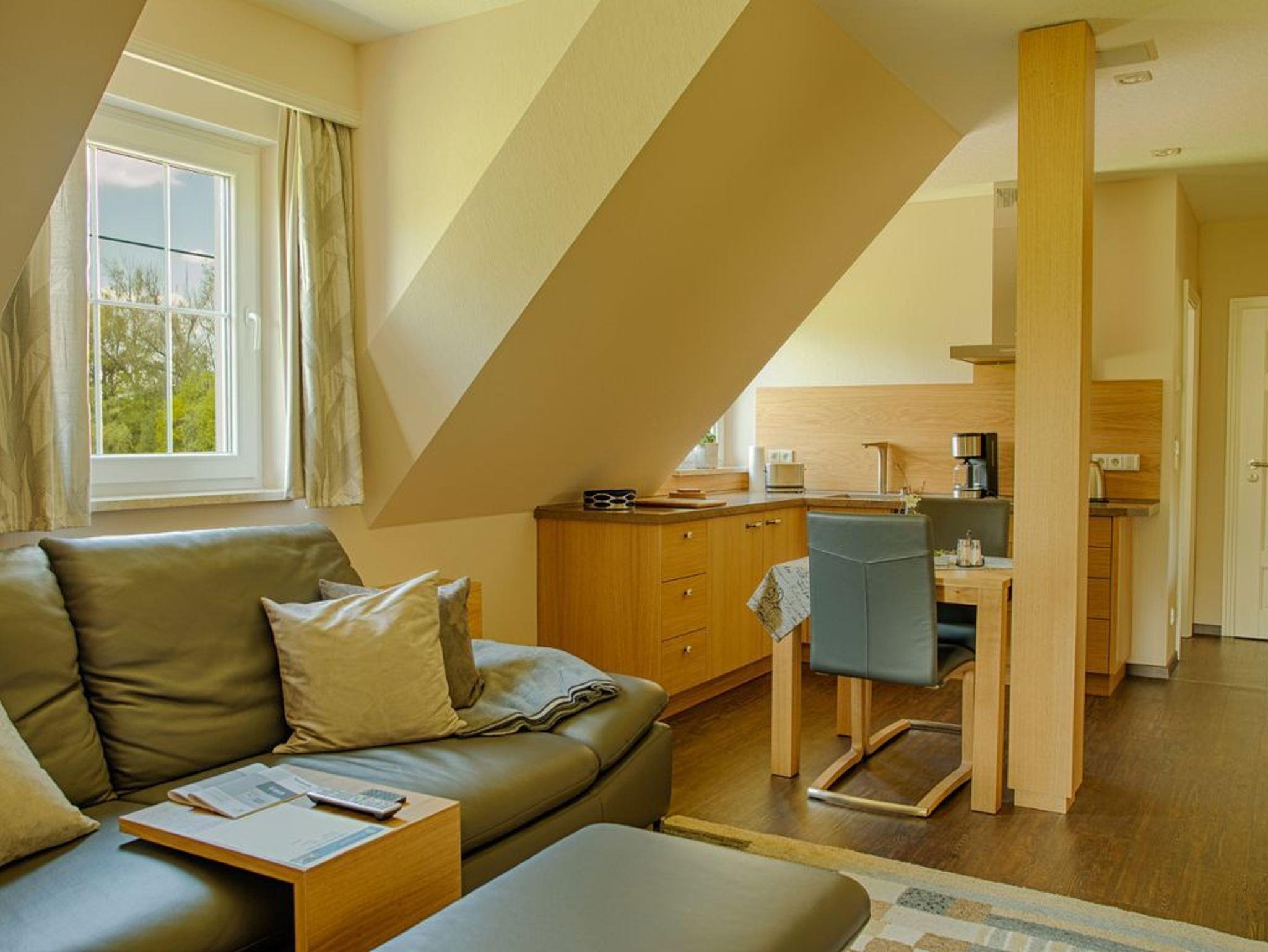 Die Apartments sind hochwertig und modern ausgestattet, mit je einem Wohnraum mit Küchenzeile (Herd, Kühlschrank, Geschirrspüler, Mikrowelle), einem separaten Schlafraum mit zusätzlichem TV und einem Bad mit Regendusche. Die Ferienwohnungen sind mit WLAN, Telefon, Safe, elektrischen Jalousien und Fußbodenheizung ausgestattet und liegen im 1. Obergeschoss. Im Erdgeschoss befindet sich der großzügige Wellnessbereich mit Schwimmbad (Gegenstromanlage und Whirpool) und Sauna sowie der Frühstücksraum mit Kamin und angrenzender Terrasse. Das leckere Frühstücksbuffett mit frischen, regionalen Produkten lässt Sie gestärkt in den Tag starten.