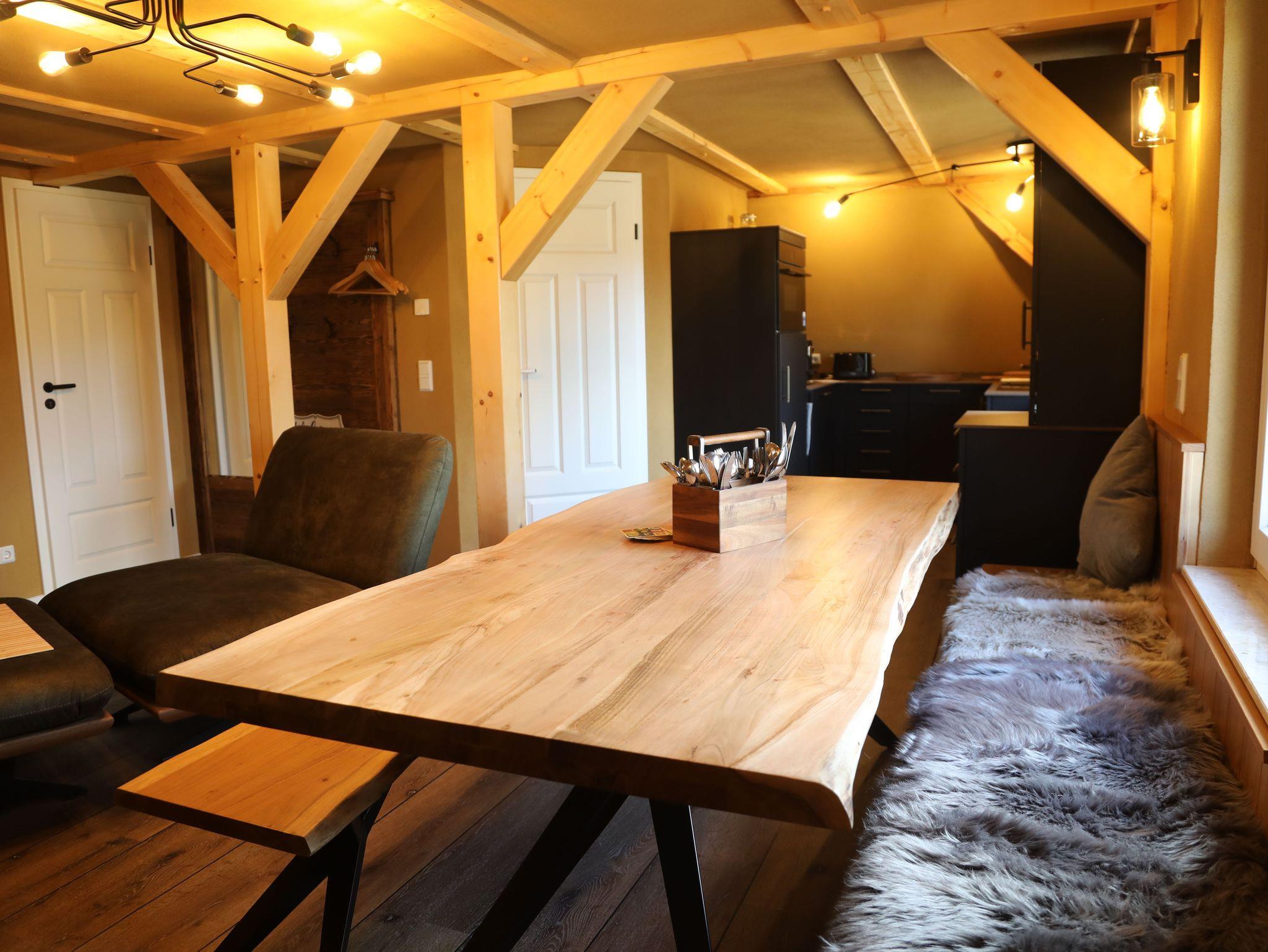 Die rustikale Wohnung `Zur Scheune´ ist mit 85 Quadratmetern eine Oase der Ruhe unter kuscheligen Dachschrägen.