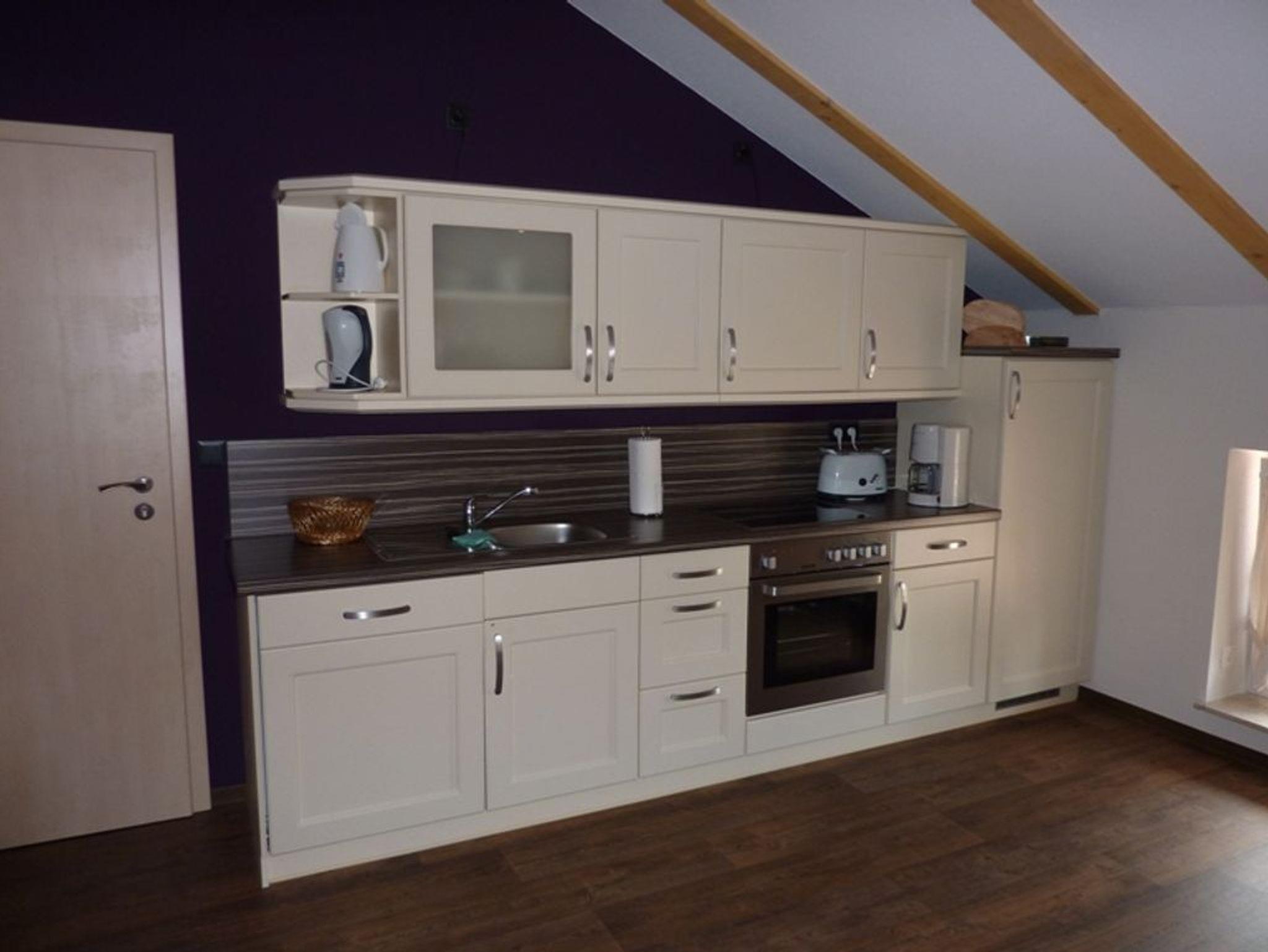 Die FeWo Fass 2 ist 77 m² groß und hat einen großzügigen Wohnbereich mit integrierter Küche, zwei Schlafräume und ein modern gestaltetes Bad. Der große Schlafraum hat ein ?Doppel-Fassbett? (2,00m x 1,80m). Die Wohnung ist für 2 Erwachsene plus 1 Erwachsenen oder 2 Kinder geeignet. Es sind 2 Aufbettungen möglich. Frühstück in Absprache mit dem Vermieter zubuchbar.